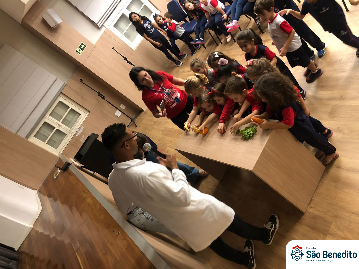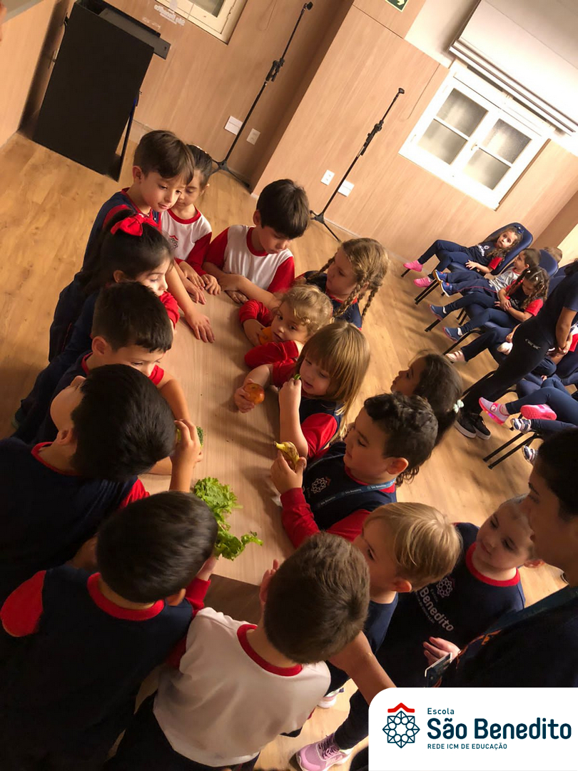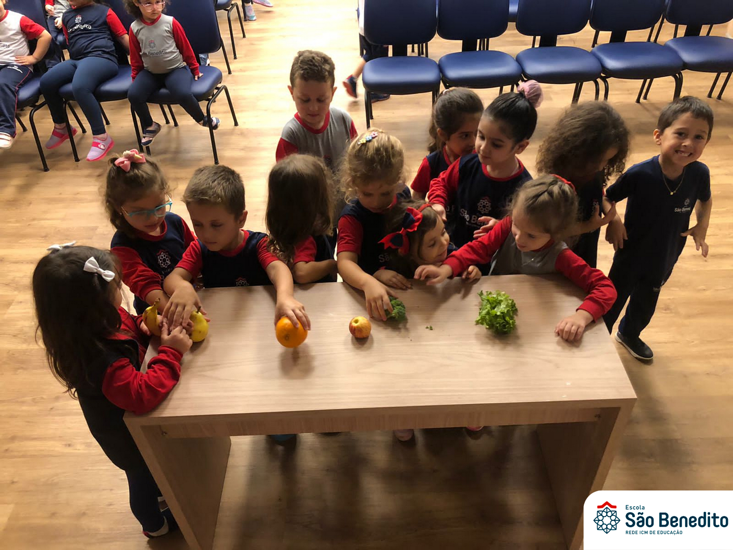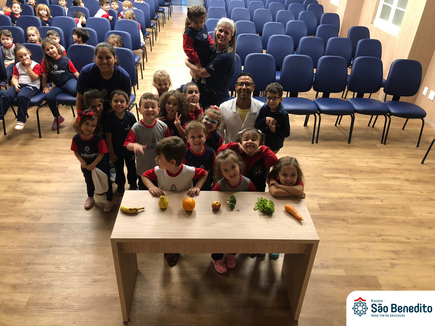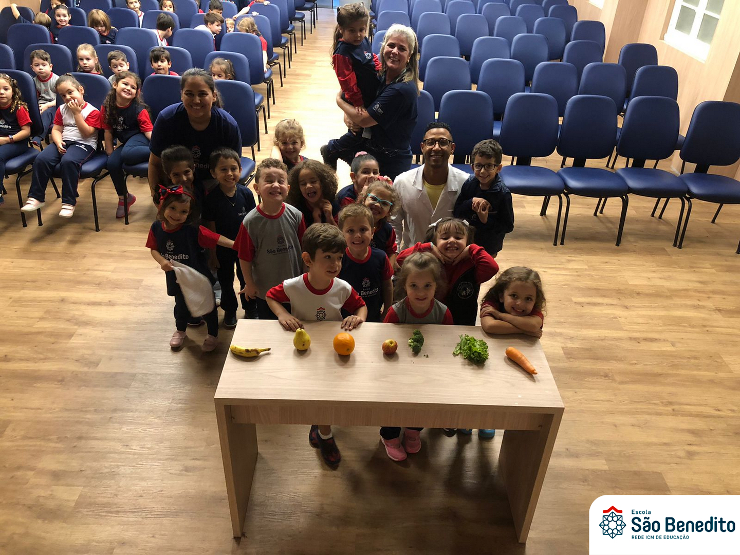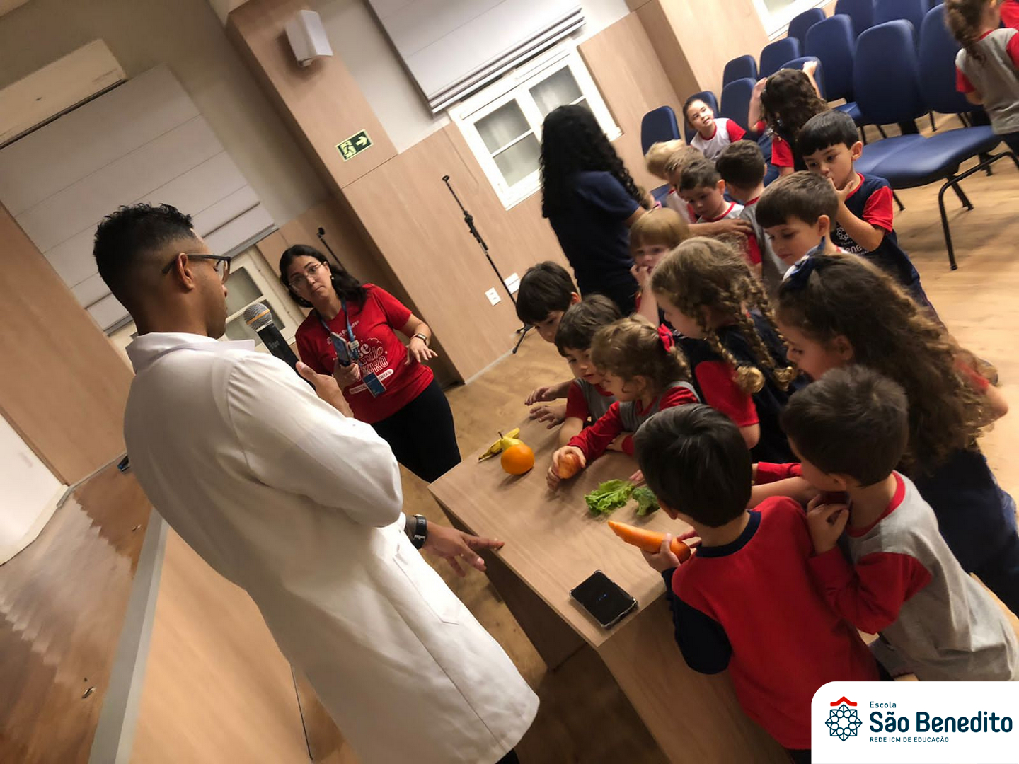 Foi pensando em promover um aprendizado significativo sobre o assunto, que as educadoras do Pré I, Alessandra, Simone e Tieise, junto de seus alunos, participaram de uma conversa com o nutricionista Ranieri Valente, que plantou na vida de cada um, a sementinha da importância de se alimentar de forma equilibrada.