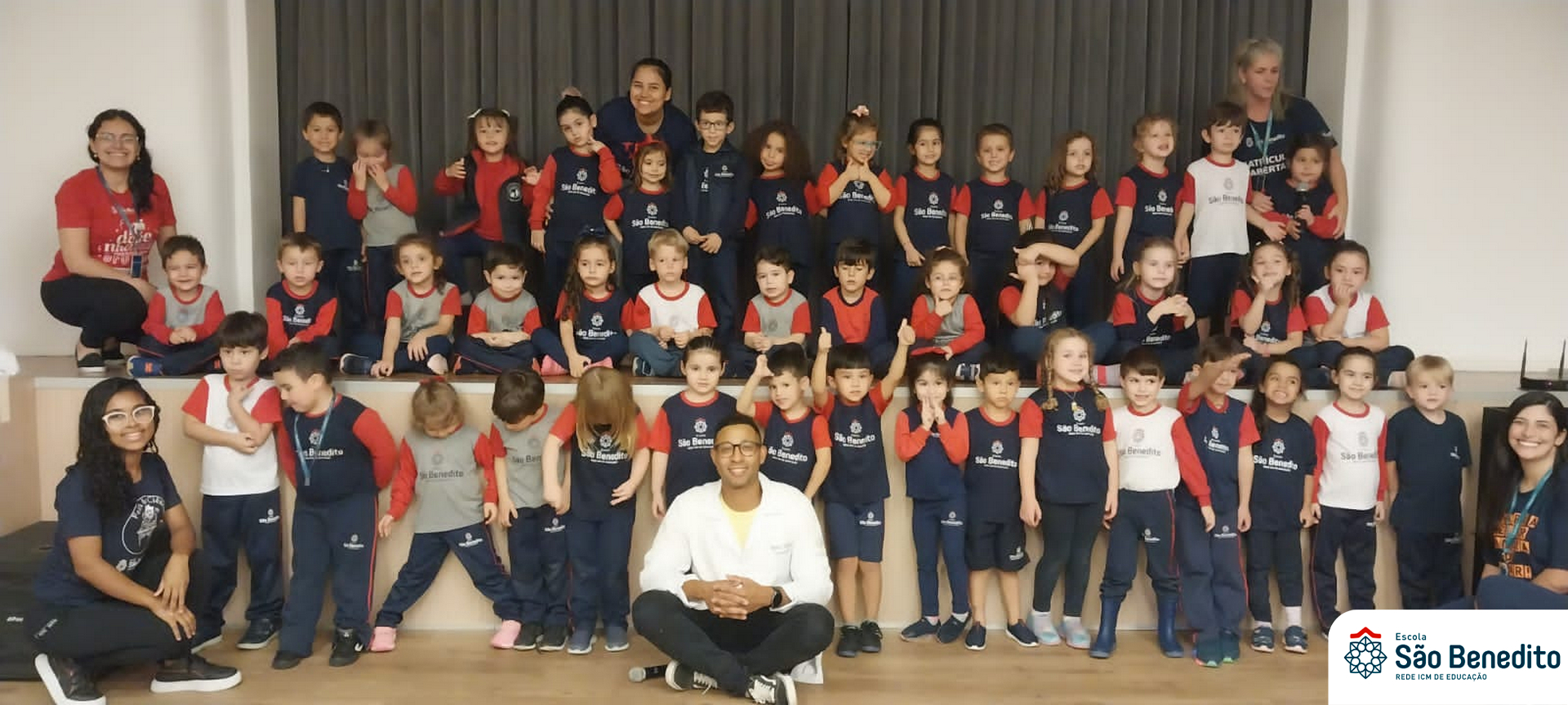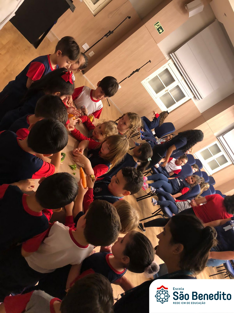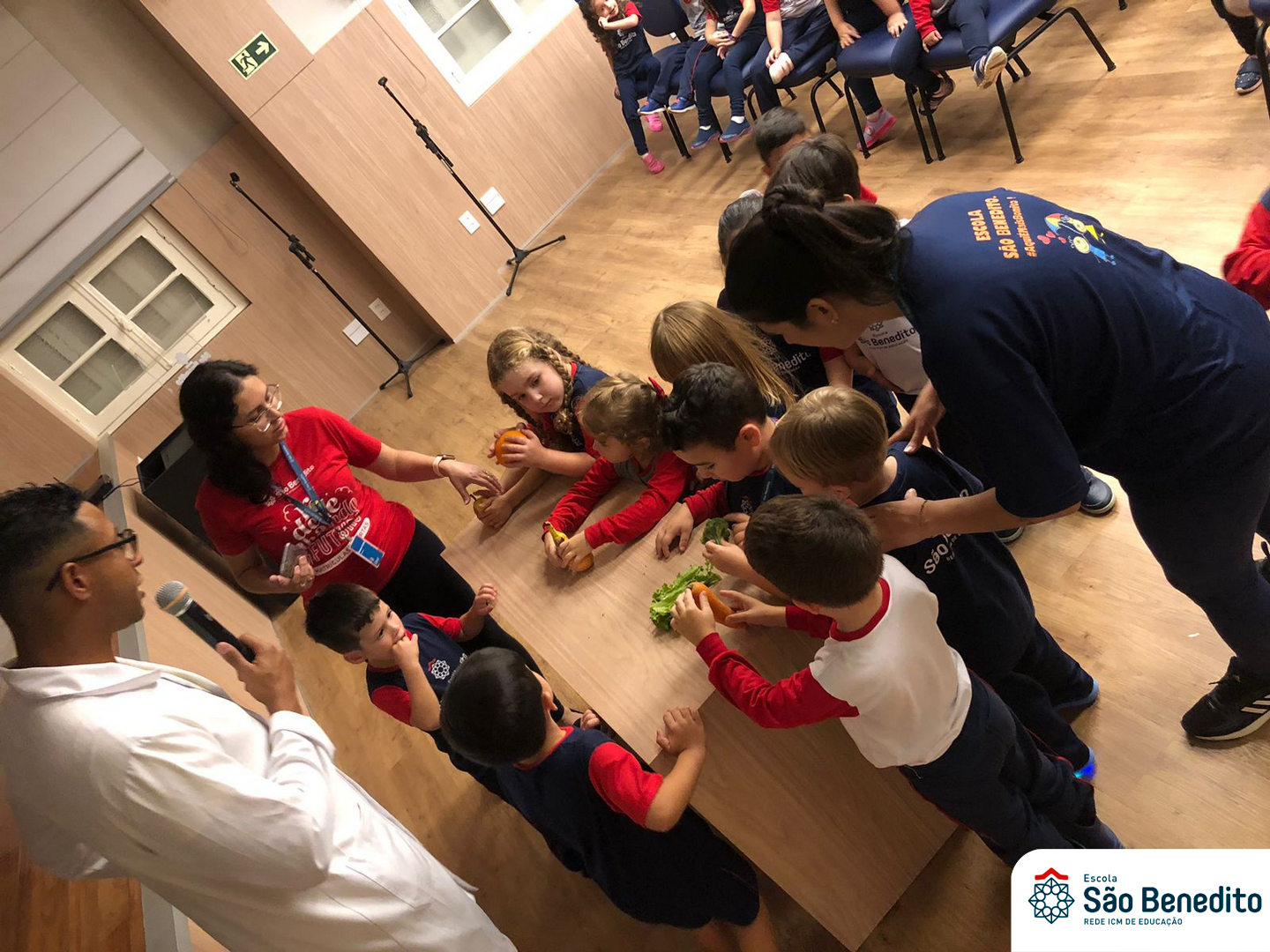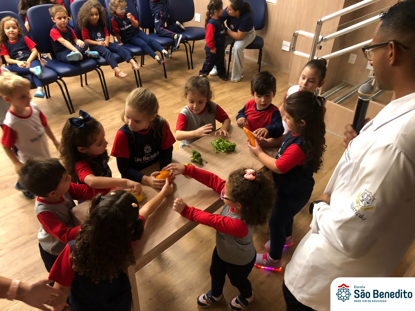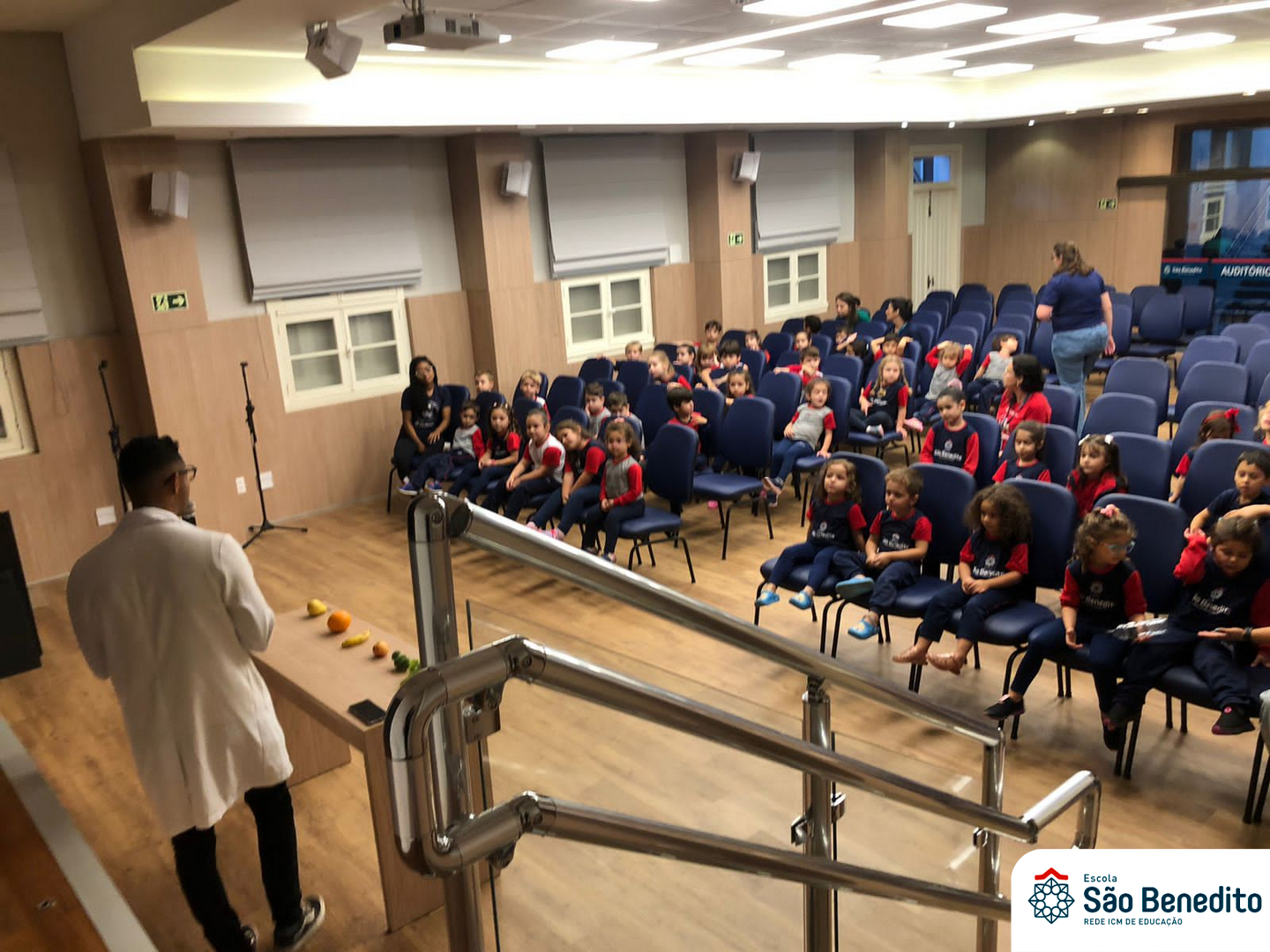 Foi pensando em promover um aprendizado significativo sobre o assunto, que as educadoras do Pré I, Alessandra, Simone e Tieise, junto de seus alunos, participaram de uma conversa com o nutricionista Ranieri Valente, que plantou na vida de cada um, a sementinha da importância de se alimentar de forma equilibrada.