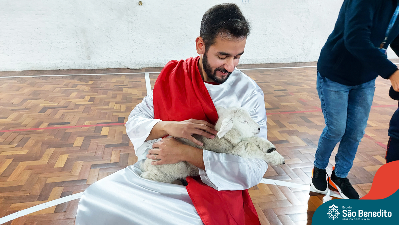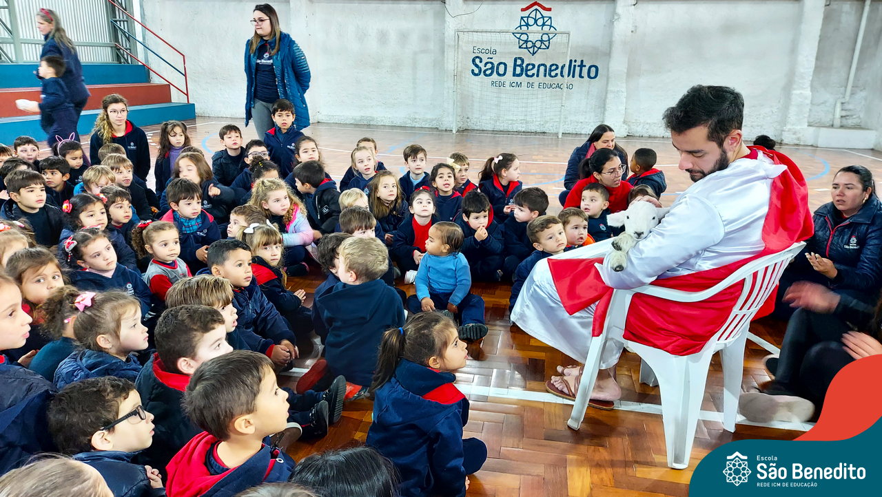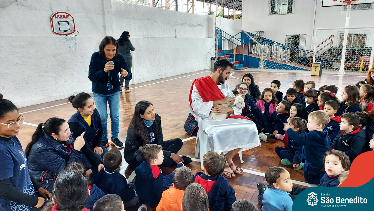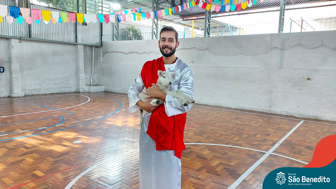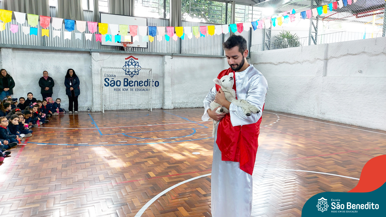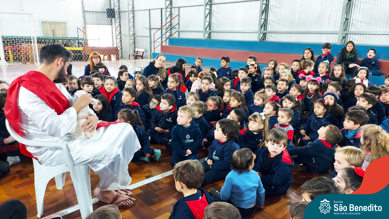 Na Escola São Benedito, os pequenos estudantes aprendem desde cedo a ouvir a Voz e o Chamado do Bom Pastor: na sexta-feira, 30 de junho, dando continuidade ao Ano Vocacional, as turmas da Educação Infantil e ensino Fundamental I receberam a ovelhinha do Bom Pastor, Jesus.