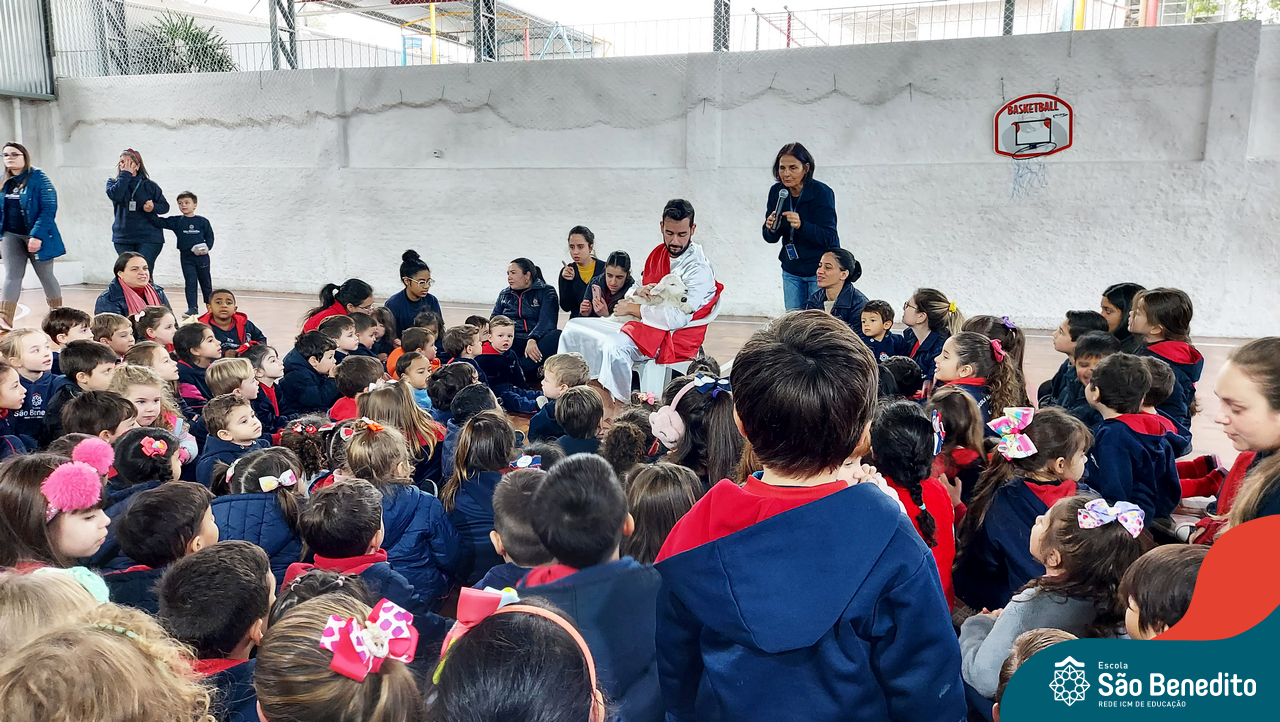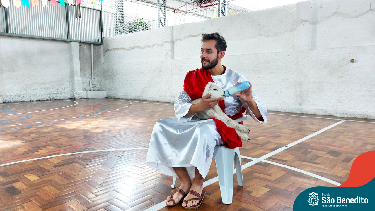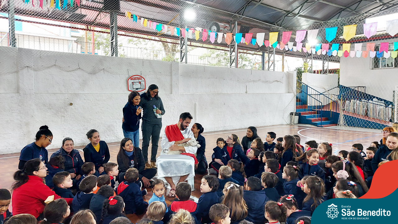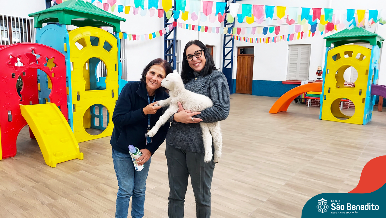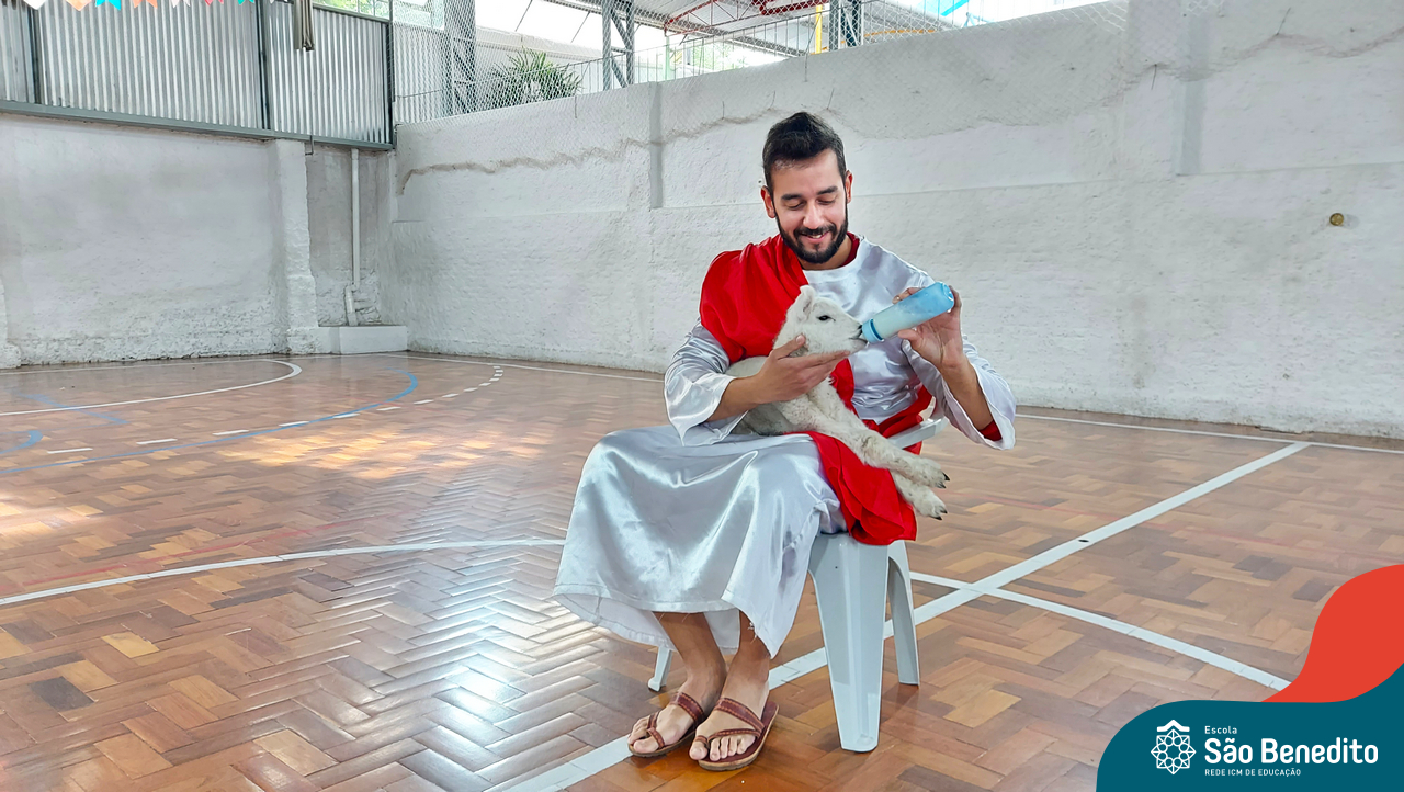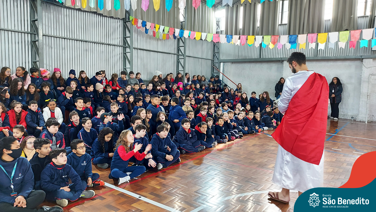 Na Escola São Benedito, os pequenos estudantes aprendem desde cedo a ouvir a Voz e o Chamado do Bom Pastor: na sexta-feira, 30 de junho, dando continuidade ao Ano Vocacional, as turmas da Educação Infantil e ensino Fundamental I receberam a ovelhinha do Bom Pastor, Jesus.