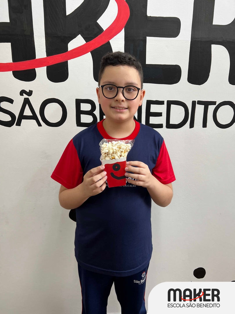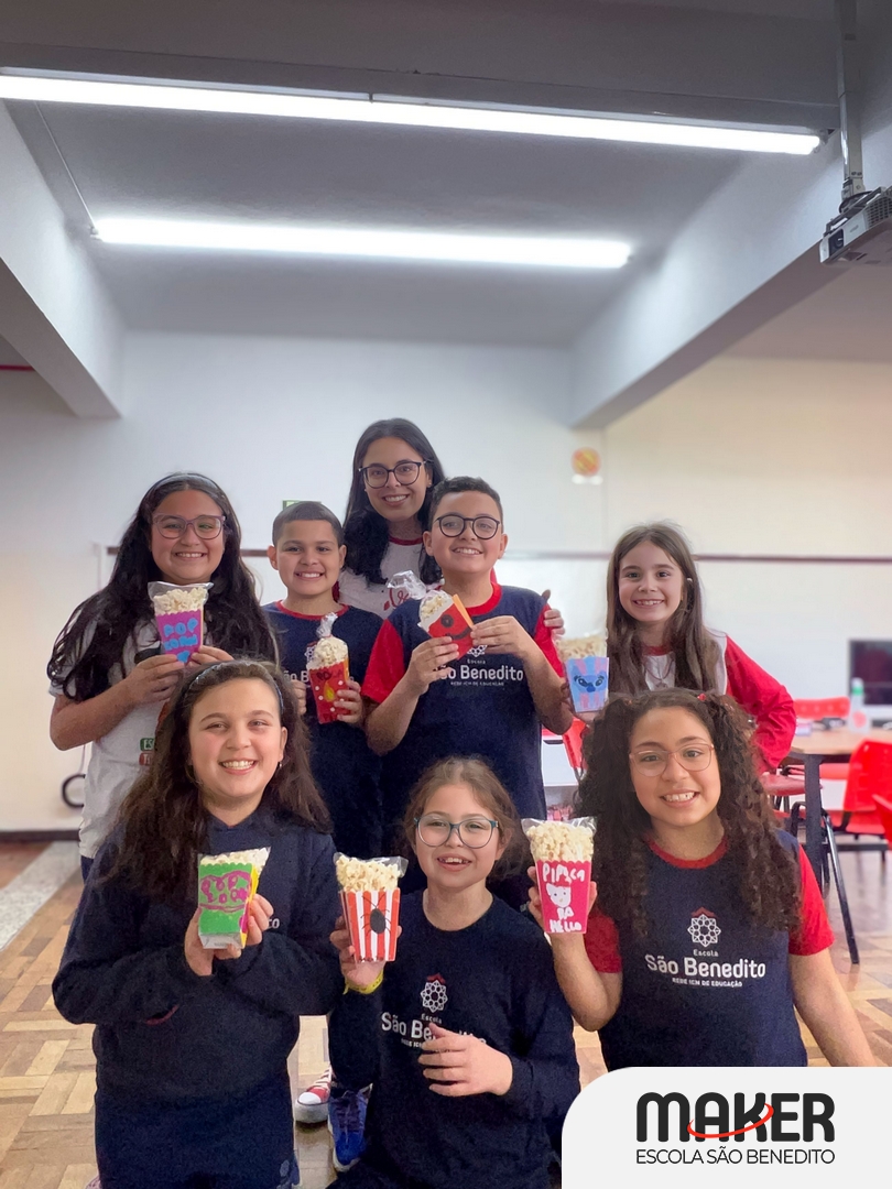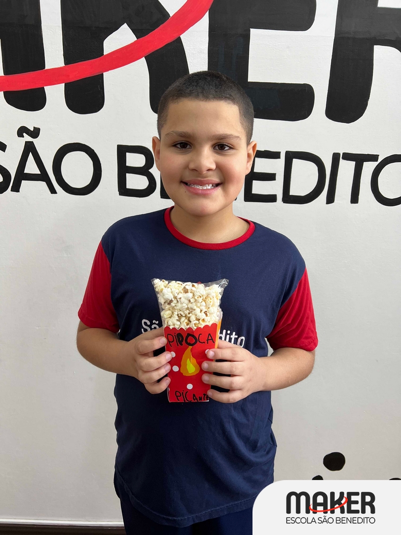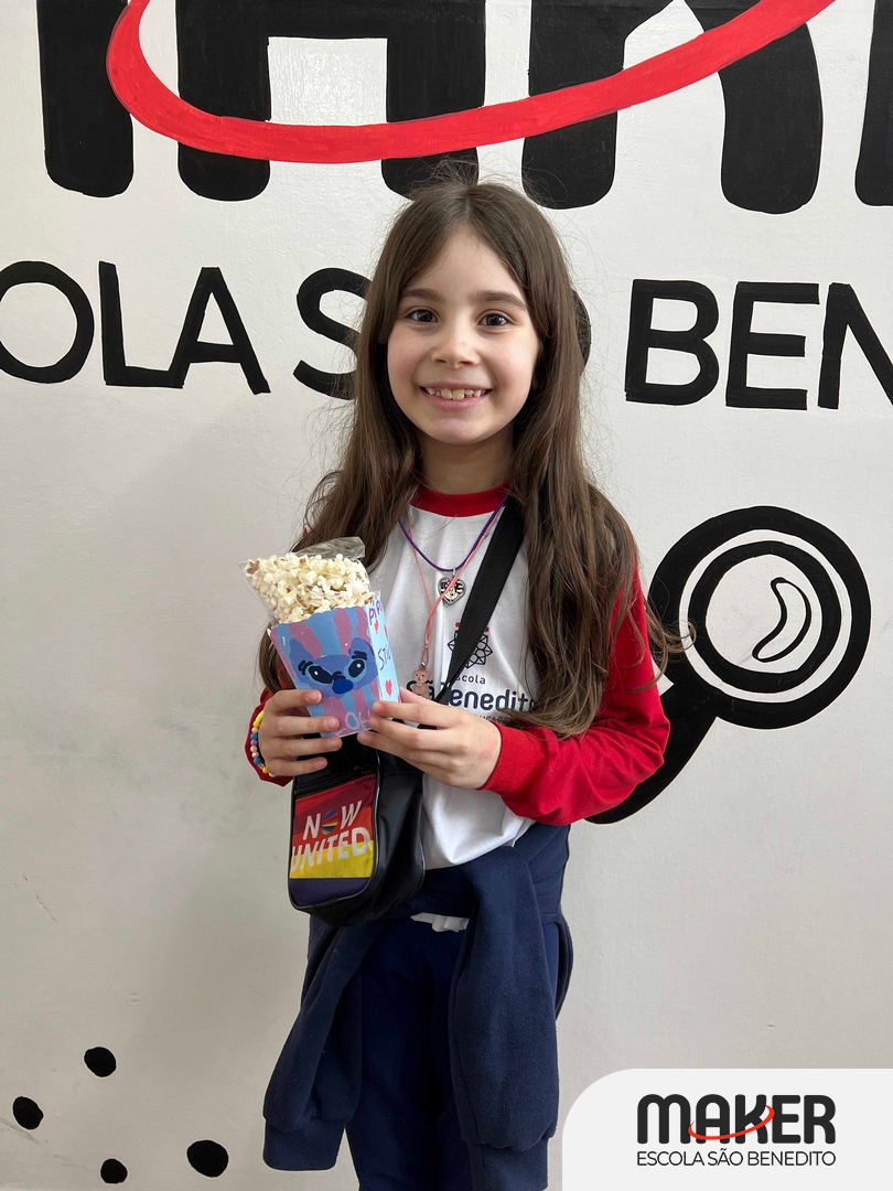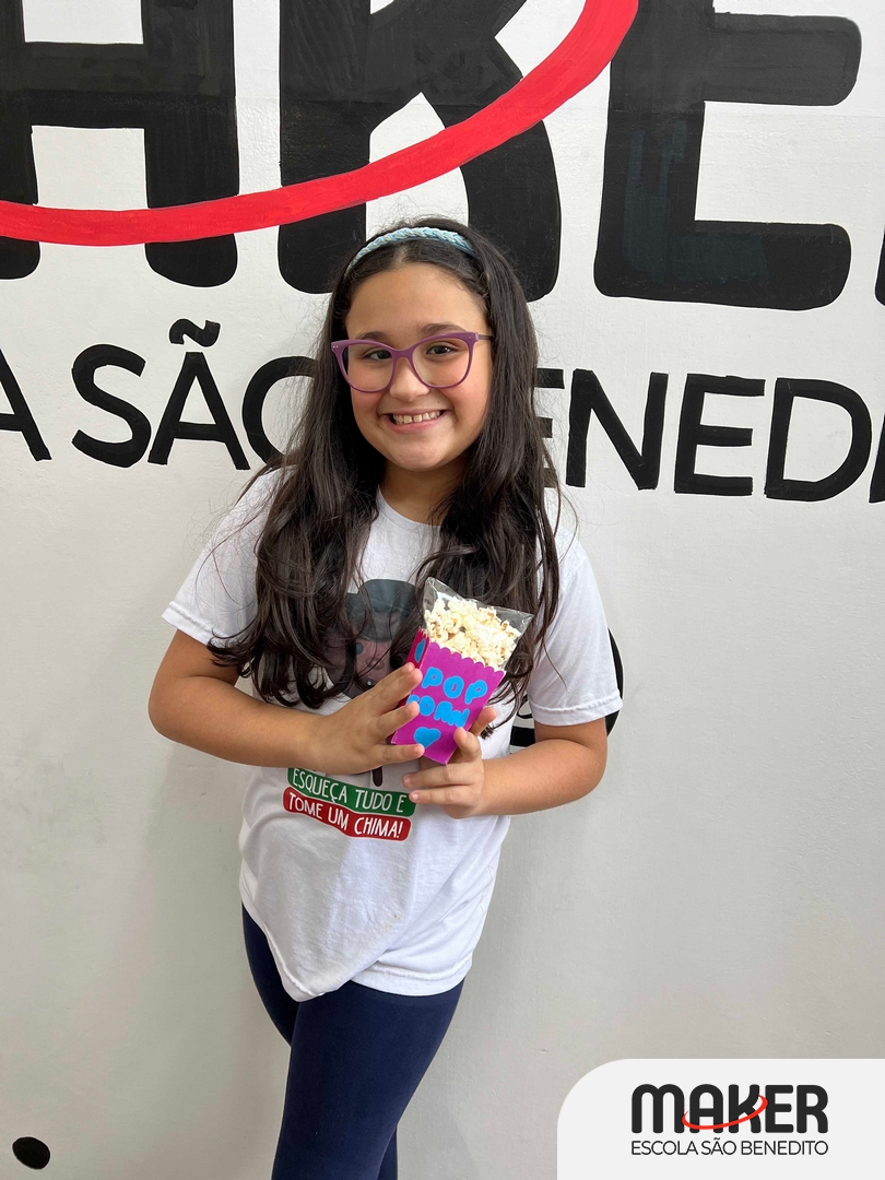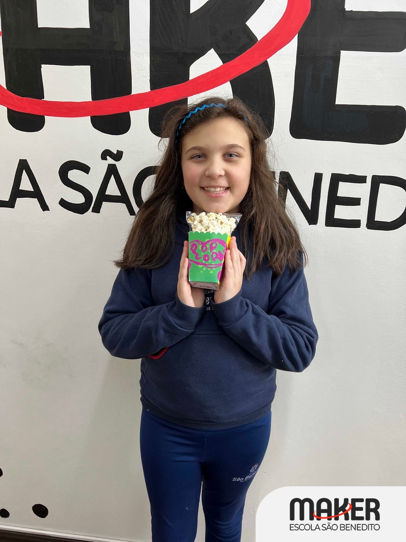 Na última aula, os alunos deram um passo adiante e desenvolveram um produto através da técnica da pintura digital: um pote de pipoca. Esse projeto final foi uma oportunidade para consolidar o aprendizado e celebrar as habilidades desenvolvidas ao longo dos encontros.