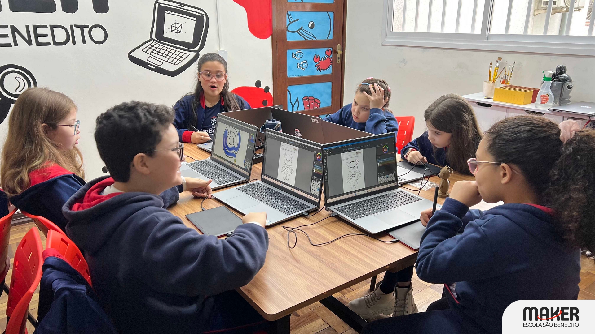 Nos dias 8, 10 e 31 de outubro, os estudantes do 3º ao 5º Ano da Escola São Benedito participaram do 1º Workshop promovido pelo Espaço Maker, que abordou a temática de Pintura Digital. As atividades iniciaram com uma introdução abrangente à pintura digital, em que os alunos aprenderam, além das diversas possibilidades de aplicação dessa técnica artística, sobre os materiais, programas e acessórios utilizados.