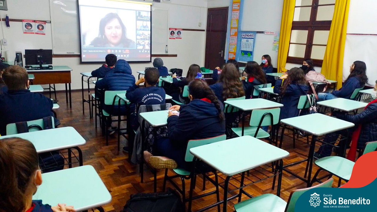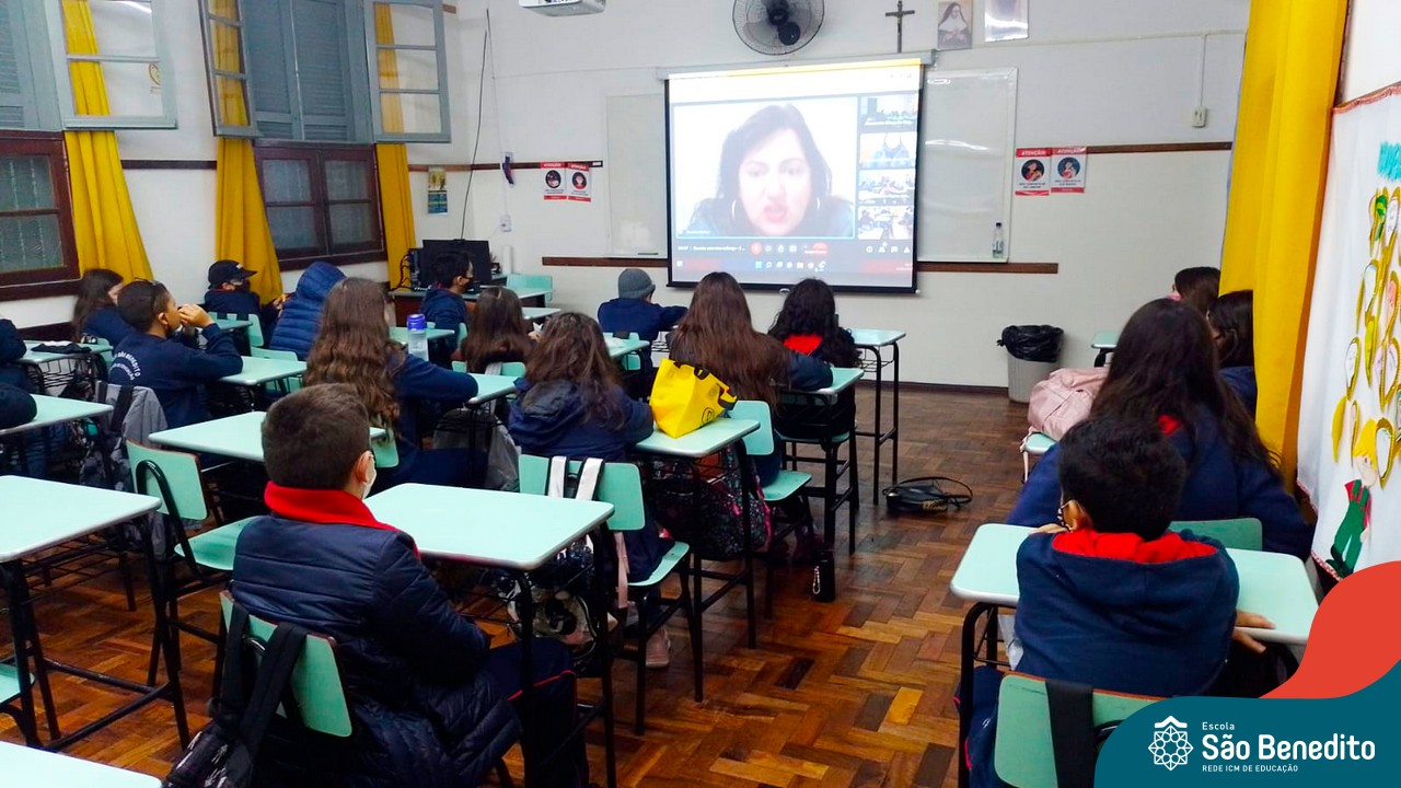 Na manhã desta sexta-feira, 27 de maio, os estudantes do 5º ao 9º ano participaram de um momento muito especial com a Especialista Pedagógica da Editora SM, Daniela Matos. No encontro, foram abordados temas comuns à fase que eles estão passando, como a organização dos estudos, planejamento das tarefas, e também sobre questões socioemocionais, como o exercício diário de gratidão e respeito, e do amor pela nossa família.