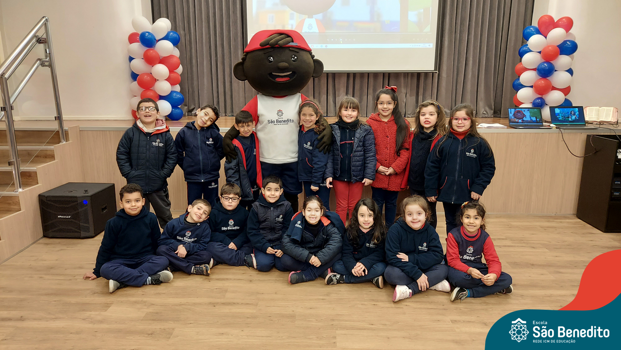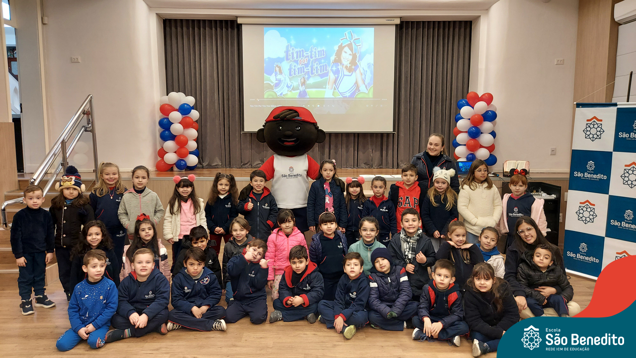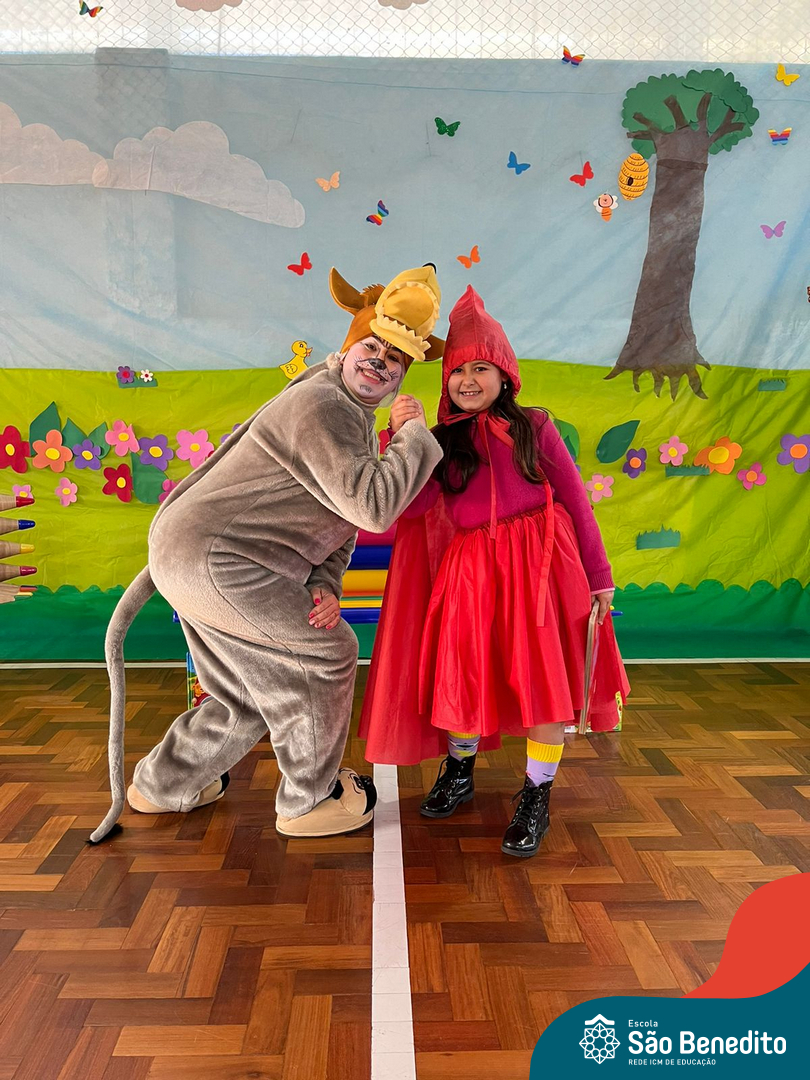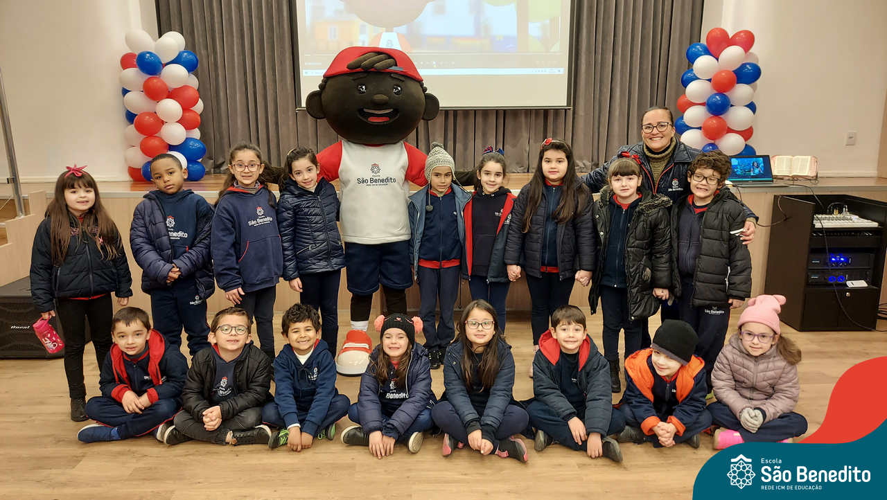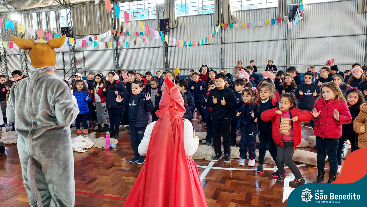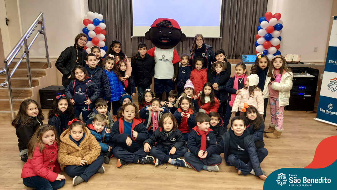 Dentre as atividades, vivemos a Hora da Pastoral com a Coord. de Pastoral, Filomena, que abordou a importância da amizade através de cantinhos e coreografias, e apresentou o amigão dos estudantes do São Benedito, o mascote Bene, que teve sua estreia em 17 de julho. As crianças também assistiram uma peça de teatro, que foi preparada com muito carinho pela equipe da Hora do Conto, “Tia Rosinha e seus Amigos”, que trouxe a adaptação do clássico infantil, Chapeuzinho Vermelho, de forma inédita, relacionando a leitura e a amizade. Para que esses dois momentos valiosos se tornassem ainda mais extraordinários, os estudantes das turmas de 1º a 4º Ano, que são amigos de toda a escola, participaram como convidados mais que especiais!