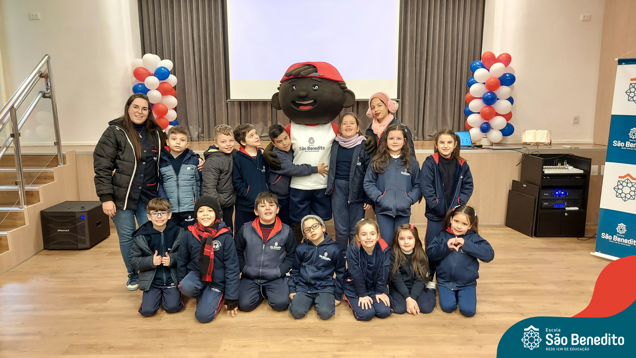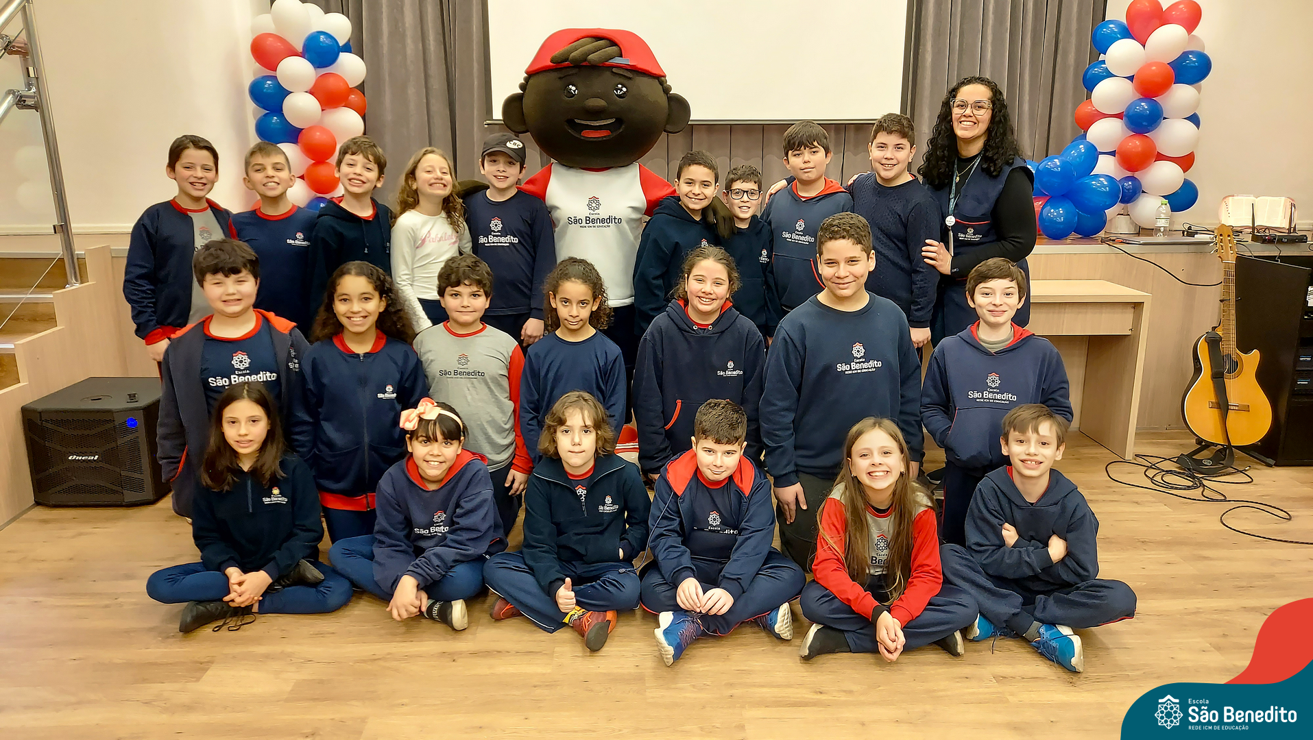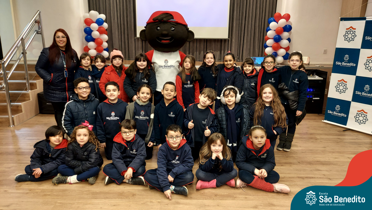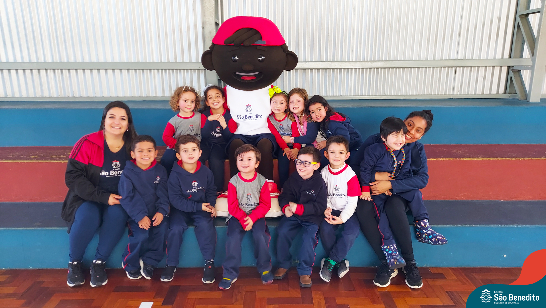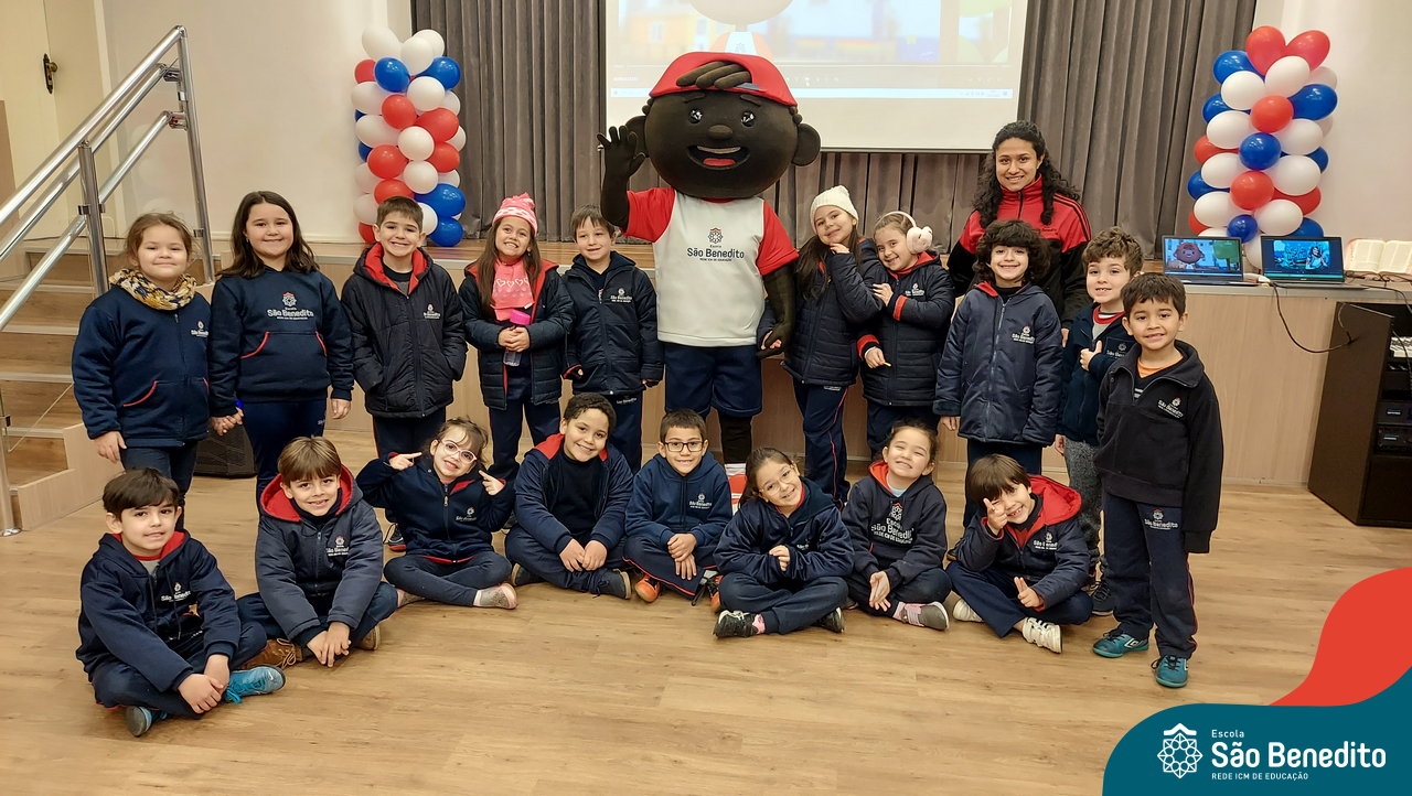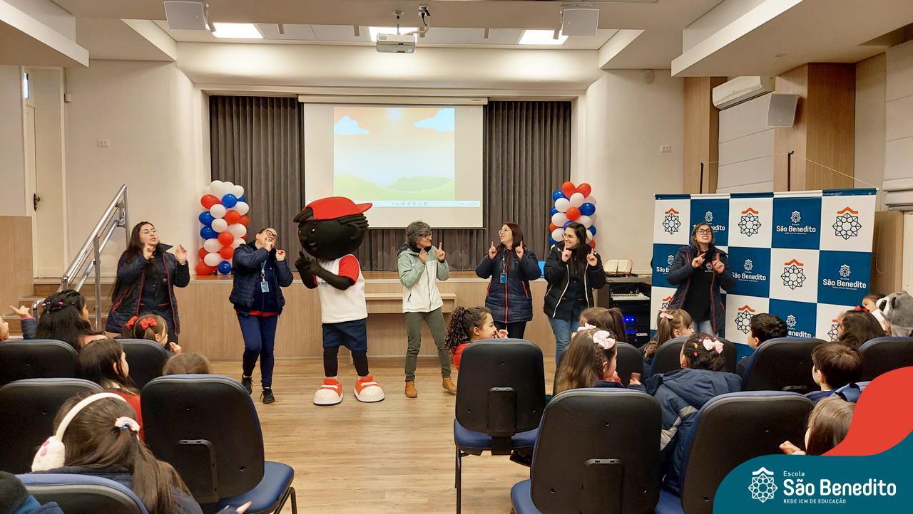 Dentre as atividades, vivemos a Hora da Pastoral com a Coord. de Pastoral, Filomena, que abordou a importância da amizade através de cantinhos e coreografias, e apresentou o amigão dos estudantes do São Benedito, o mascote Bene, que teve sua estreia em 17 de julho. As crianças também assistiram uma peça de teatro, que foi preparada com muito carinho pela equipe da Hora do Conto, “Tia Rosinha e seus Amigos”, que trouxe a adaptação do clássico infantil, Chapeuzinho Vermelho, de forma inédita, relacionando a leitura e a amizade. Para que esses dois momentos valiosos se tornassem ainda mais extraordinários, os estudantes das turmas de 1º a 4º Ano, que são amigos de toda a escola, participaram como convidados mais que especiais!