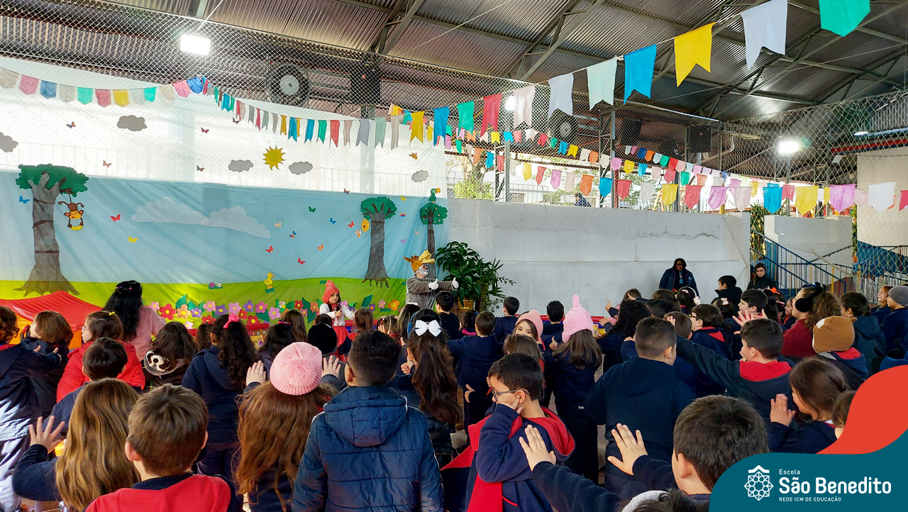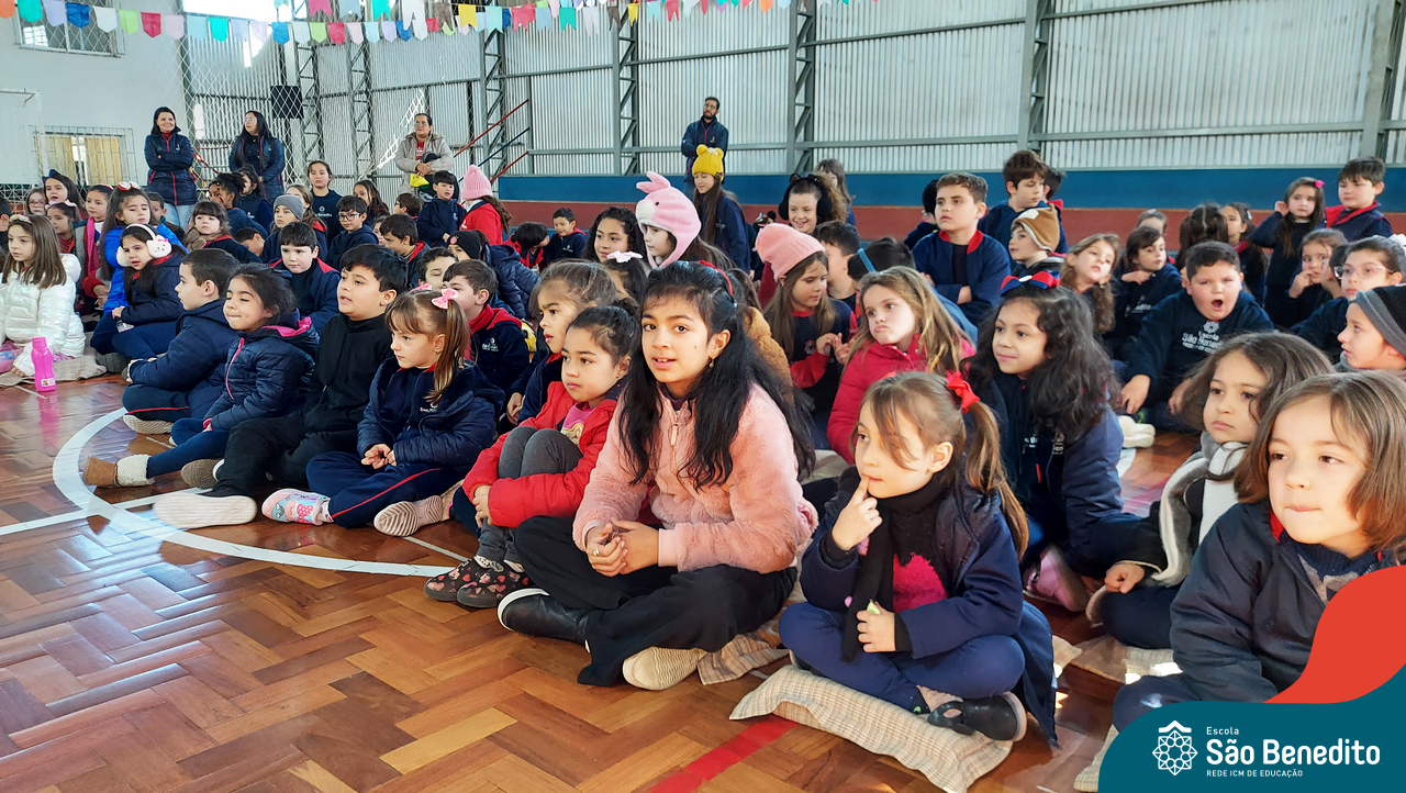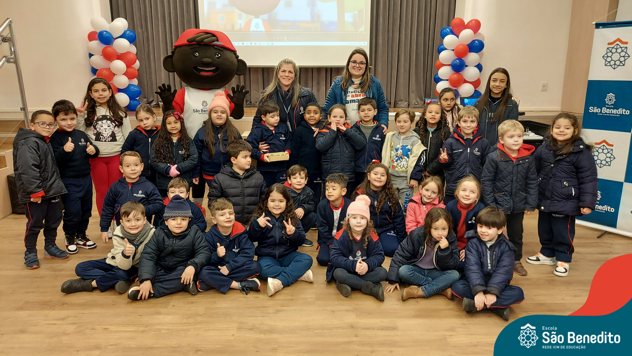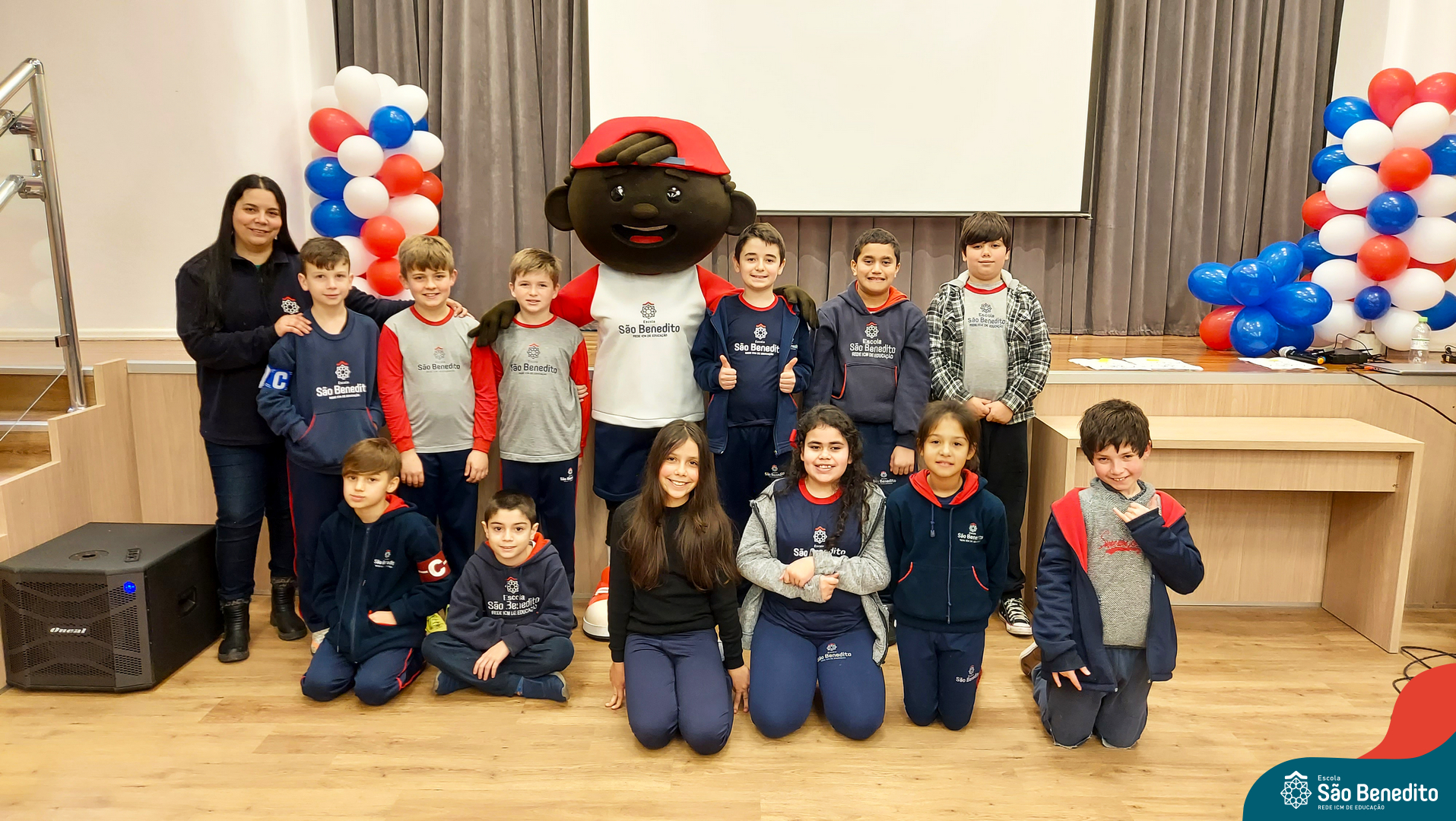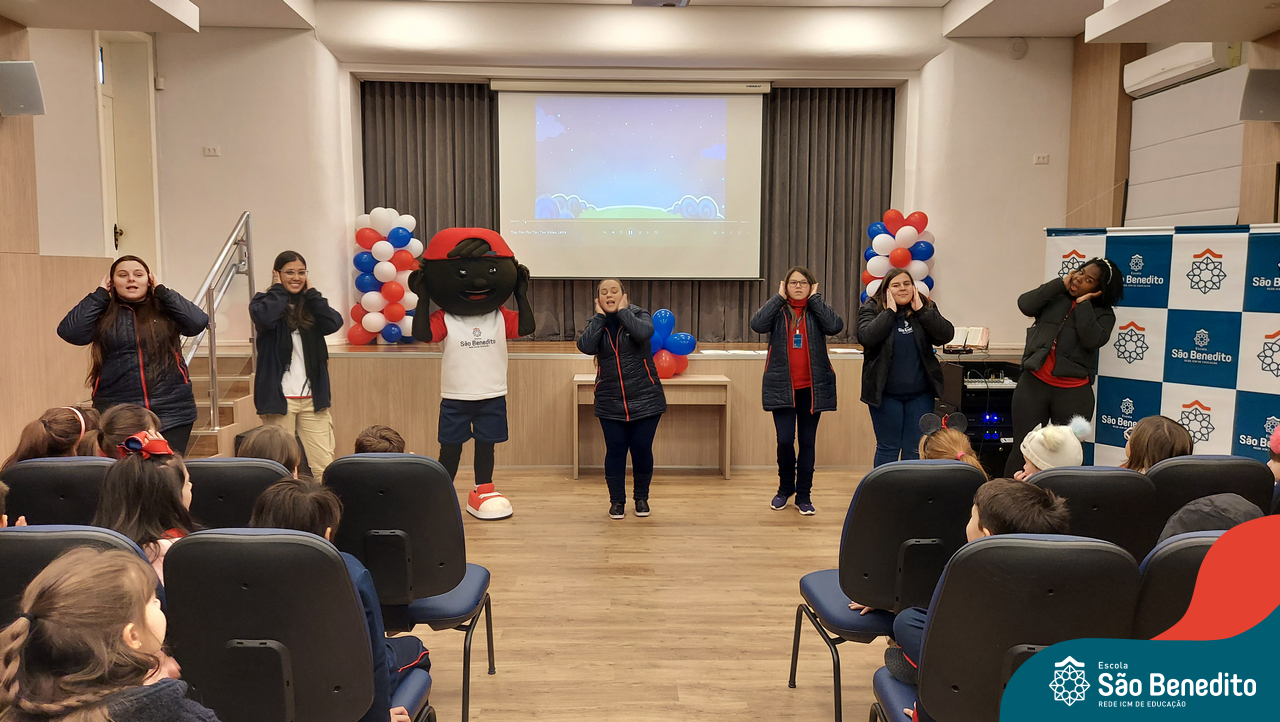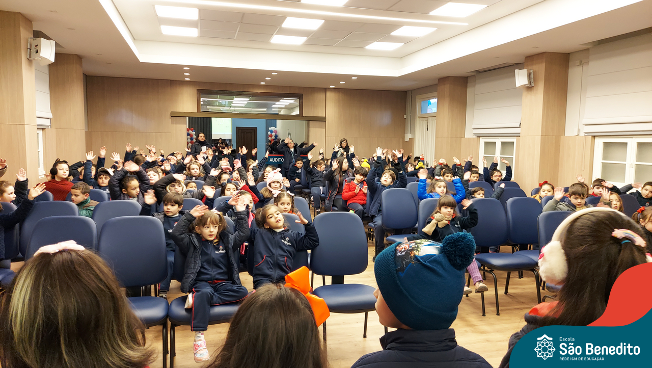 Dentre as atividades, vivemos a Hora da Pastoral com a Coord. de Pastoral, Filomena, que abordou a importância da amizade através de cantinhos e coreografias, e apresentou o amigão dos estudantes do São Benedito, o mascote Bene, que teve sua estreia em 17 de julho. As crianças também assistiram uma peça de teatro, que foi preparada com muito carinho pela equipe da Hora do Conto, “Tia Rosinha e seus Amigos”, que trouxe a adaptação do clássico infantil, Chapeuzinho Vermelho, de forma inédita, relacionando a leitura e a amizade. Para que esses dois momentos valiosos se tornassem ainda mais extraordinários, os estudantes das turmas de 1º a 4º Ano, que são amigos de toda a escola, participaram como convidados mais que especiais!