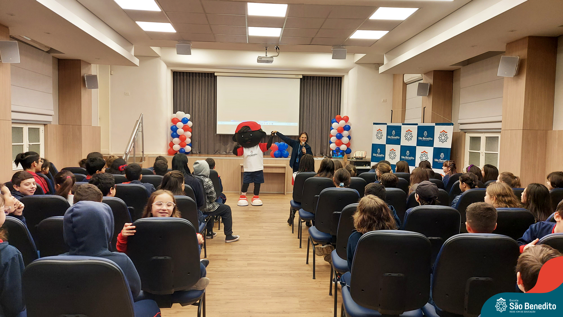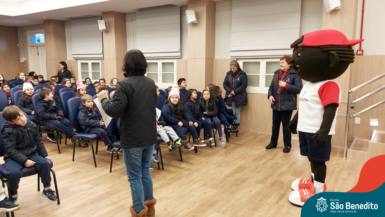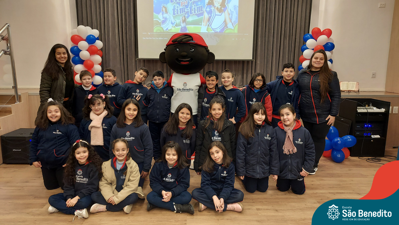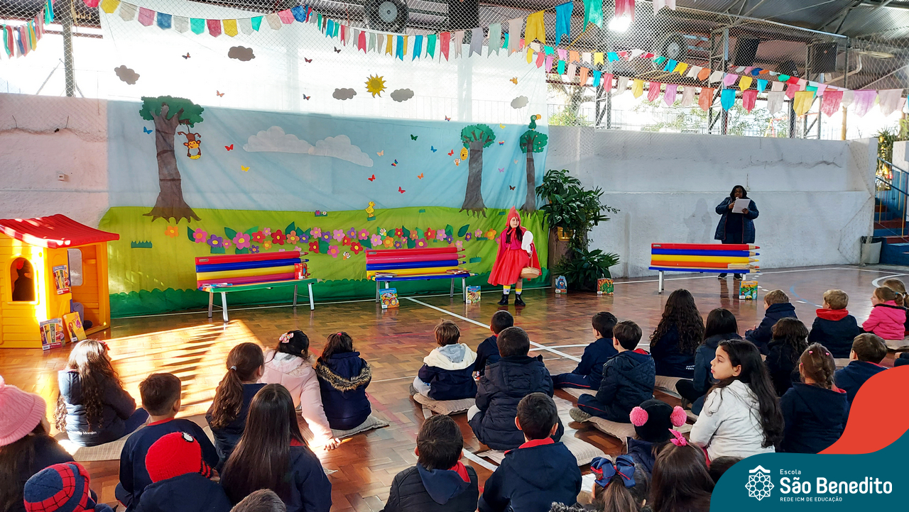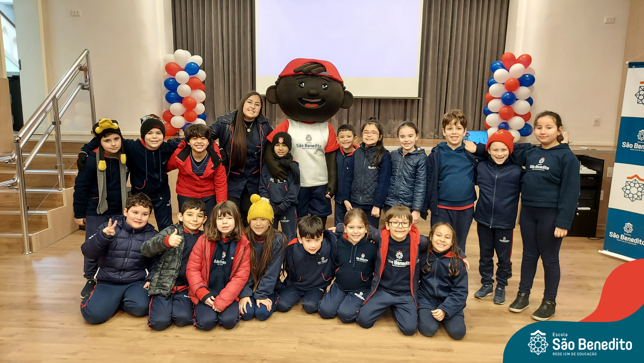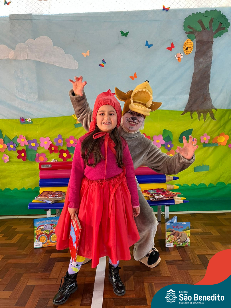 Dentre as atividades, vivemos a Hora da Pastoral com a Coord. de Pastoral, Filomena, que abordou a importância da amizade através de cantinhos e coreografias, e apresentou o amigão dos estudantes do São Benedito, o mascote Bene, que teve sua estreia em 17 de julho. As crianças também assistiram uma peça de teatro, que foi preparada com muito carinho pela equipe da Hora do Conto, “Tia Rosinha e seus Amigos”, que trouxe a adaptação do clássico infantil, Chapeuzinho Vermelho, de forma inédita, relacionando a leitura e a amizade. Para que esses dois momentos valiosos se tornassem ainda mais extraordinários, os estudantes das turmas de 1º a 4º Ano, que são amigos de toda a escola, participaram como convidados mais que especiais!