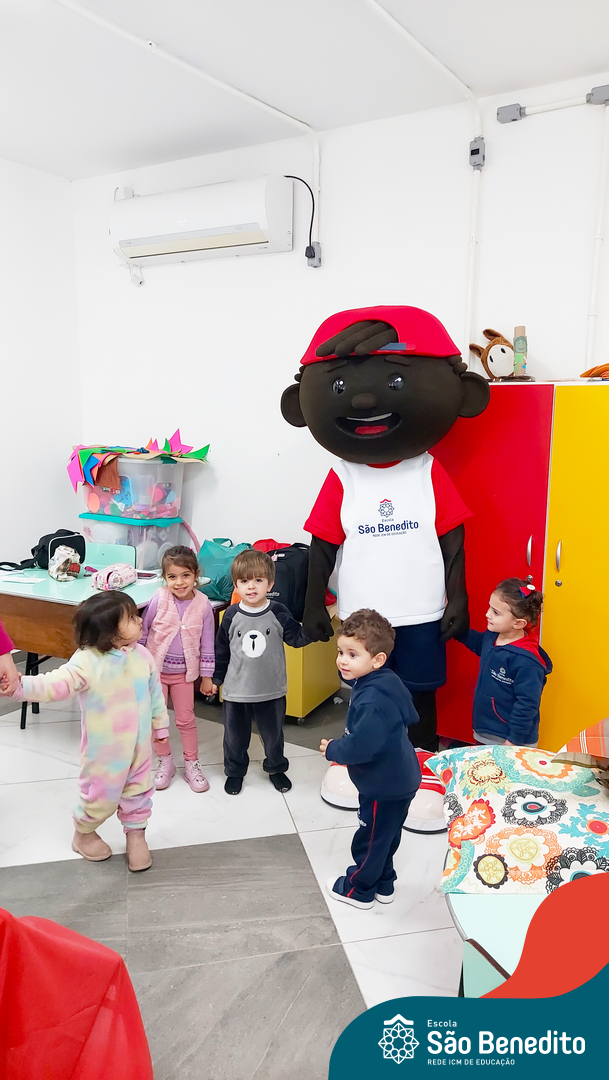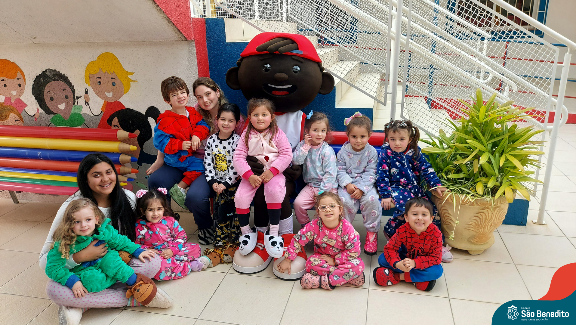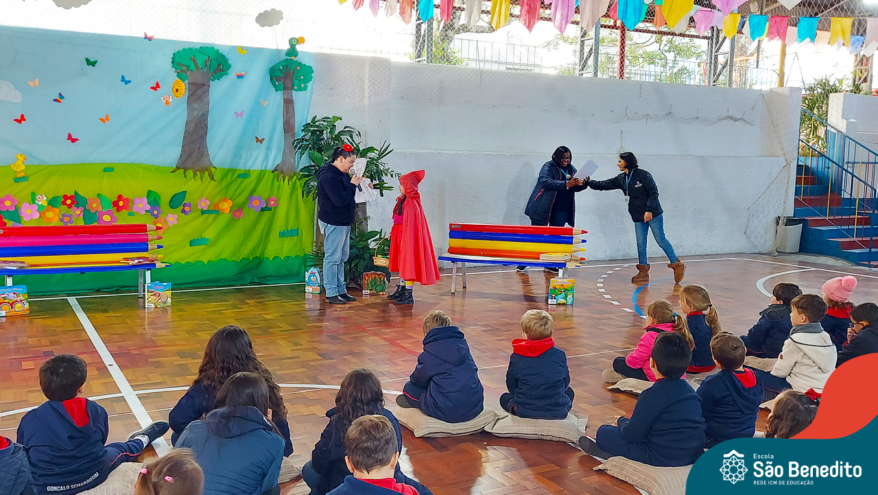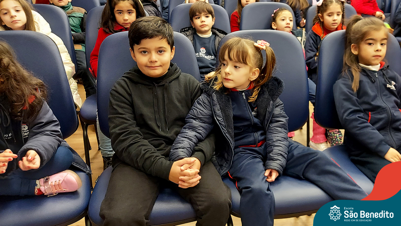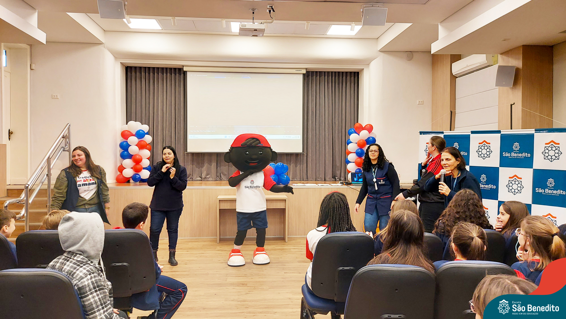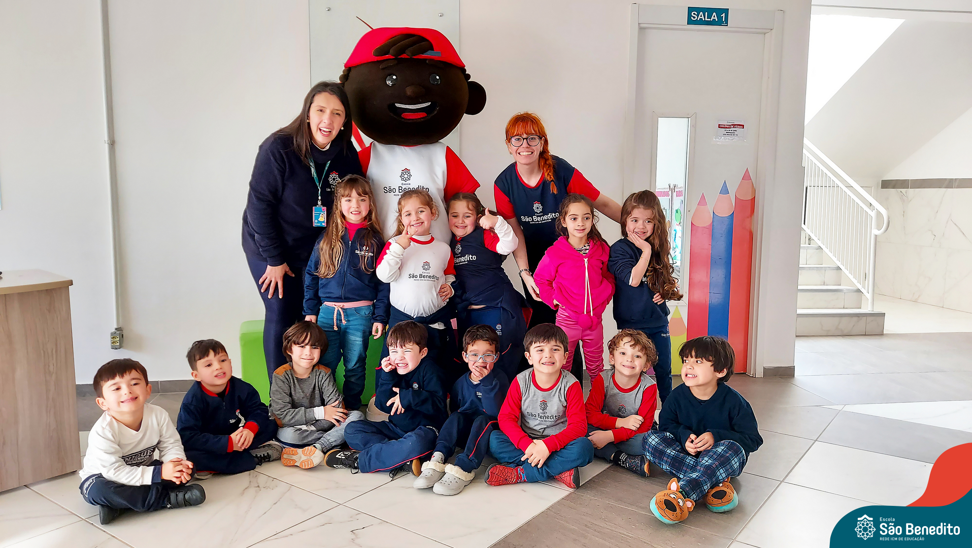 Dentre as atividades, vivemos a Hora da Pastoral com a Coord. de Pastoral, Filomena, que abordou a importância da amizade através de cantinhos e coreografias, e apresentou o amigão dos estudantes do São Benedito, o mascote Bene, que teve sua estreia em 17 de julho. As crianças também assistiram uma peça de teatro, que foi preparada com muito carinho pela equipe da Hora do Conto, “Tia Rosinha e seus Amigos”, que trouxe a adaptação do clássico infantil, Chapeuzinho Vermelho, de forma inédita, relacionando a leitura e a amizade. Para que esses dois momentos valiosos se tornassem ainda mais extraordinários, os estudantes das turmas de 1º a 4º Ano, que são amigos de toda a escola, participaram como convidados mais que especiais!