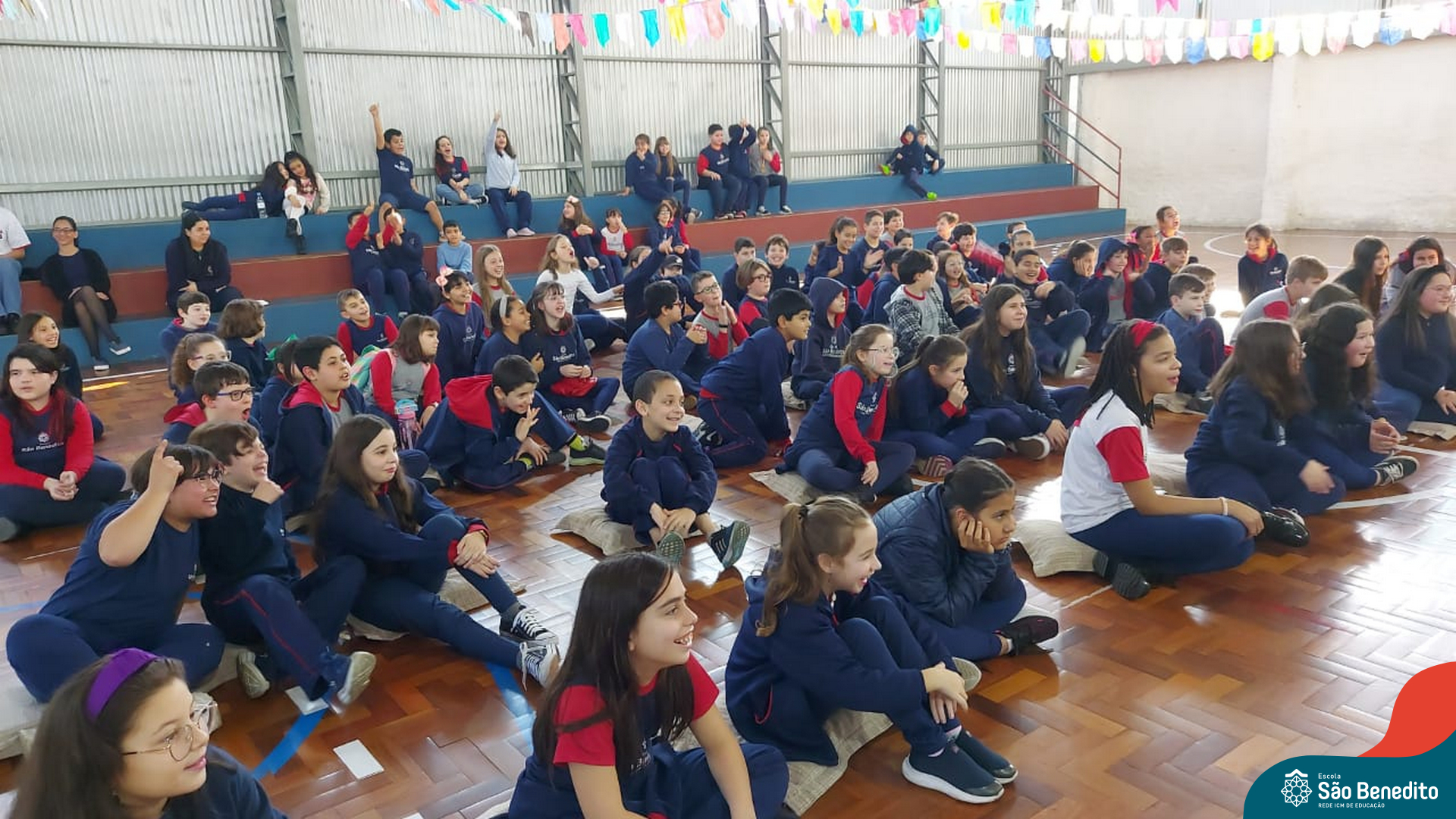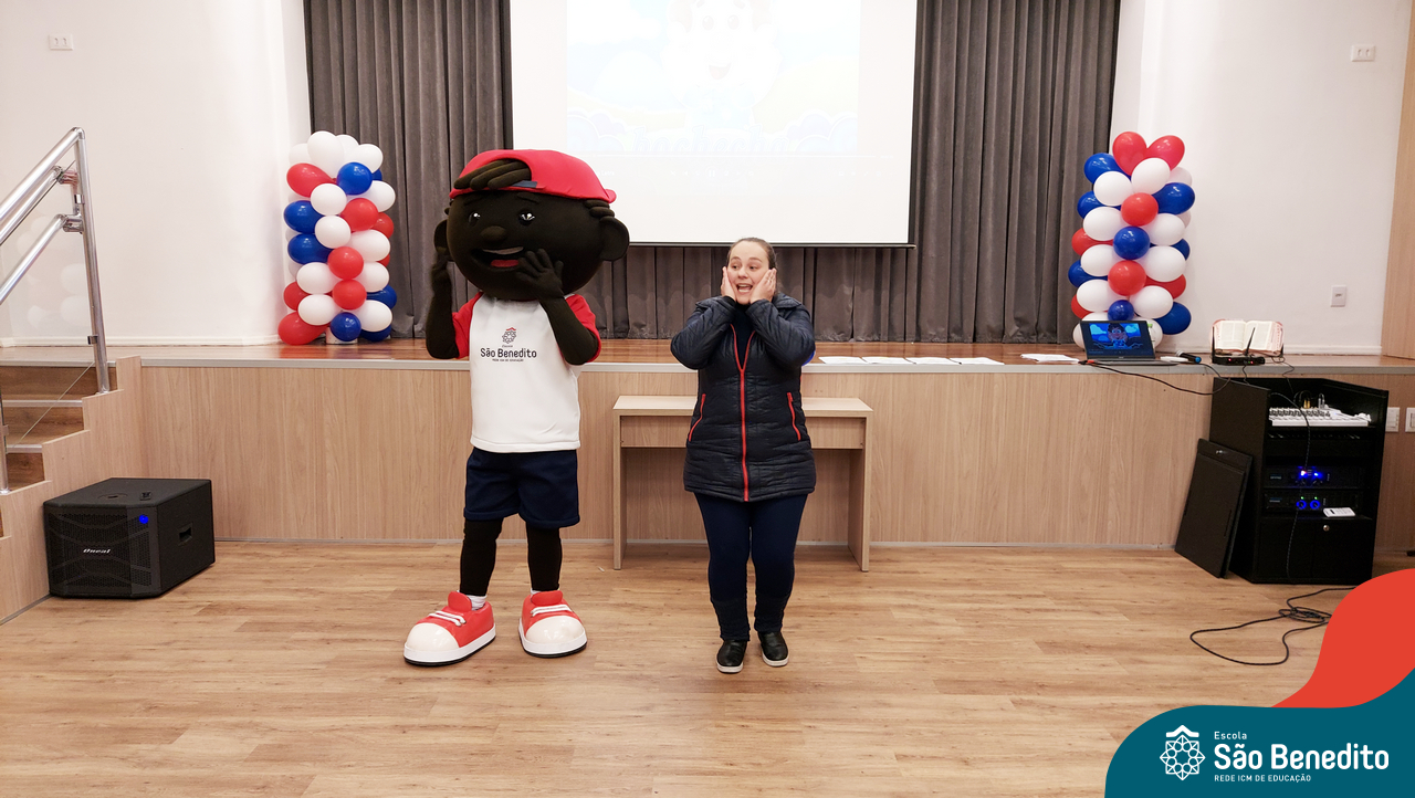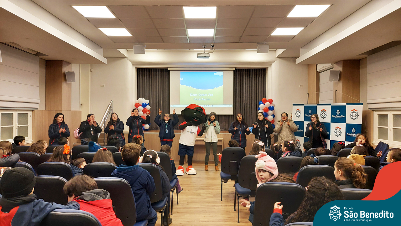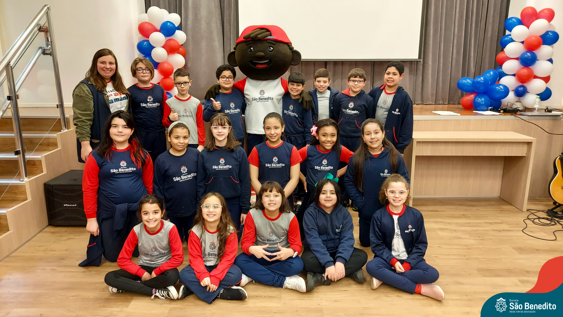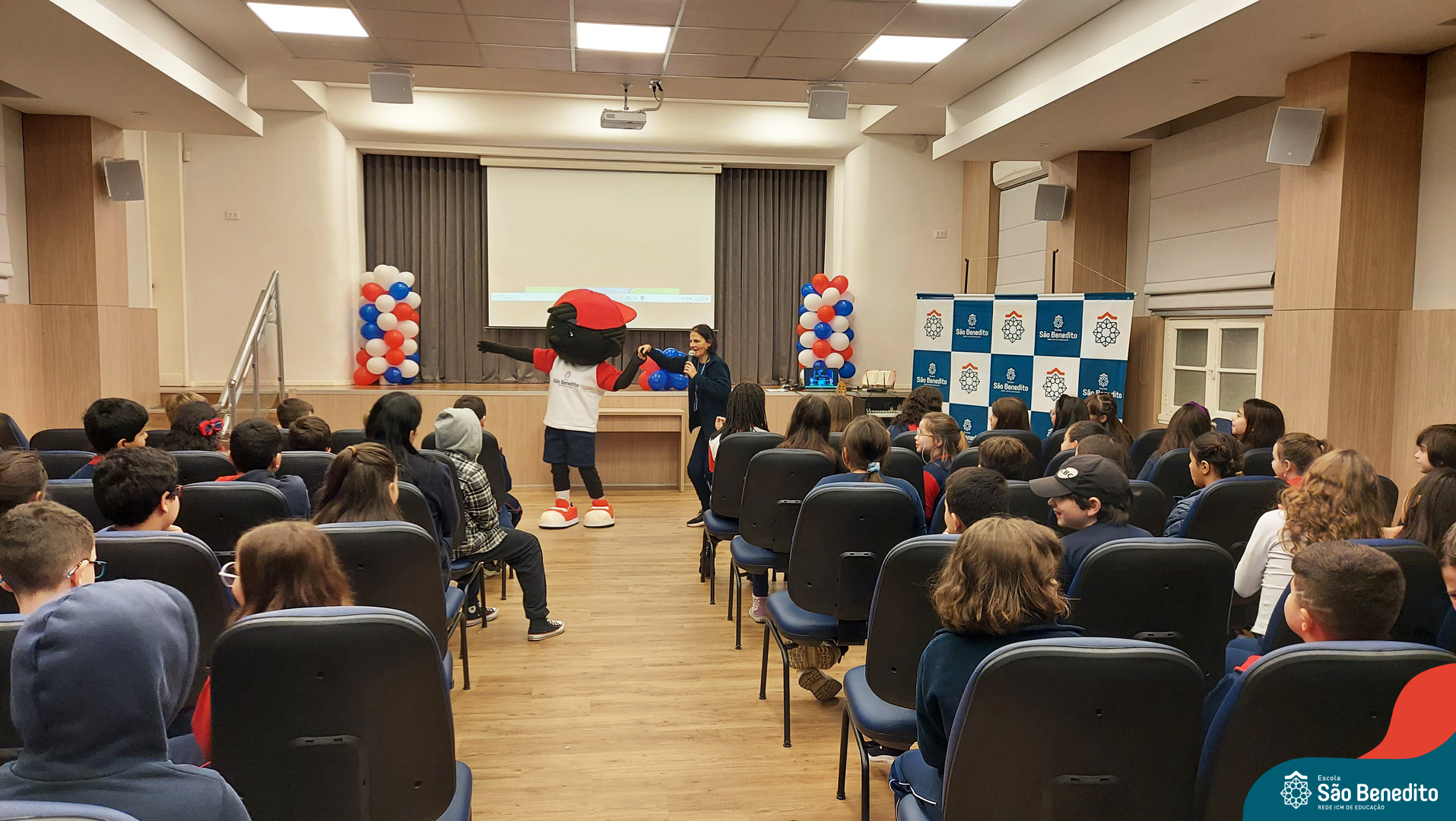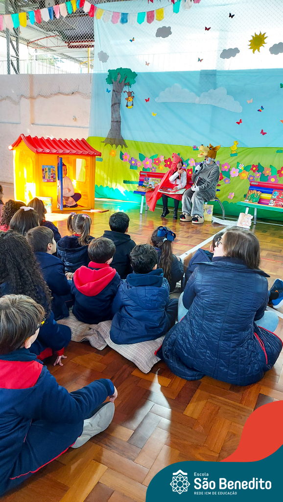Dentre as atividades, vivemos a Hora da Pastoral com a Coord. de Pastoral, Filomena, que abordou a importância da amizade através de cantinhos e coreografias, e apresentou o amigão dos estudantes do São Benedito, o mascote Bene, que teve sua estreia em 17 de julho. As crianças também assistiram uma peça de teatro, que foi preparada com muito carinho pela equipe da Hora do Conto, “Tia Rosinha e seus Amigos”, que trouxe a adaptação do clássico infantil, Chapeuzinho Vermelho, de forma inédita, relacionando a leitura e a amizade. Para que esses dois momentos valiosos se tornassem ainda mais extraordinários, os estudantes das turmas de 1º a 4º Ano, que são amigos de toda a escola, participaram como convidados mais que especiais!
