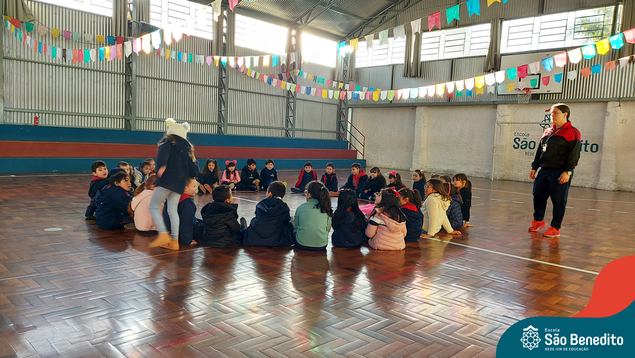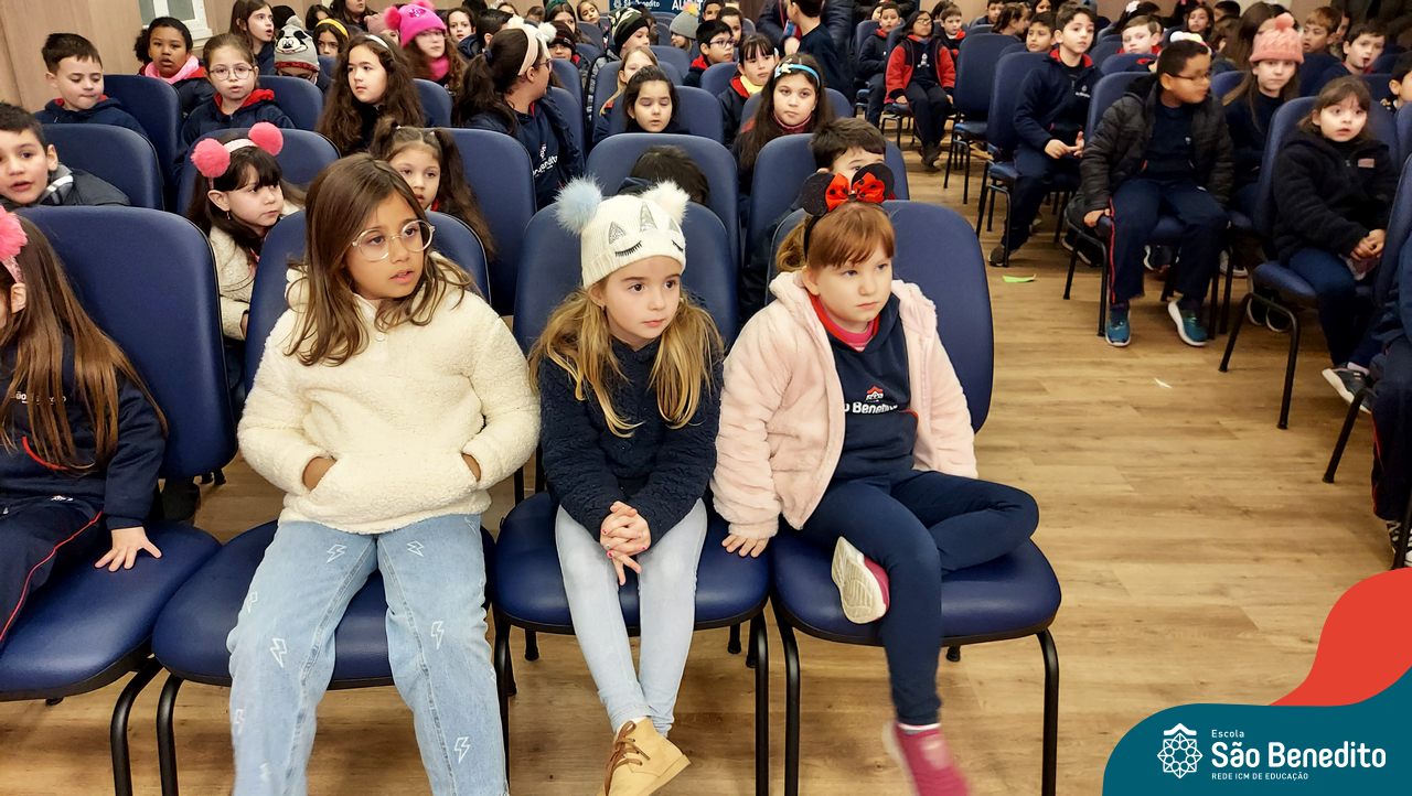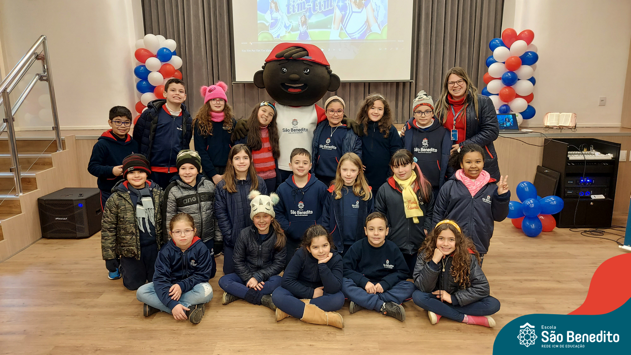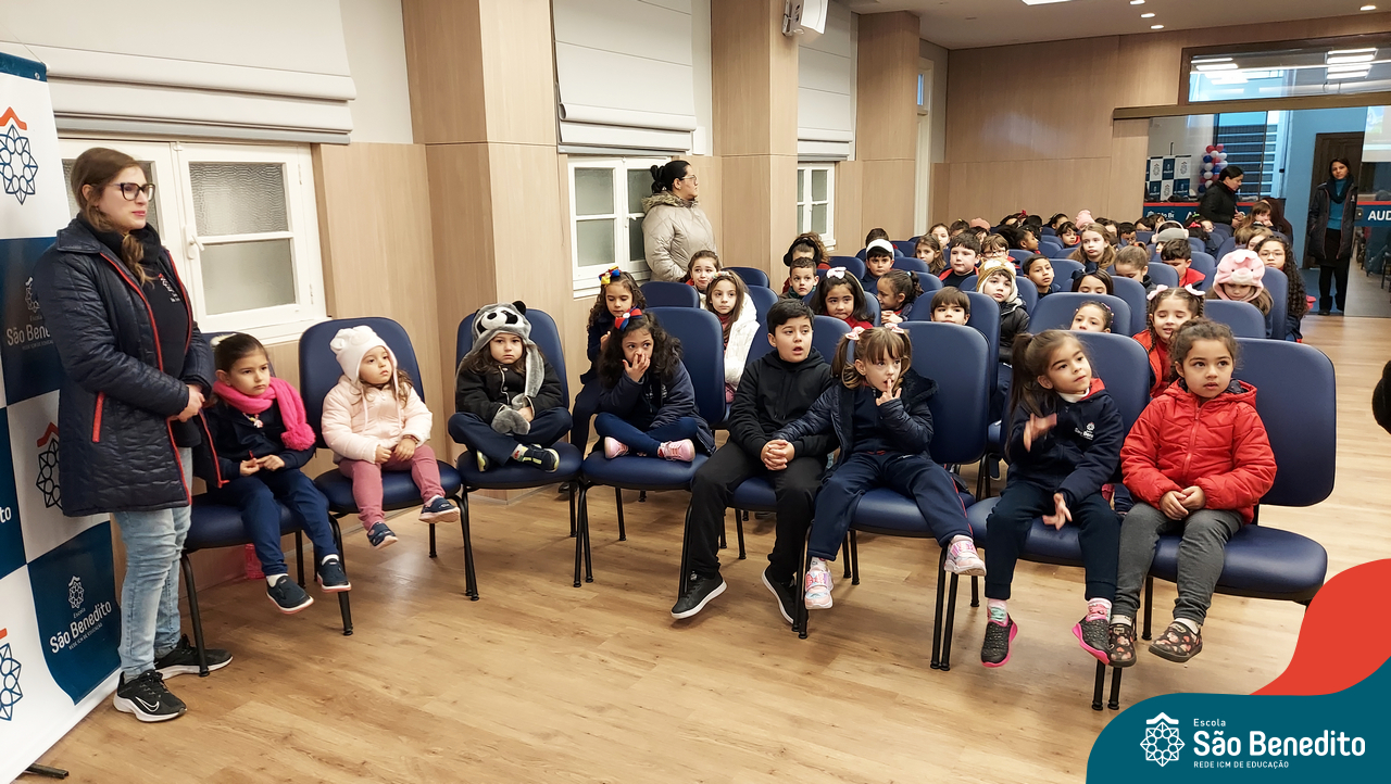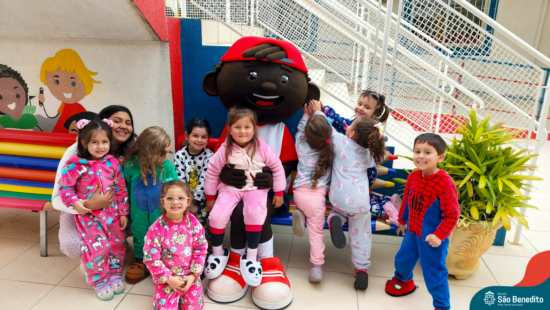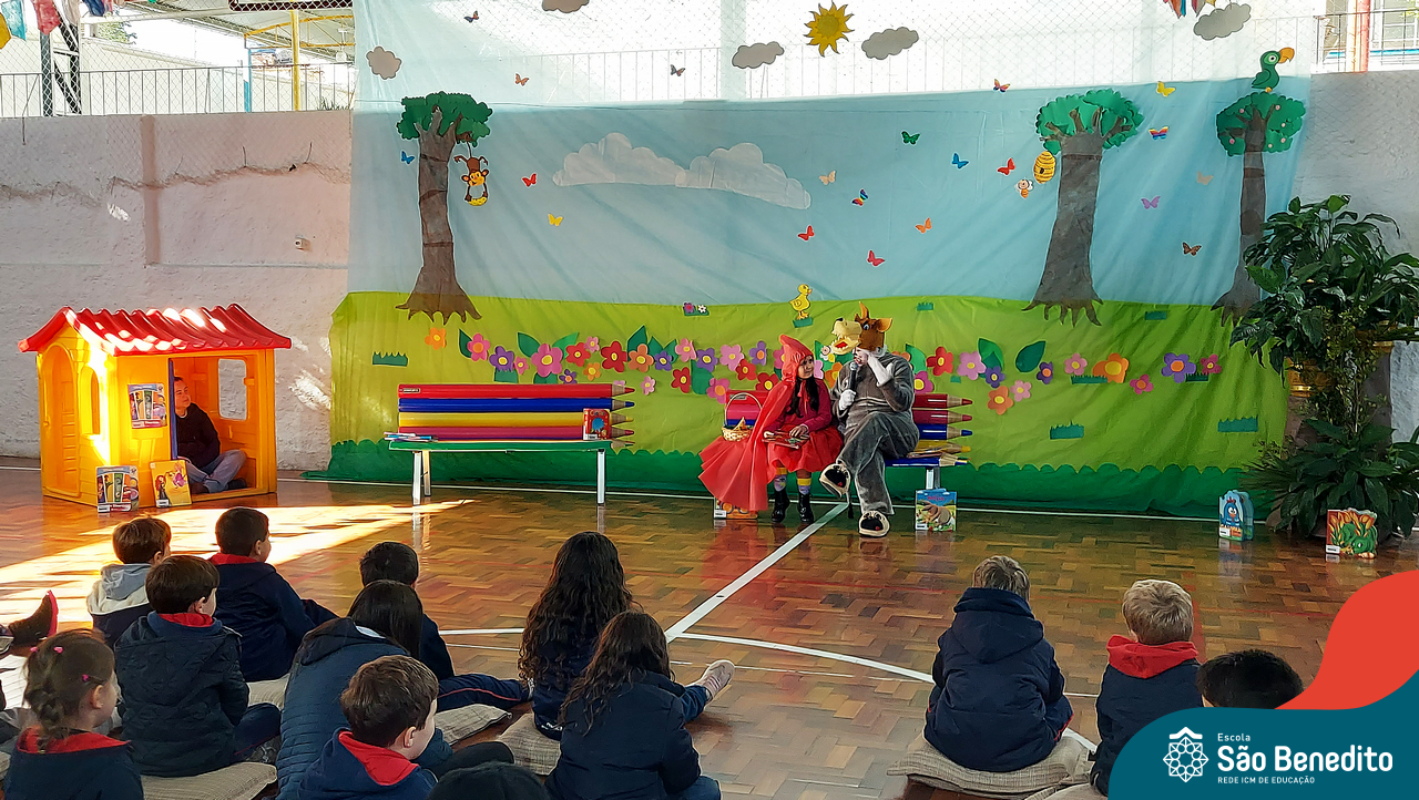 Dentre as atividades, vivemos a Hora da Pastoral com a Coord. de Pastoral, Filomena, que abordou a importância da amizade através de cantinhos e coreografias, e apresentou o amigão dos estudantes do São Benedito, o mascote Bene, que teve sua estreia em 17 de julho. As crianças também assistiram uma peça de teatro, que foi preparada com muito carinho pela equipe da Hora do Conto, “Tia Rosinha e seus Amigos”, que trouxe a adaptação do clássico infantil, Chapeuzinho Vermelho, de forma inédita, relacionando a leitura e a amizade. Para que esses dois momentos valiosos se tornassem ainda mais extraordinários, os estudantes das turmas de 1º a 4º Ano, que são amigos de toda a escola, participaram como convidados mais que especiais!
