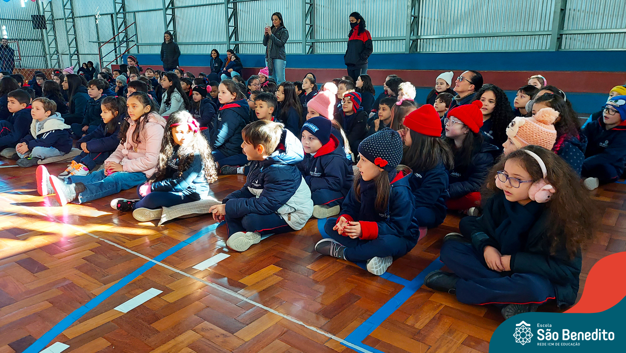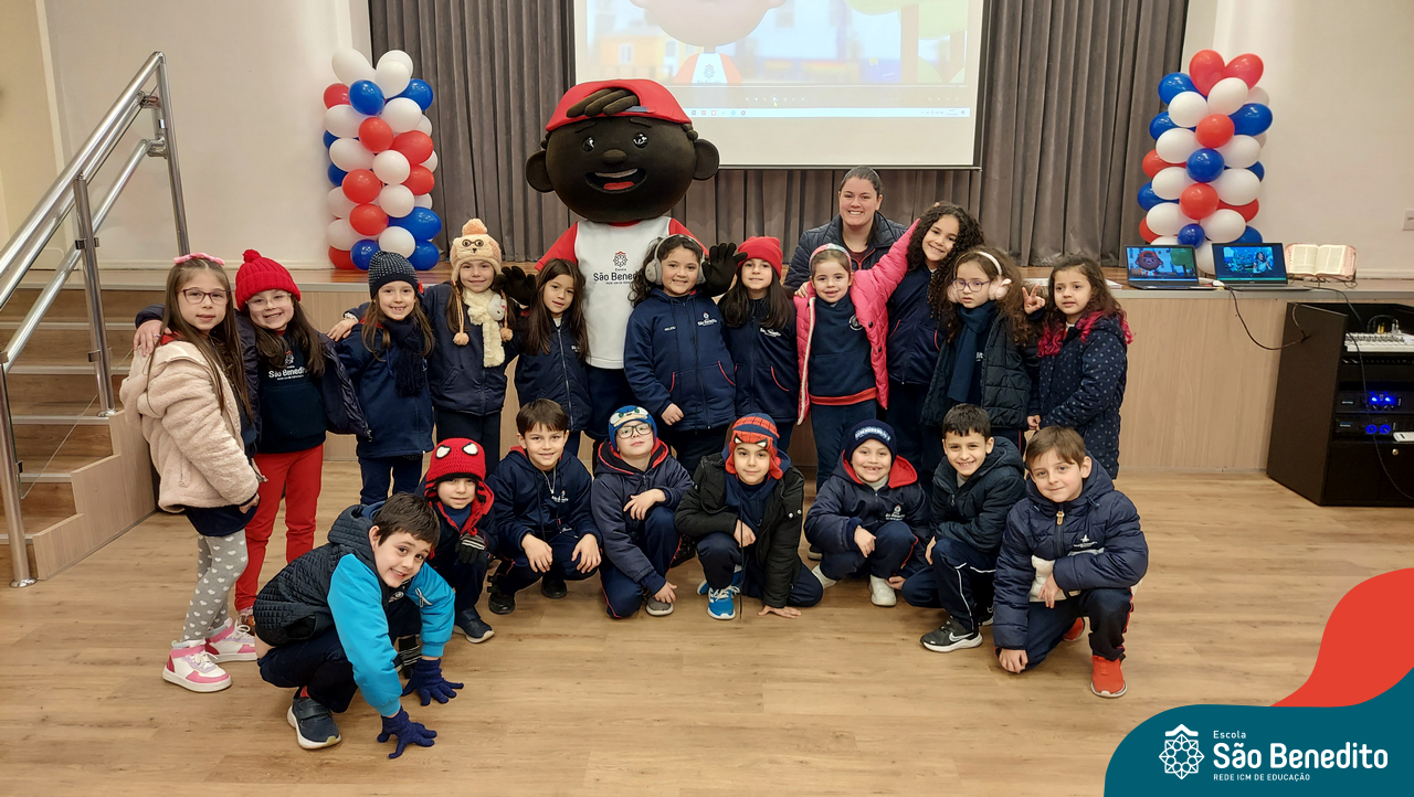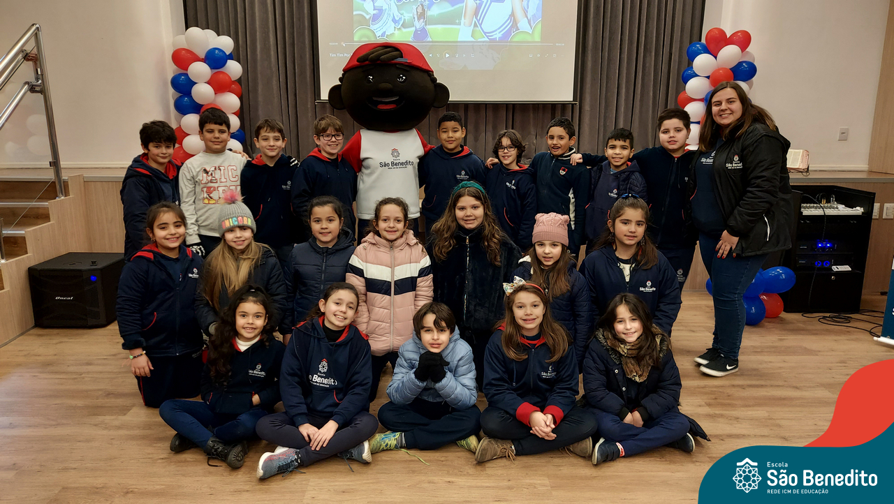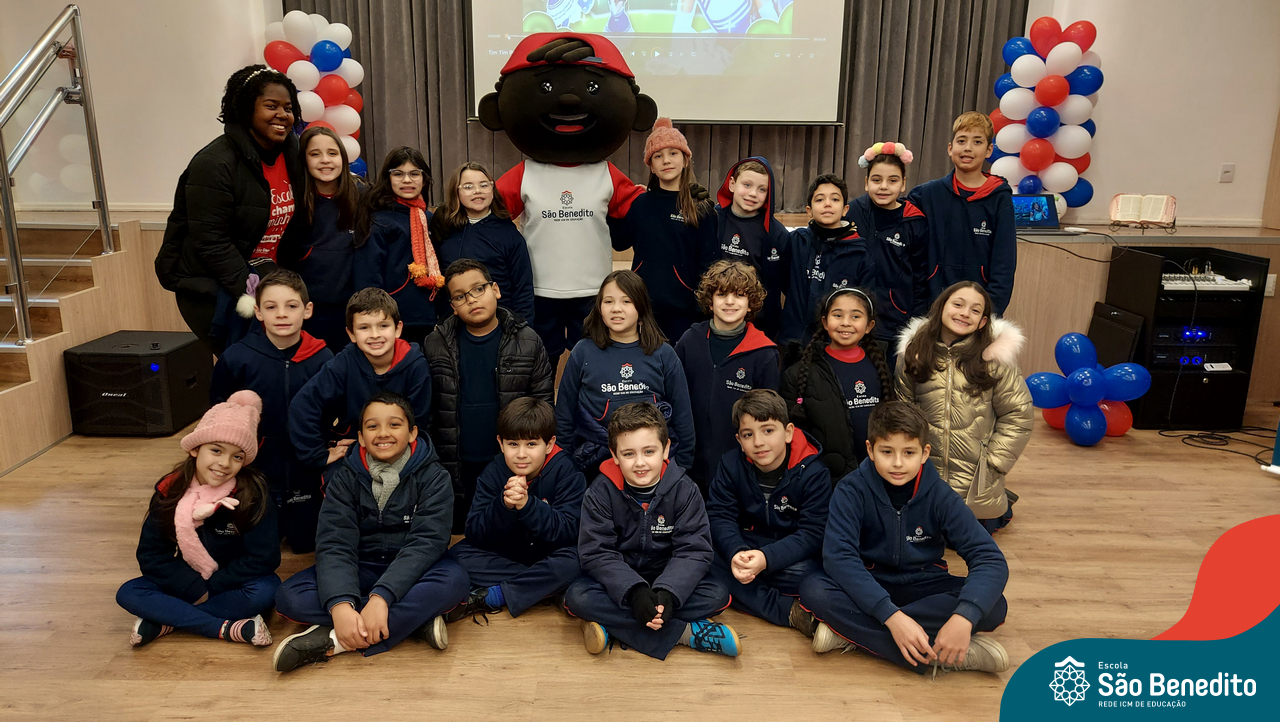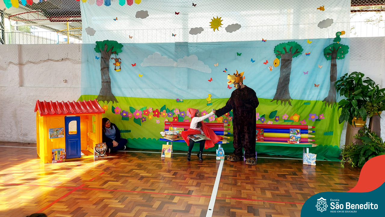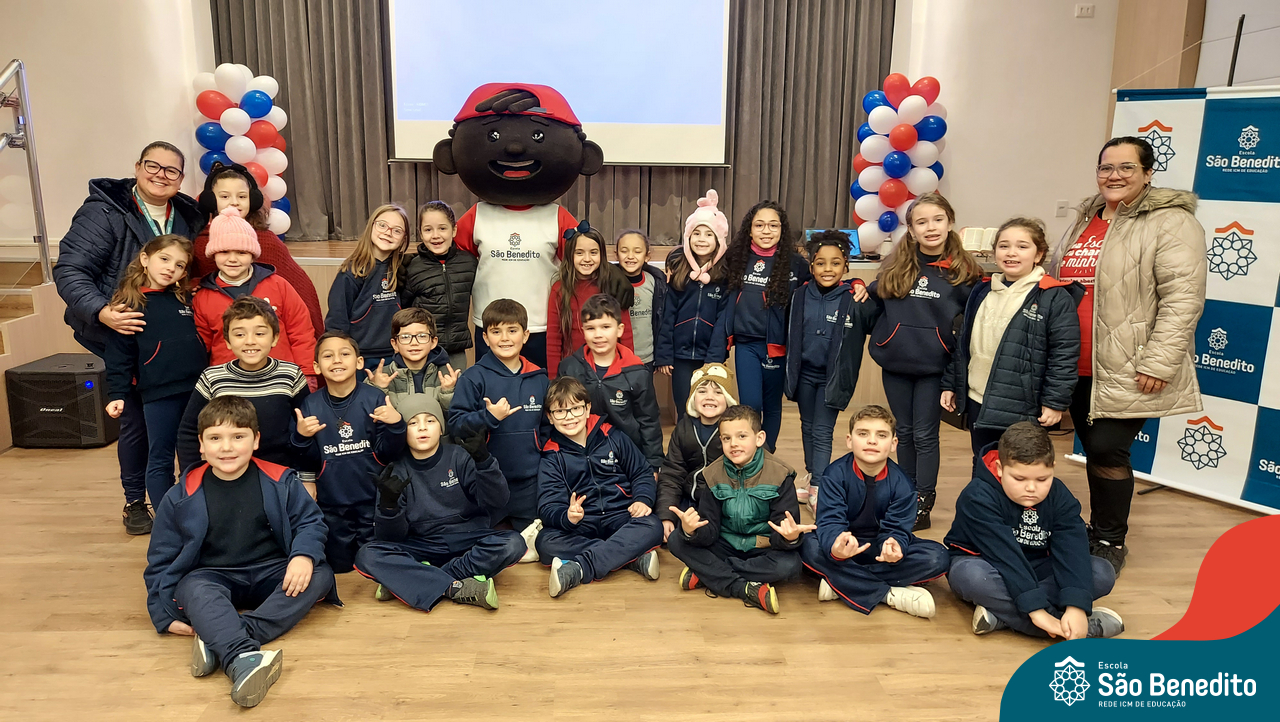 Dentre as atividades, vivemos a Hora da Pastoral com a Coord. de Pastoral, Filomena, que abordou a importância da amizade através de cantinhos e coreografias, e apresentou o amigão dos estudantes do São Benedito, o mascote Bene, que teve sua estreia em 17 de julho. As crianças também assistiram uma peça de teatro, que foi preparada com muito carinho pela equipe da Hora do Conto, “Tia Rosinha e seus Amigos”, que trouxe a adaptação do clássico infantil, Chapeuzinho Vermelho, de forma inédita, relacionando a leitura e a amizade. Para que esses dois momentos valiosos se tornassem ainda mais extraordinários, os estudantes das turmas de 1º a 4º Ano, que são amigos de toda a escola, participaram como convidados mais que especiais!