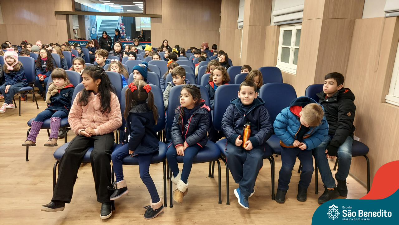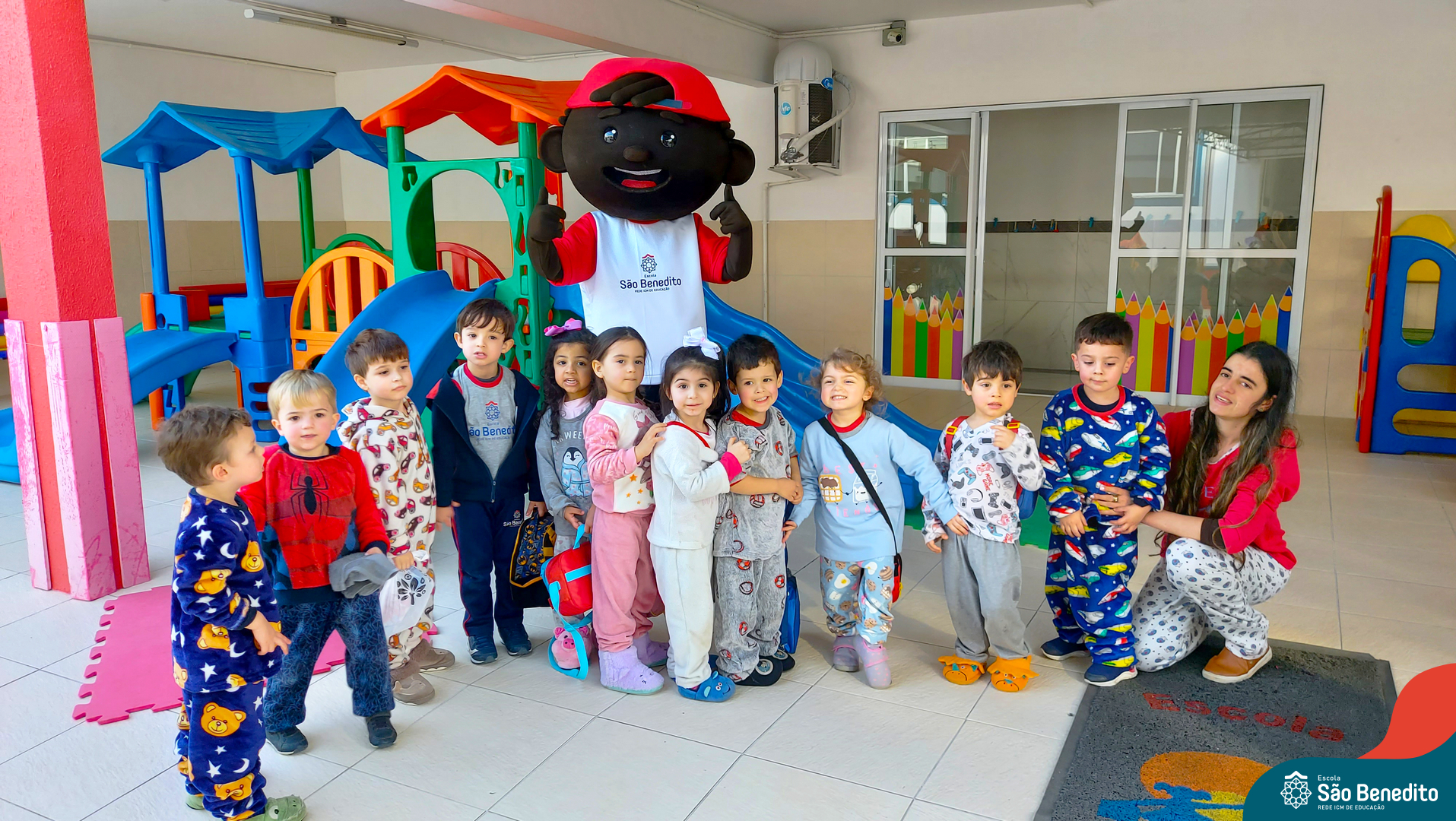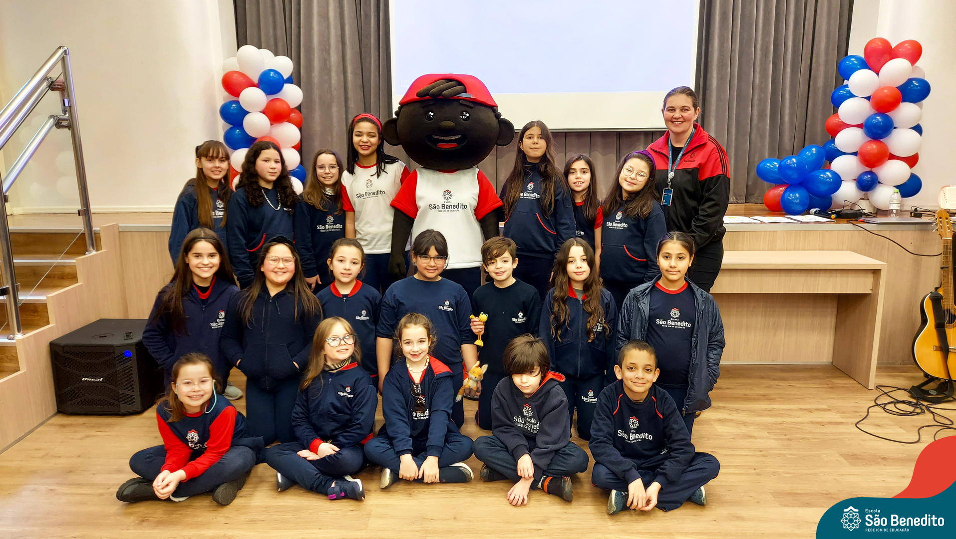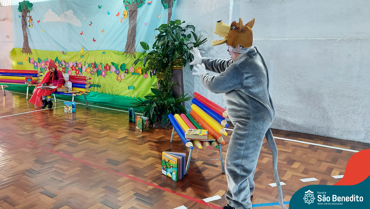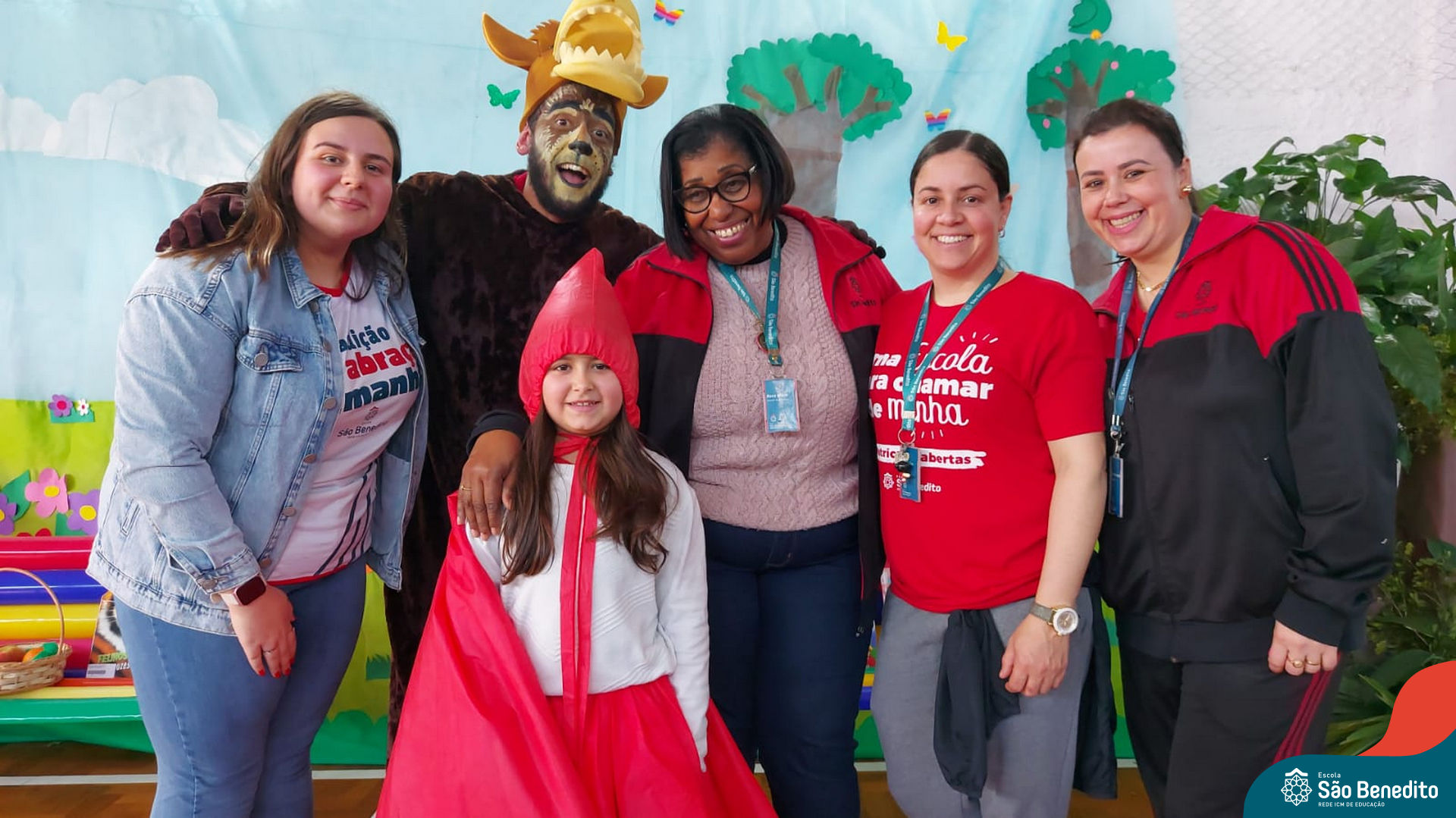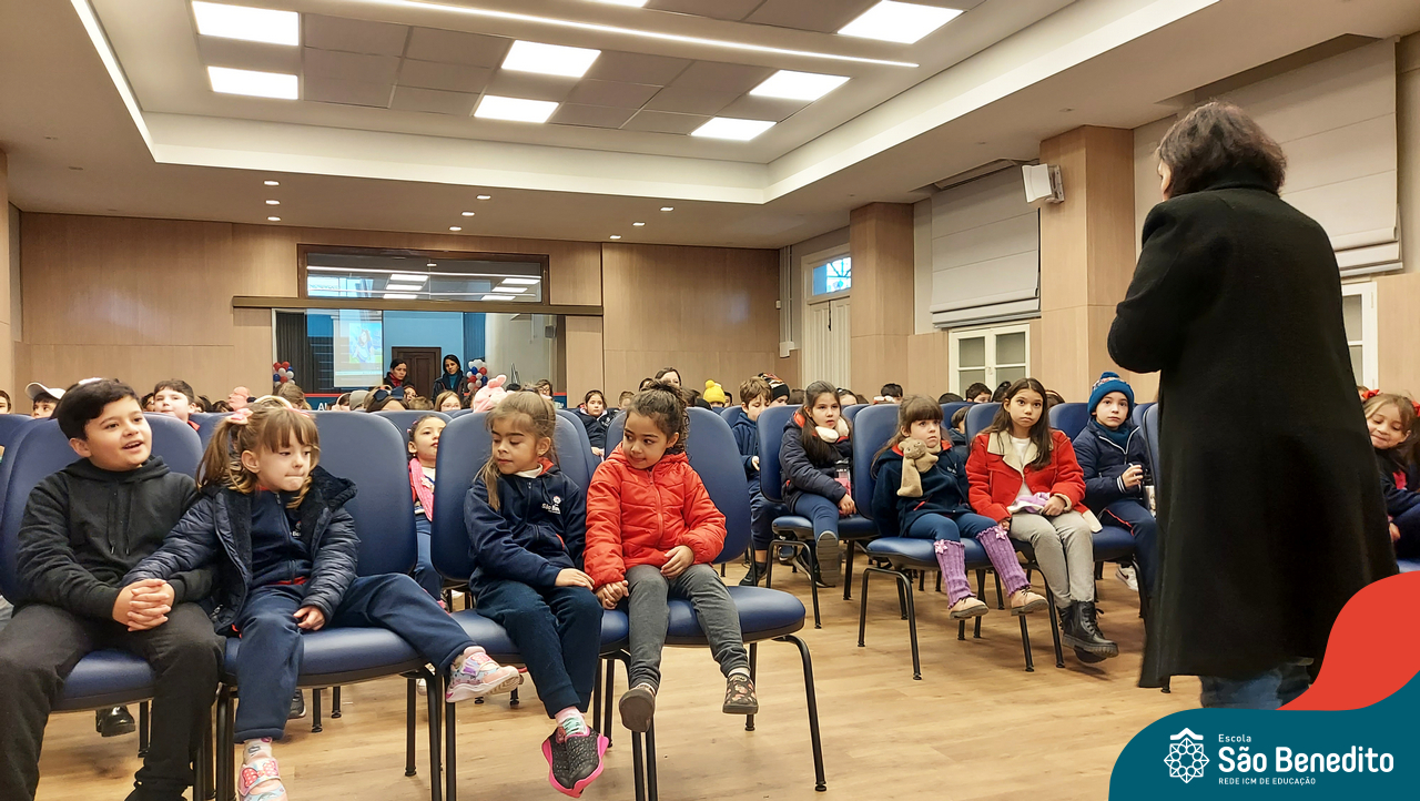 Dentre as atividades, vivemos a Hora da Pastoral com a Coord. de Pastoral, Filomena, que abordou a importância da amizade através de cantinhos e coreografias, e apresentou o amigão dos estudantes do São Benedito, o mascote Bene, que teve sua estreia em 17 de julho. As crianças também assistiram uma peça de teatro, que foi preparada com muito carinho pela equipe da Hora do Conto, “Tia Rosinha e seus Amigos”, que trouxe a adaptação do clássico infantil, Chapeuzinho Vermelho, de forma inédita, relacionando a leitura e a amizade. Para que esses dois momentos valiosos se tornassem ainda mais extraordinários, os estudantes das turmas de 1º a 4º Ano, que são amigos de toda a escola, participaram como convidados mais que especiais!