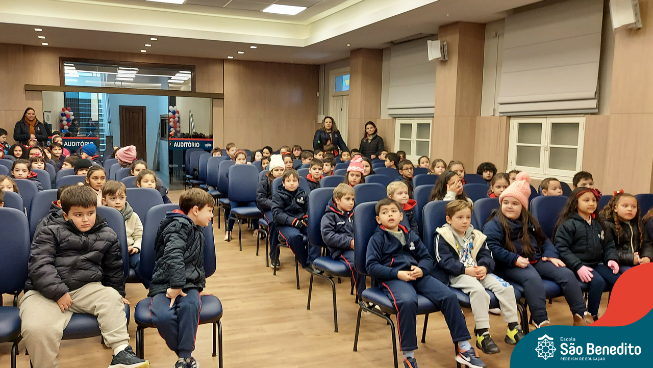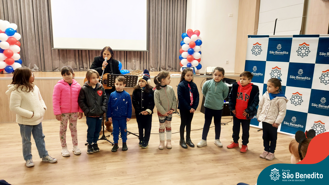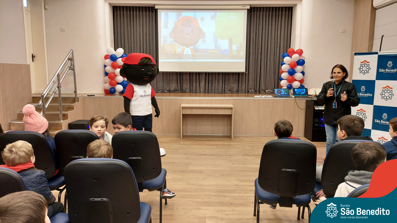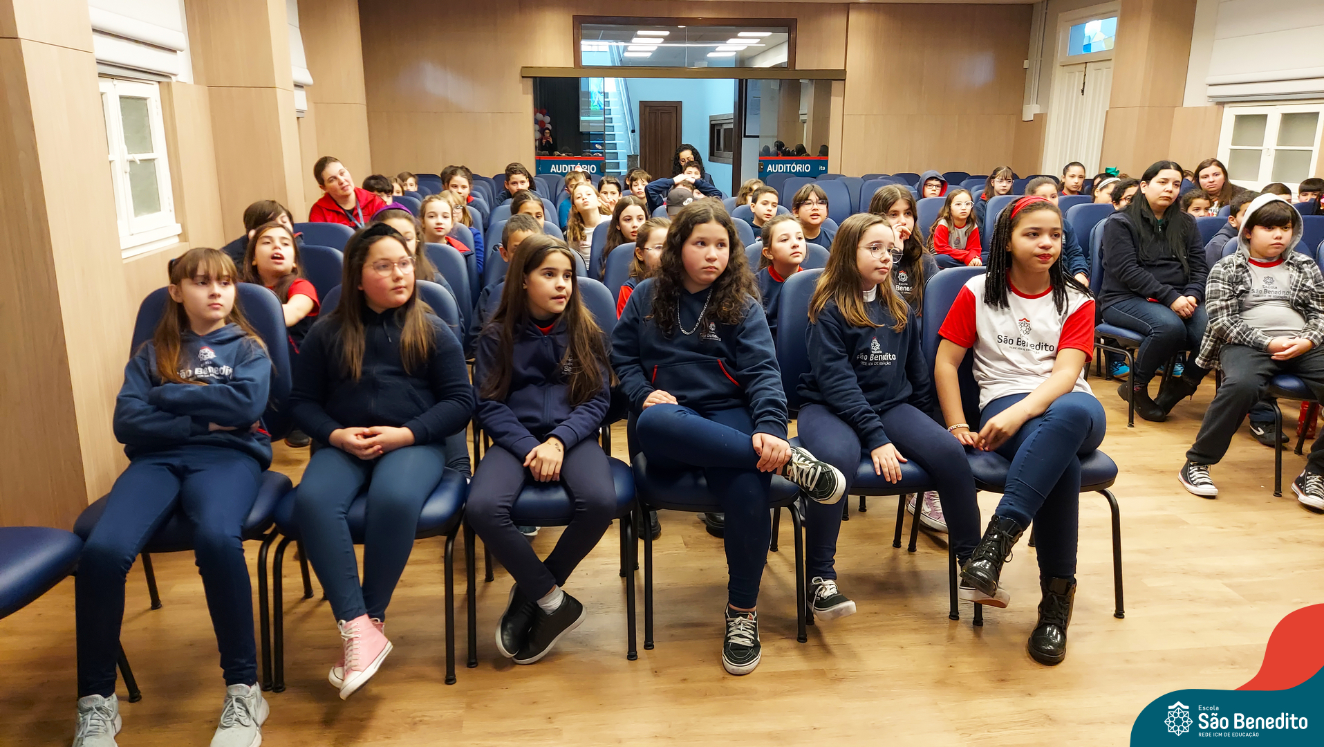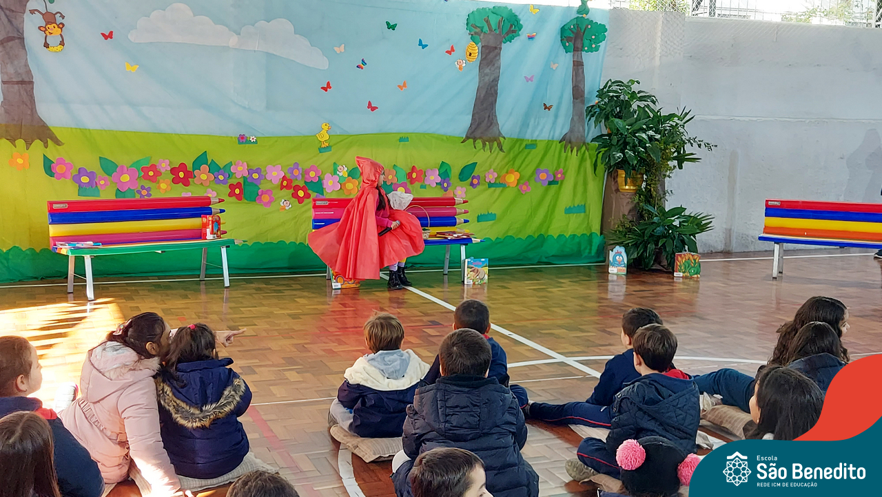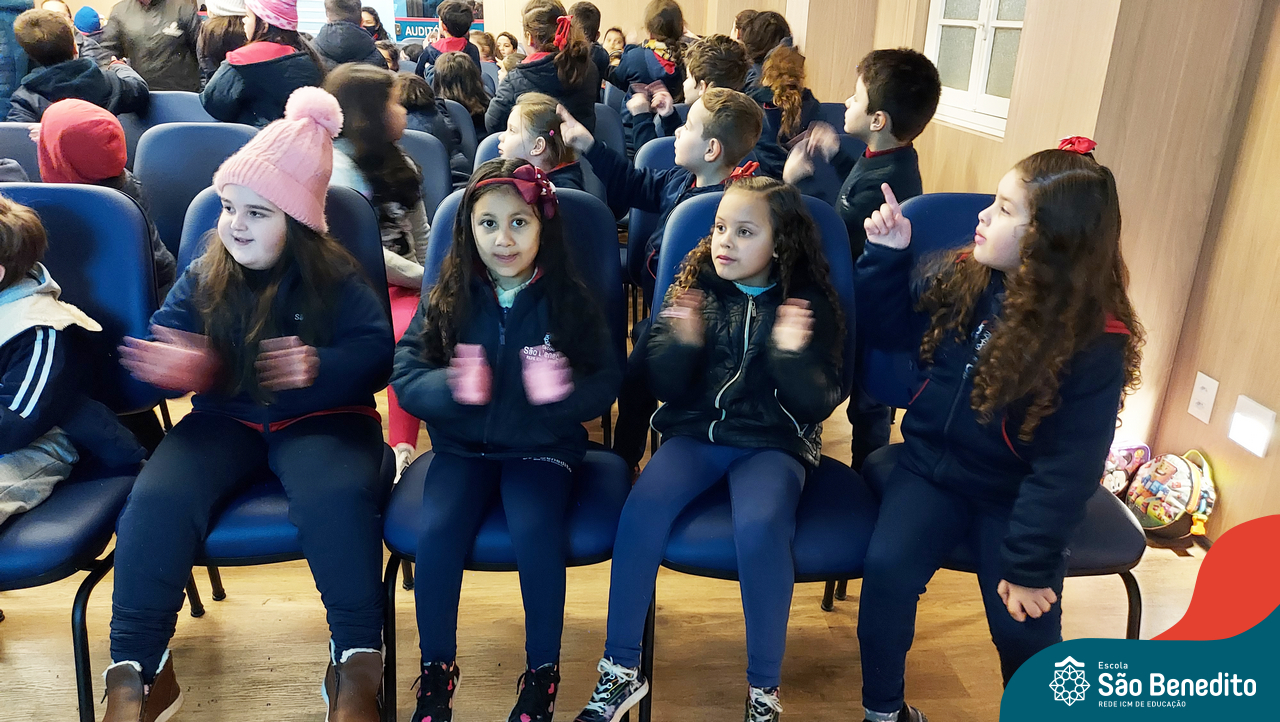 Dentre as atividades, vivemos a Hora da Pastoral com a Coord. de Pastoral, Filomena, que abordou a importância da amizade através de cantinhos e coreografias, e apresentou o amigão dos estudantes do São Benedito, o mascote Bene, que teve sua estreia em 17 de julho. As crianças também assistiram uma peça de teatro, que foi preparada com muito carinho pela equipe da Hora do Conto, “Tia Rosinha e seus Amigos”, que trouxe a adaptação do clássico infantil, Chapeuzinho Vermelho, de forma inédita, relacionando a leitura e a amizade. Para que esses dois momentos valiosos se tornassem ainda mais extraordinários, os estudantes das turmas de 1º a 4º Ano, que são amigos de toda a escola, participaram como convidados mais que especiais!