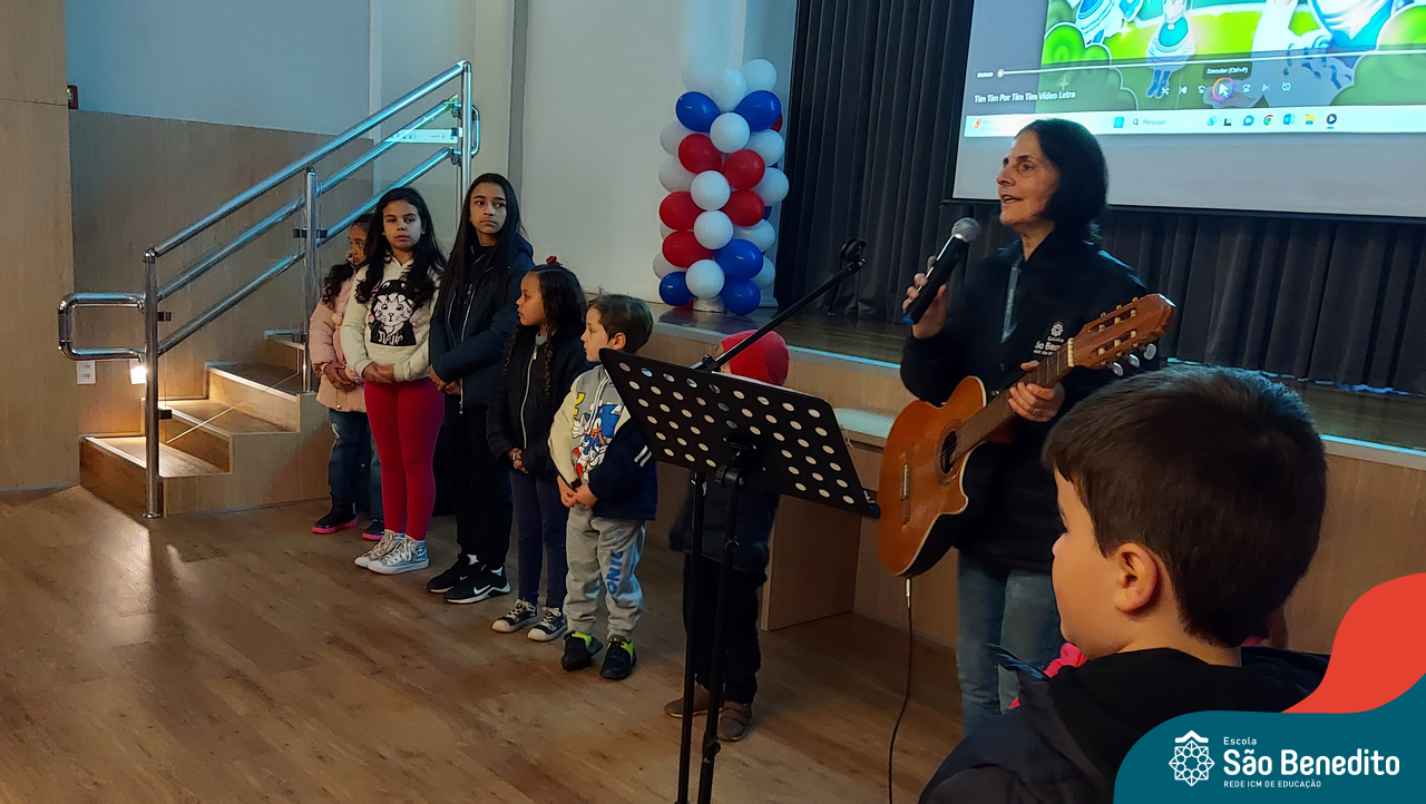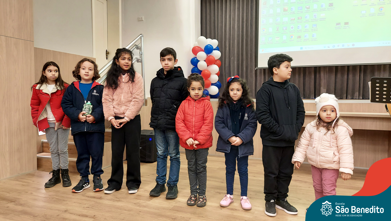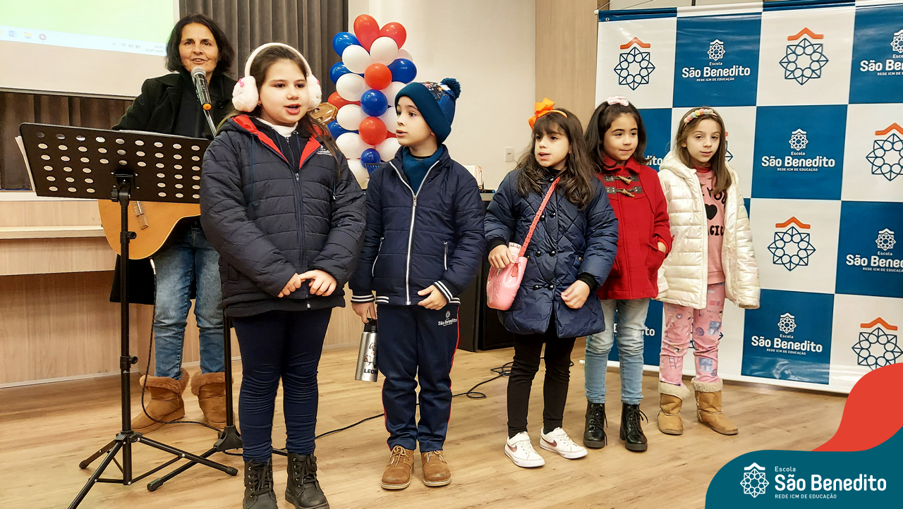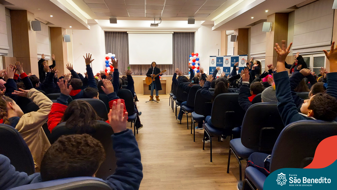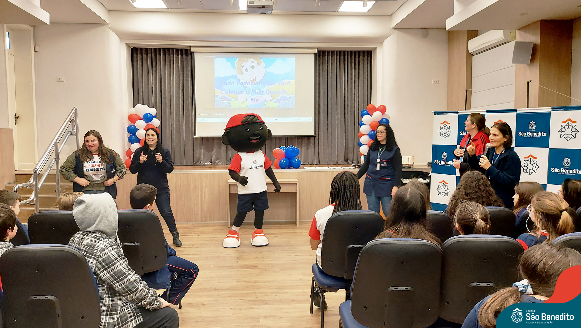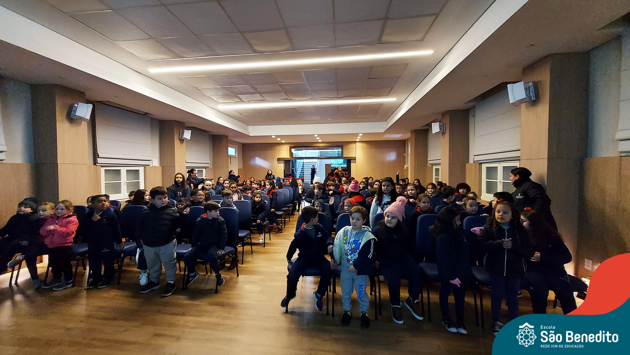 Dentre as atividades, vivemos a Hora da Pastoral com a Coord. de Pastoral, Filomena, que abordou a importância da amizade através de cantinhos e coreografias, e apresentou o amigão dos estudantes do São Benedito, o mascote Bene, que teve sua estreia em 17 de julho. As crianças também assistiram uma peça de teatro, que foi preparada com muito carinho pela equipe da Hora do Conto, “Tia Rosinha e seus Amigos”, que trouxe a adaptação do clássico infantil, Chapeuzinho Vermelho, de forma inédita, relacionando a leitura e a amizade. Para que esses dois momentos valiosos se tornassem ainda mais extraordinários, os estudantes das turmas de 1º a 4º Ano, que são amigos de toda a escola, participaram como convidados mais que especiais!