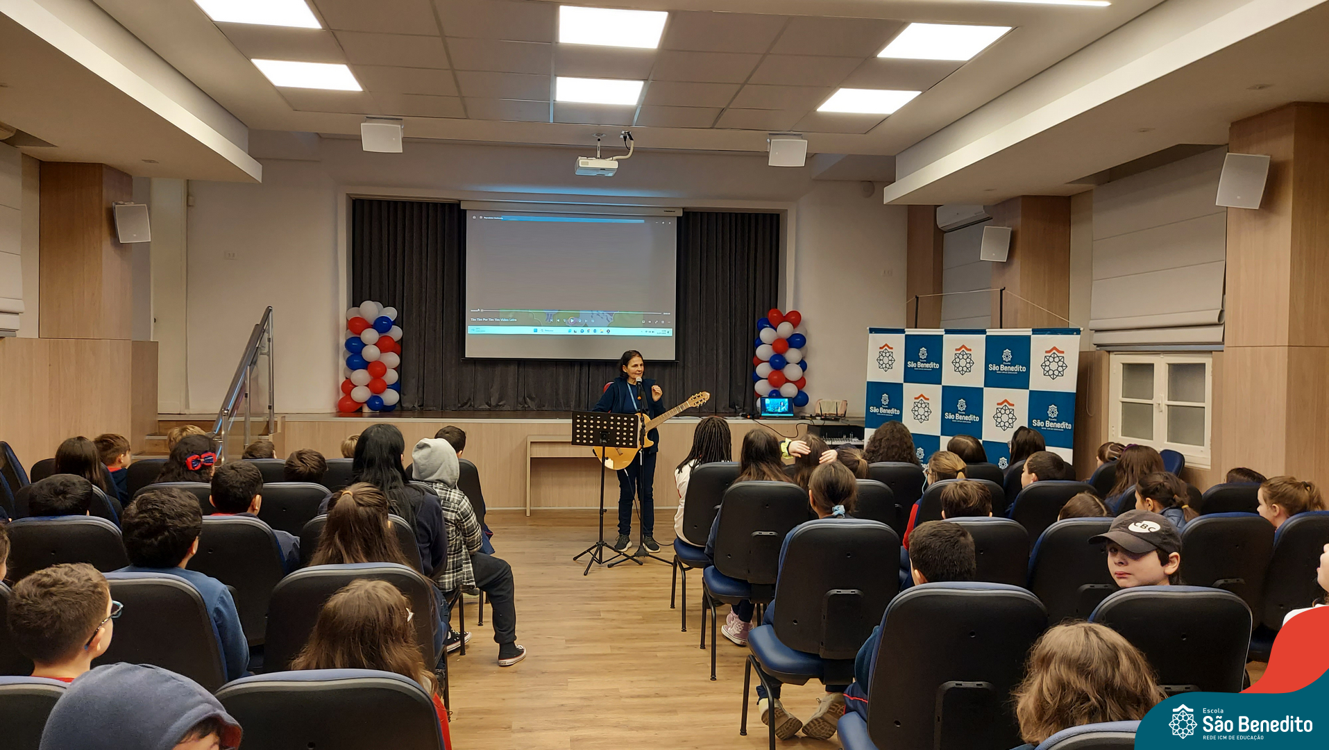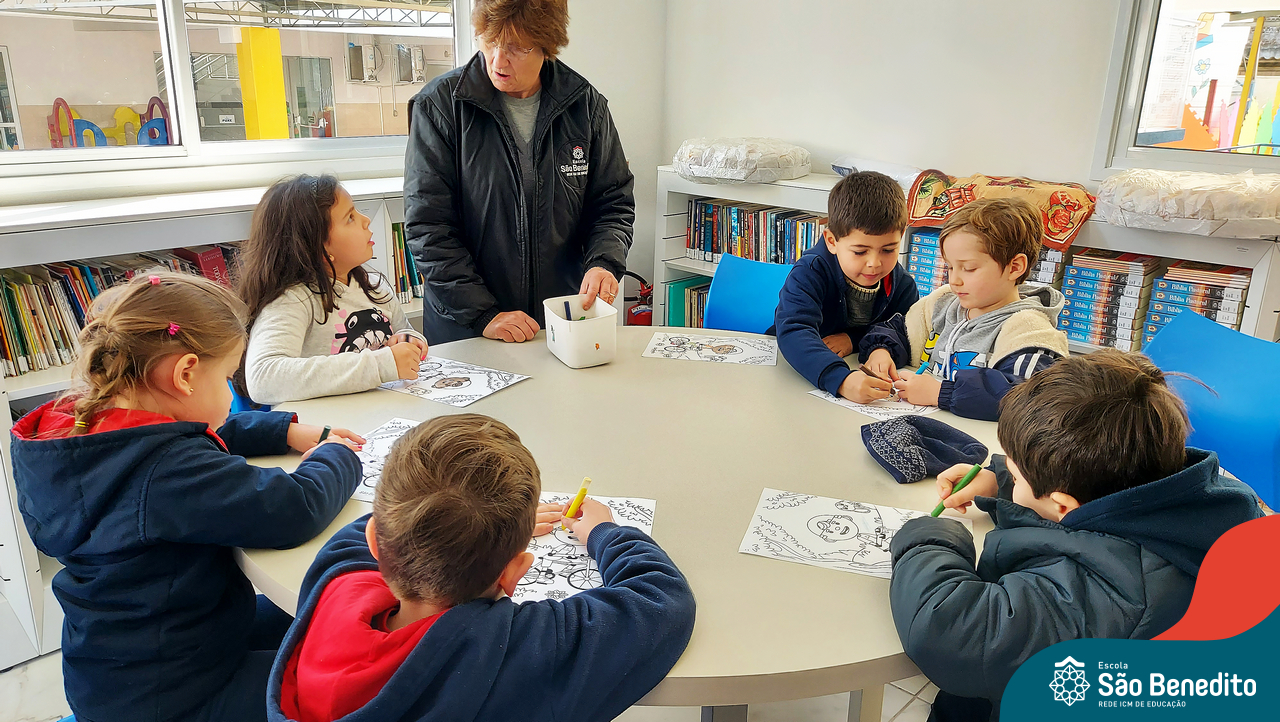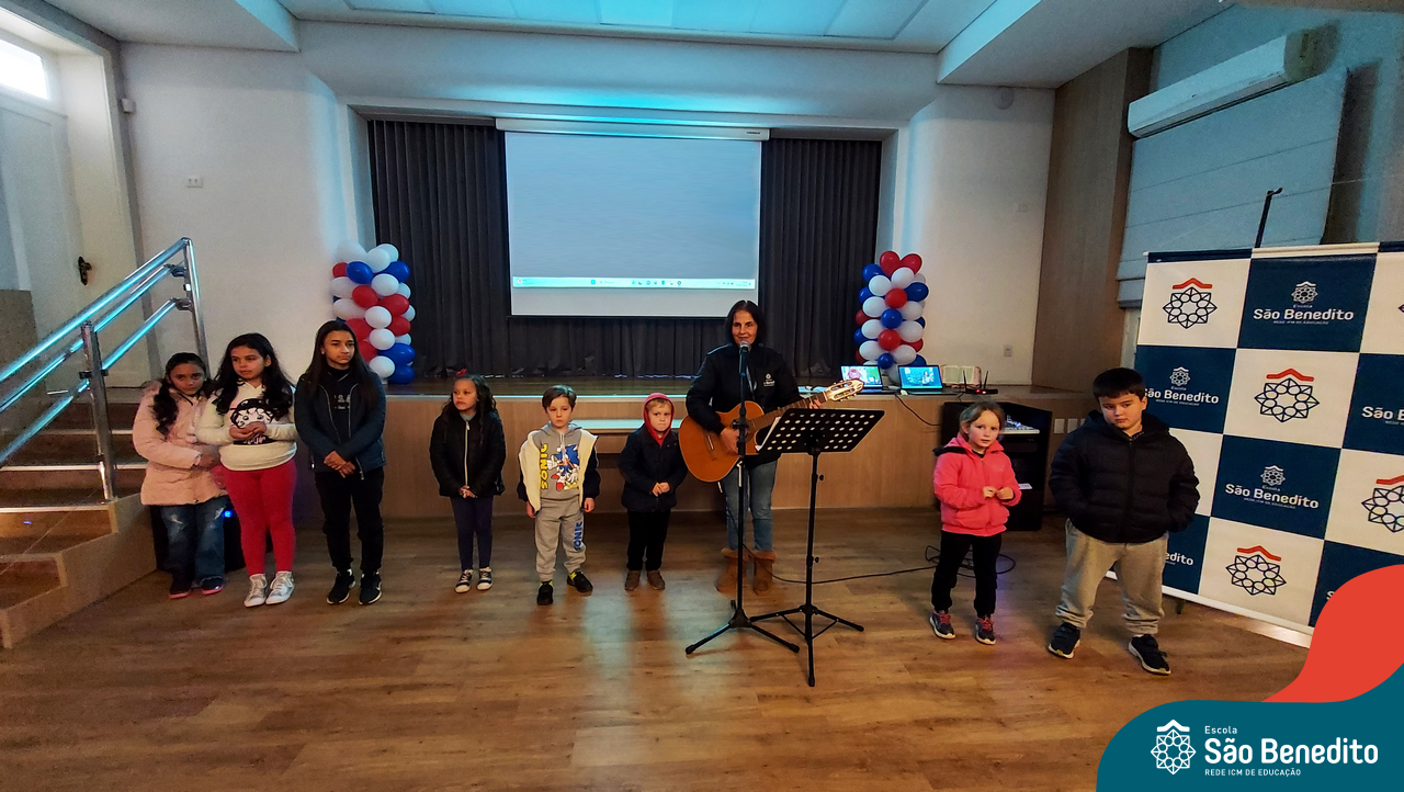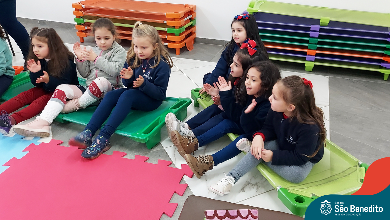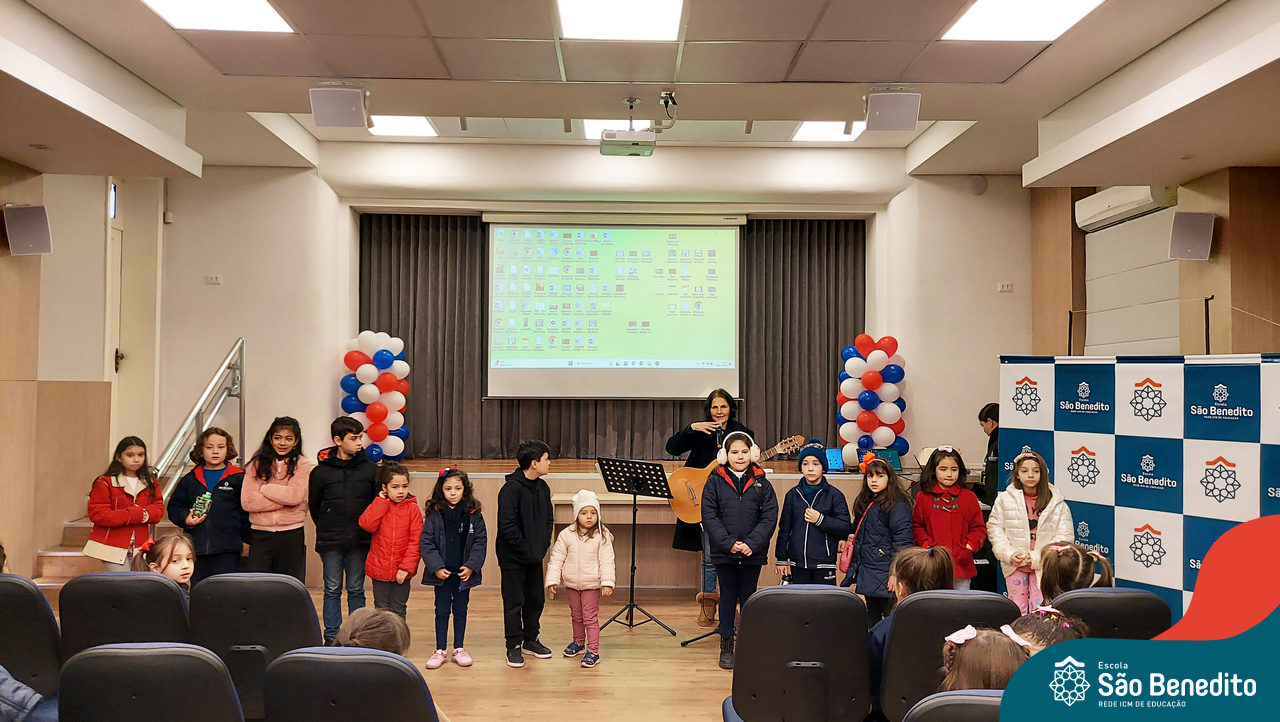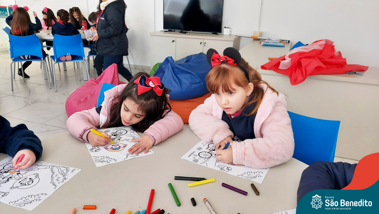 Dentre as atividades, vivemos a Hora da Pastoral com a Coord. de Pastoral, Filomena, que abordou a importância da amizade através de cantinhos e coreografias, e apresentou o amigão dos estudantes do São Benedito, o mascote Bene, que teve sua estreia em 17 de julho. As crianças também assistiram uma peça de teatro, que foi preparada com muito carinho pela equipe da Hora do Conto, “Tia Rosinha e seus Amigos”, que trouxe a adaptação do clássico infantil, Chapeuzinho Vermelho, de forma inédita, relacionando a leitura e a amizade. Para que esses dois momentos valiosos se tornassem ainda mais extraordinários, os estudantes das turmas de 1º a 4º Ano, que são amigos de toda a escola, participaram como convidados mais que especiais!