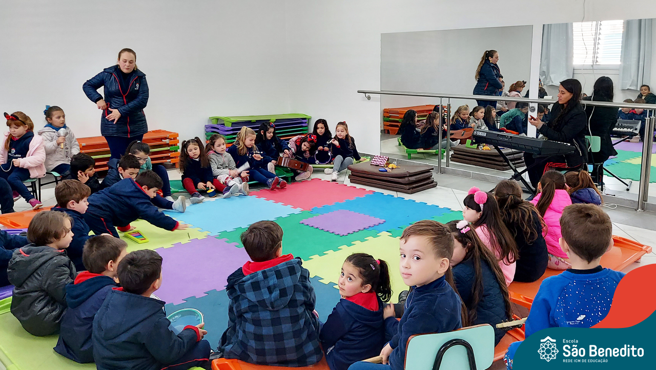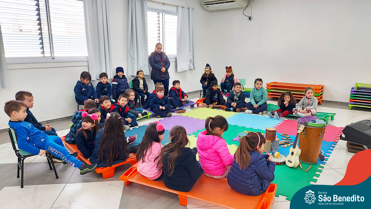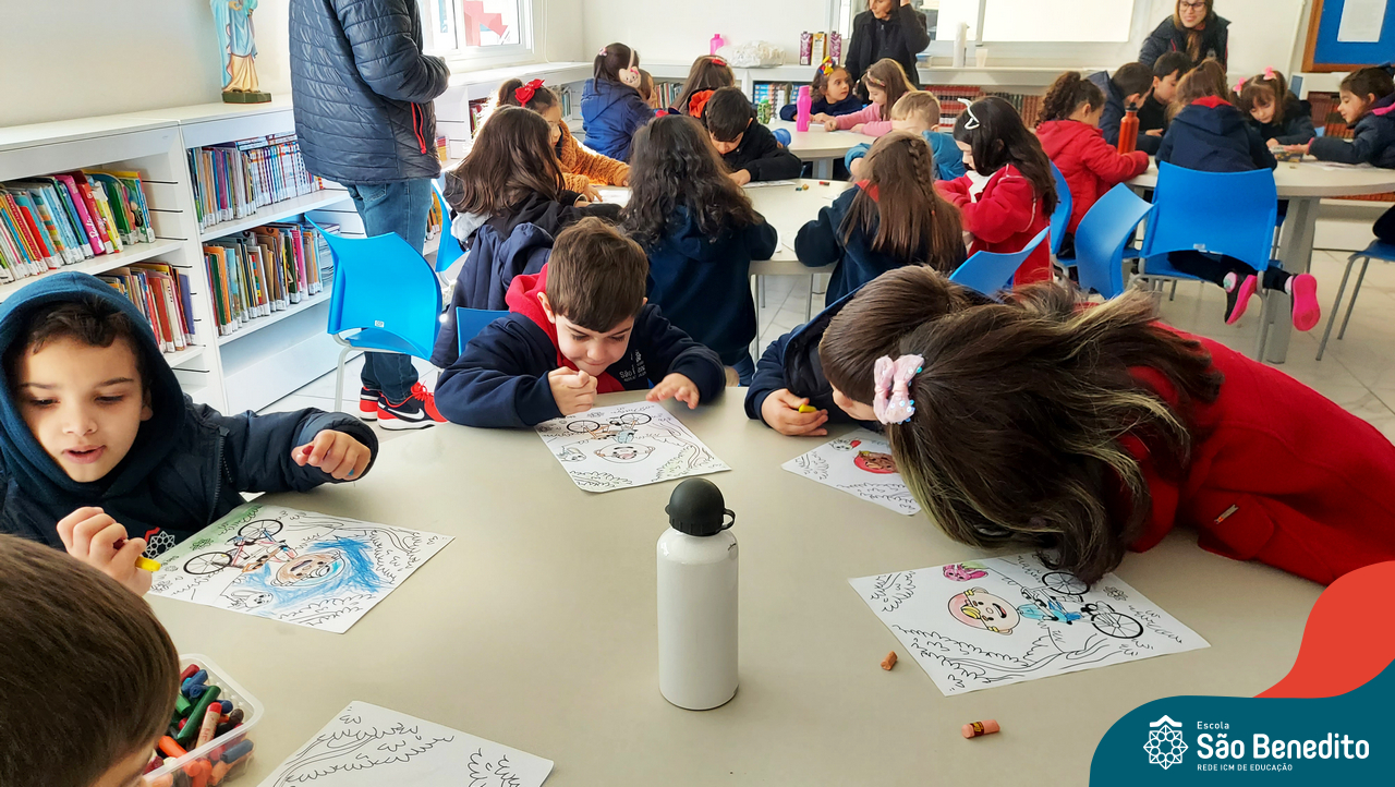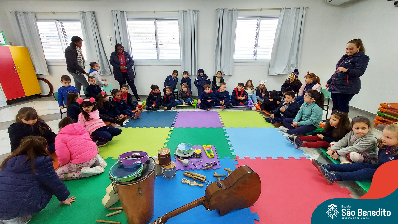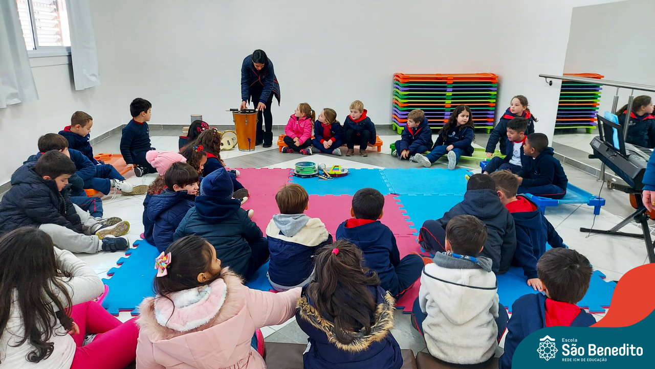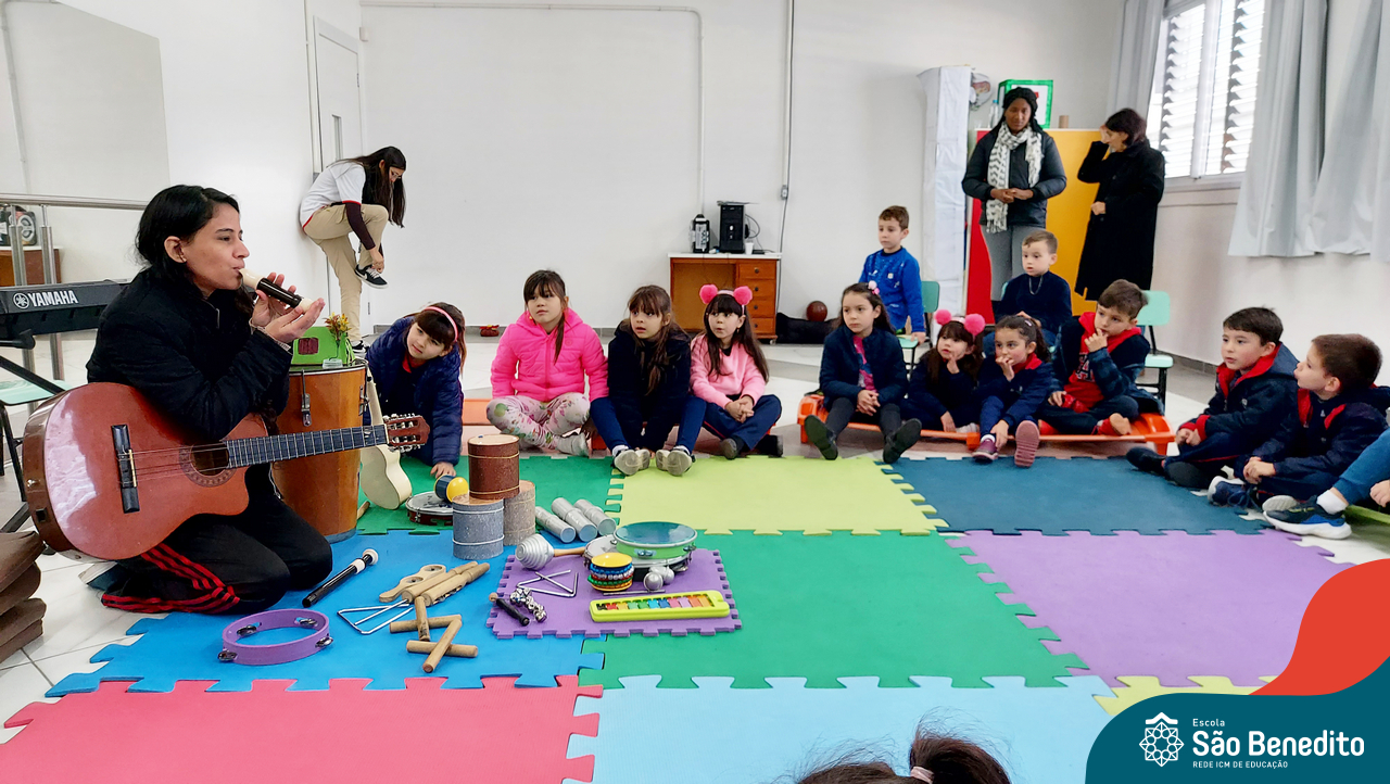 Além disso, as crianças puderam pintar o desenho do novo amigo Bene, que fez alusão ao incentivo da prática de esportes e da vida saudável, e dar aquela paradinha para descansar e fazer um lanchinho para recarregar as baterias para os próximos destinos dessa tarde cheia de aventuras: uma aula de música cheia de alegria, com a professora Lidiane, e direito à experimentação de diferentes instrumentos musicais; um circuito divertidíssimo, montado pela professora de Educação Física, Ane; e brincadeiras na sala de jogos digitais, com ajuda do TI Maiko.