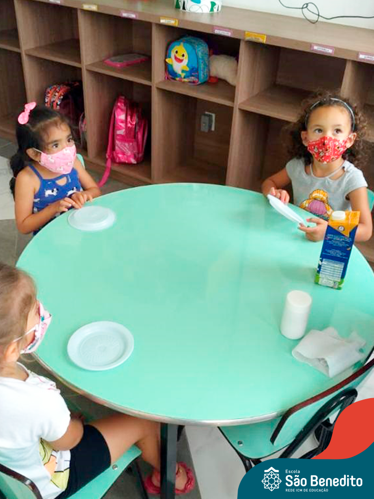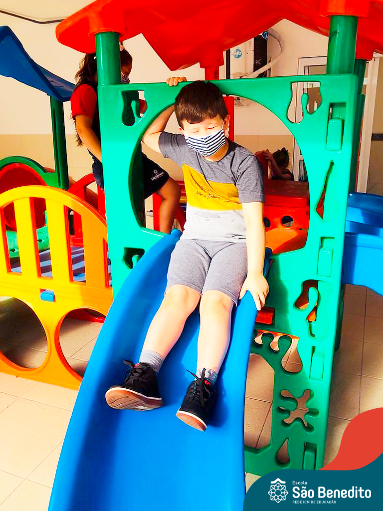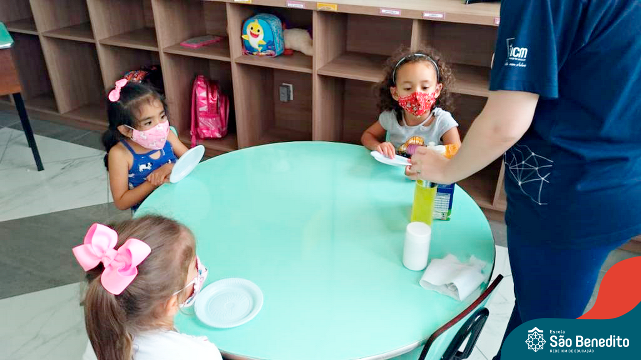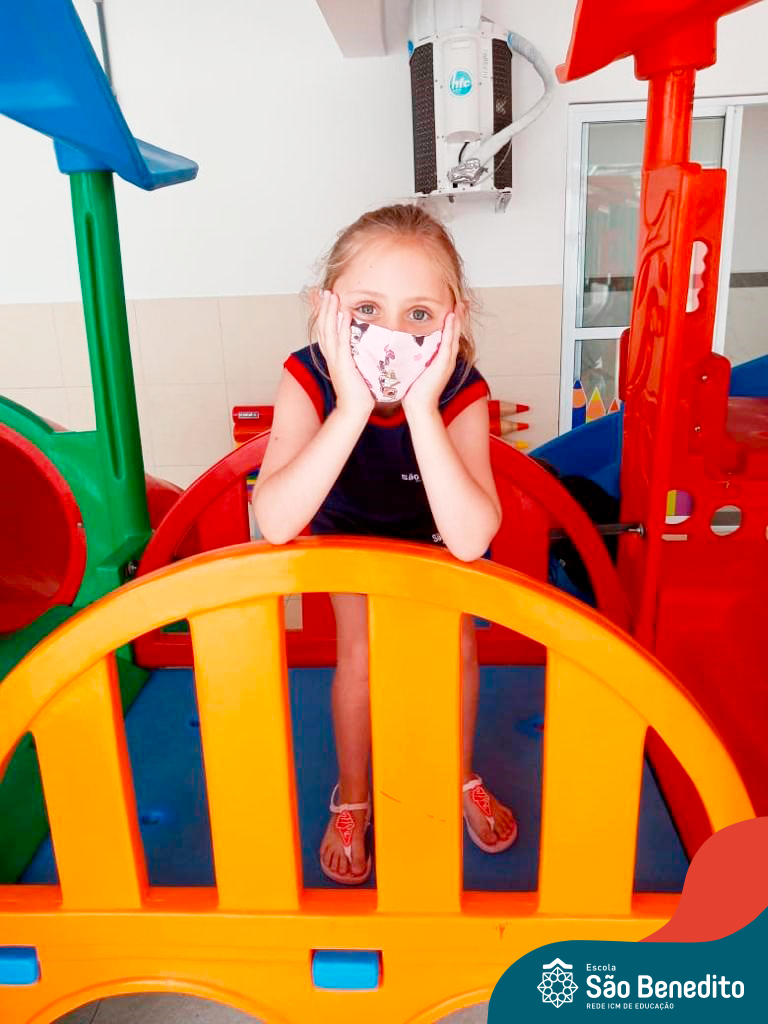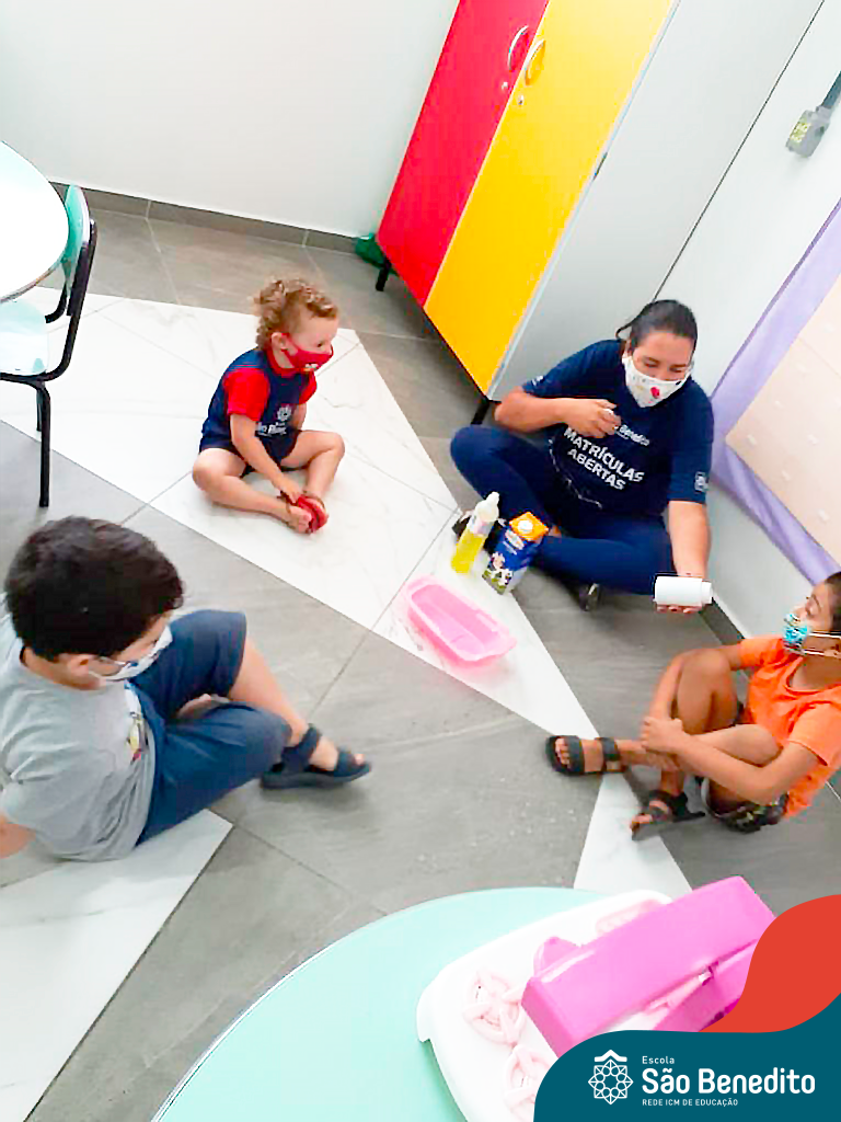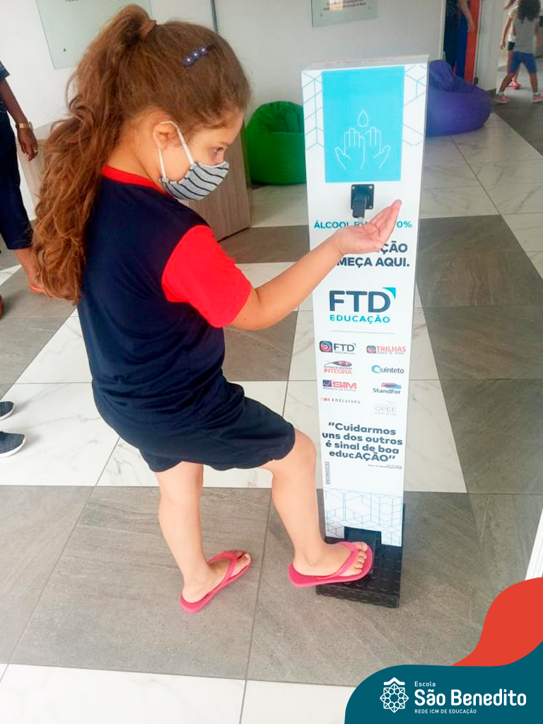 Os alunos foram orientados sobre todos os procedimentos através de atividades lúdicas, e realizaram todos os passos necessários para garantir a segurança e saúde de todos. Contamos com equipamentos de medição de temperatura – ação que, é necessária para que o aluno possa entrar na Escola, tapetes sanitizantes para a limpeza eficaz dos sapatos, totens de álcool distribuídos pela Escola (e também frascos nas salas de aula), sinalização por todo o prédio, e também, monitores, que reforçam a segurança a todo momento.