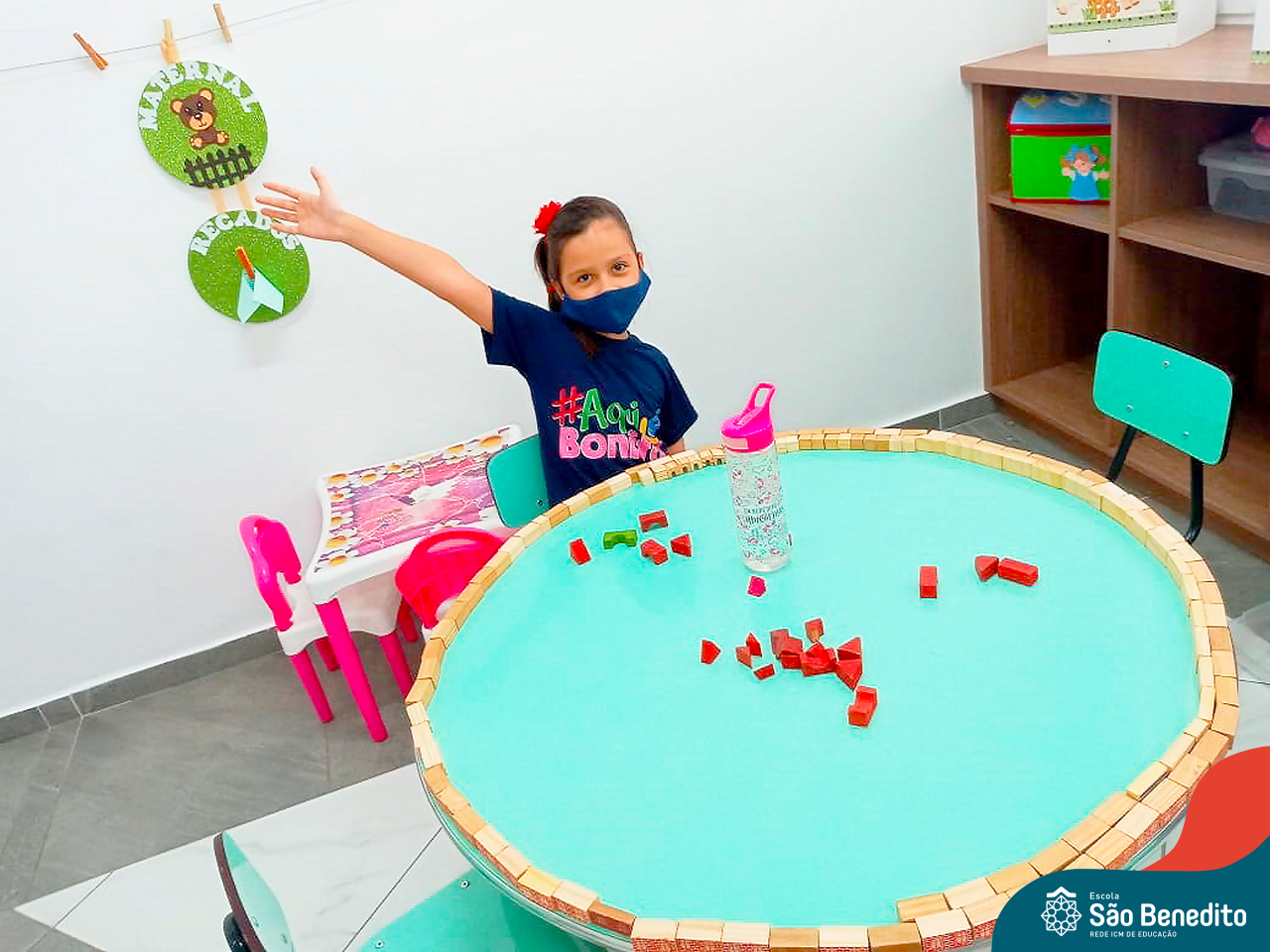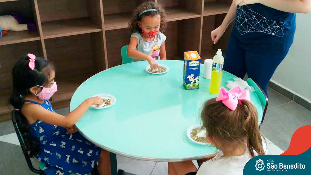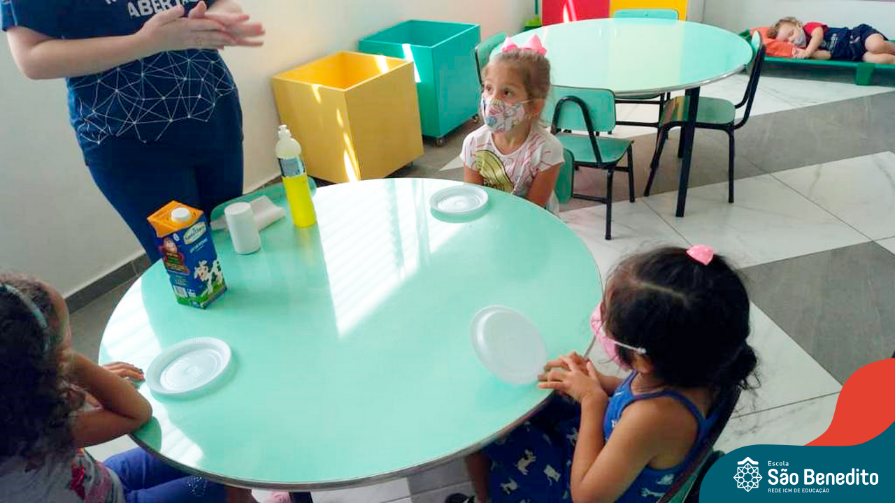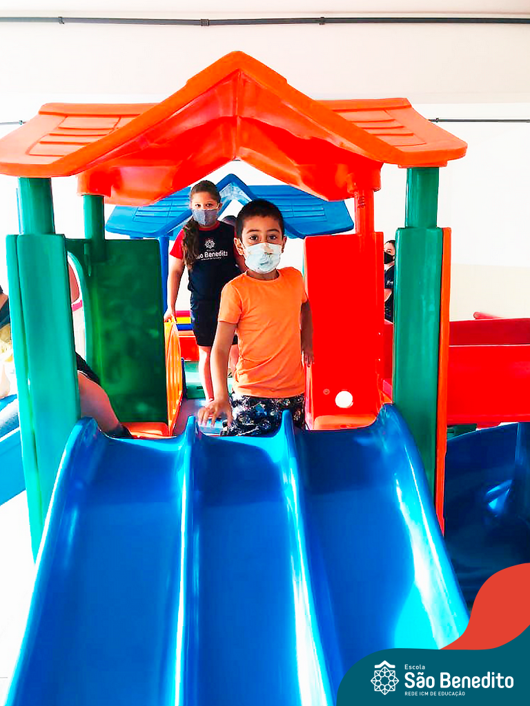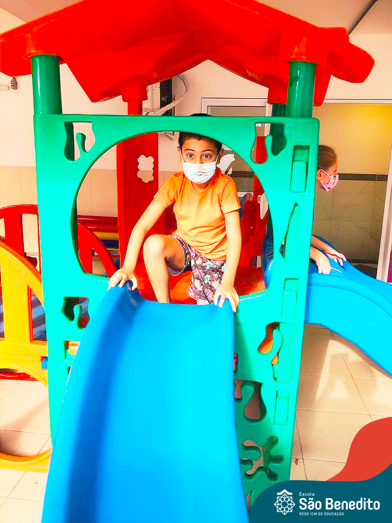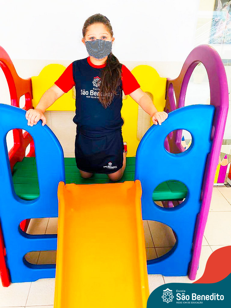 Os alunos foram orientados sobre todos os procedimentos através de atividades lúdicas, e realizaram todos os passos necessários para garantir a segurança e saúde de todos. Contamos com equipamentos de medição de temperatura – ação que, é necessária para que o aluno possa entrar na Escola, tapetes sanitizantes para a limpeza eficaz dos sapatos, totens de álcool distribuídos pela Escola (e também frascos nas salas de aula), sinalização por todo o prédio, e também, monitores, que reforçam a segurança a todo momento.