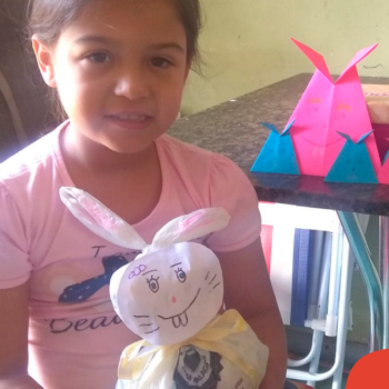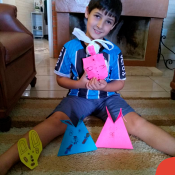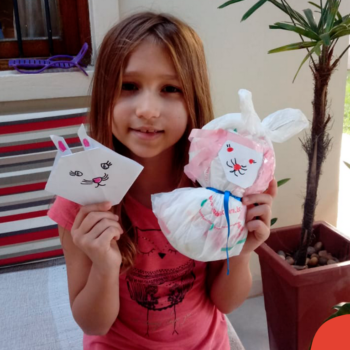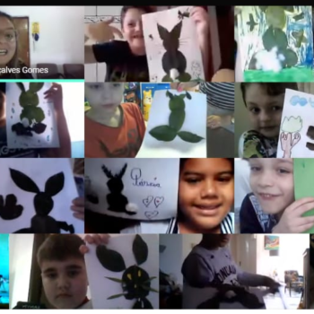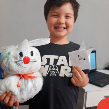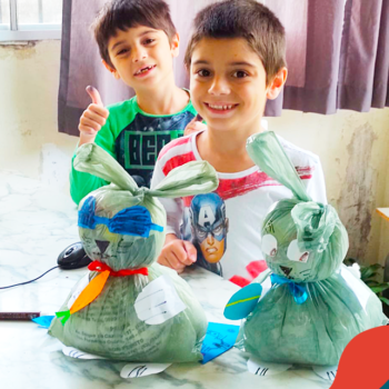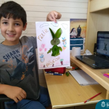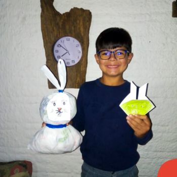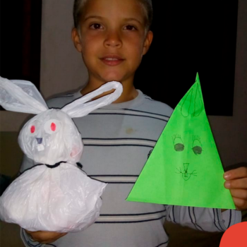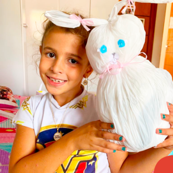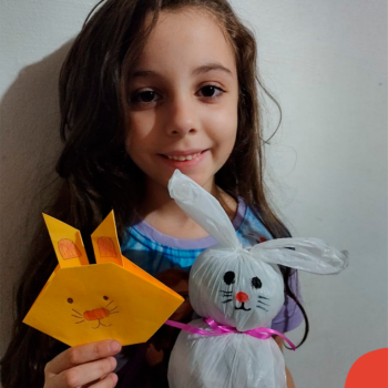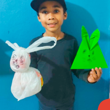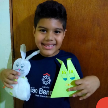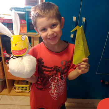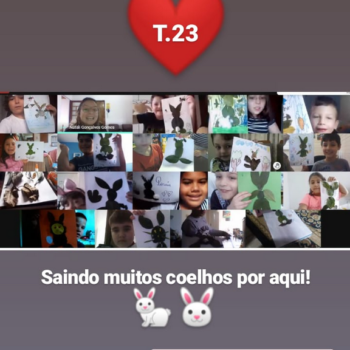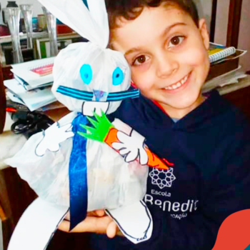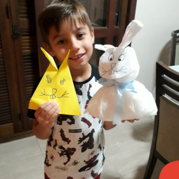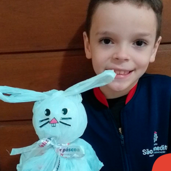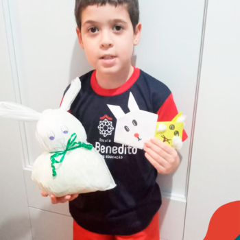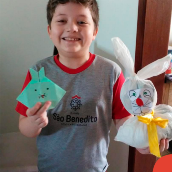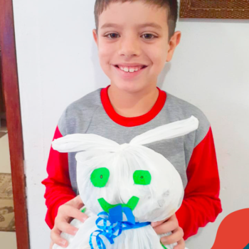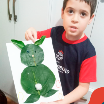 Alguns alunos utilizaram folhas coloridas, outros folhas caídas de árvore. E, ainda tiveram aqueles que optaram por construir um coelhinho com sacolas! É isso mesmo, com sacolas! A atividade, além de trazer muita cor e diversão, promoveu a reutilização de itens que levam anos para se decompor na natureza e ficam esquecidos, poluindo e não sendo utilizados. Confira as fotos: