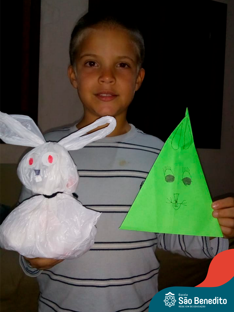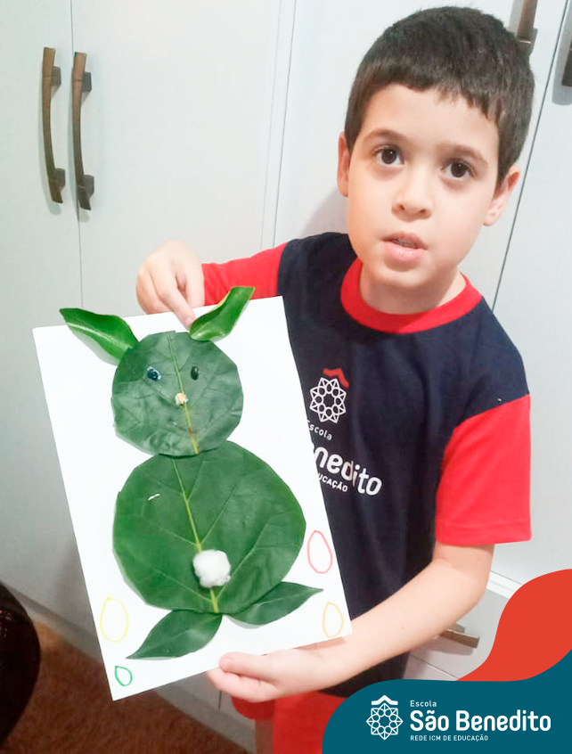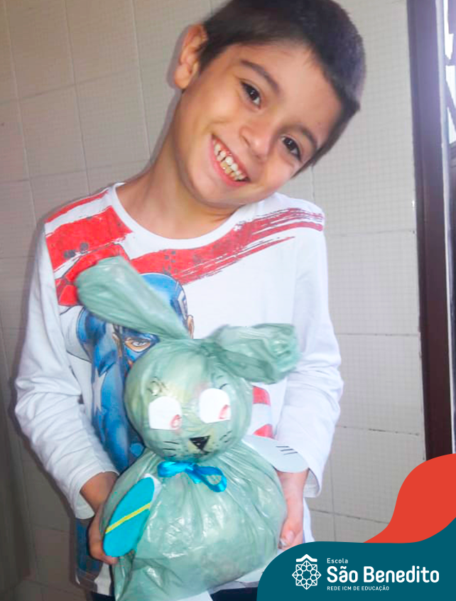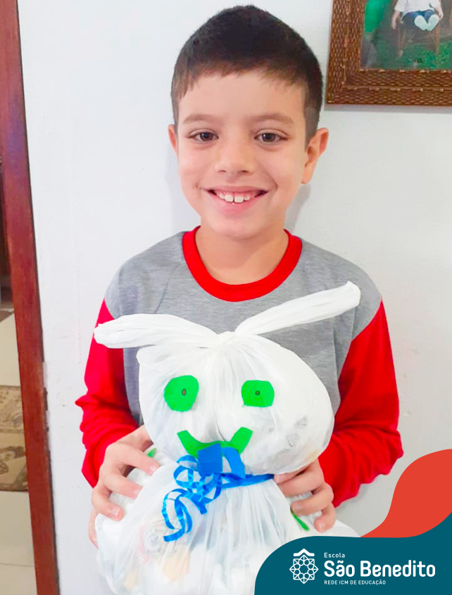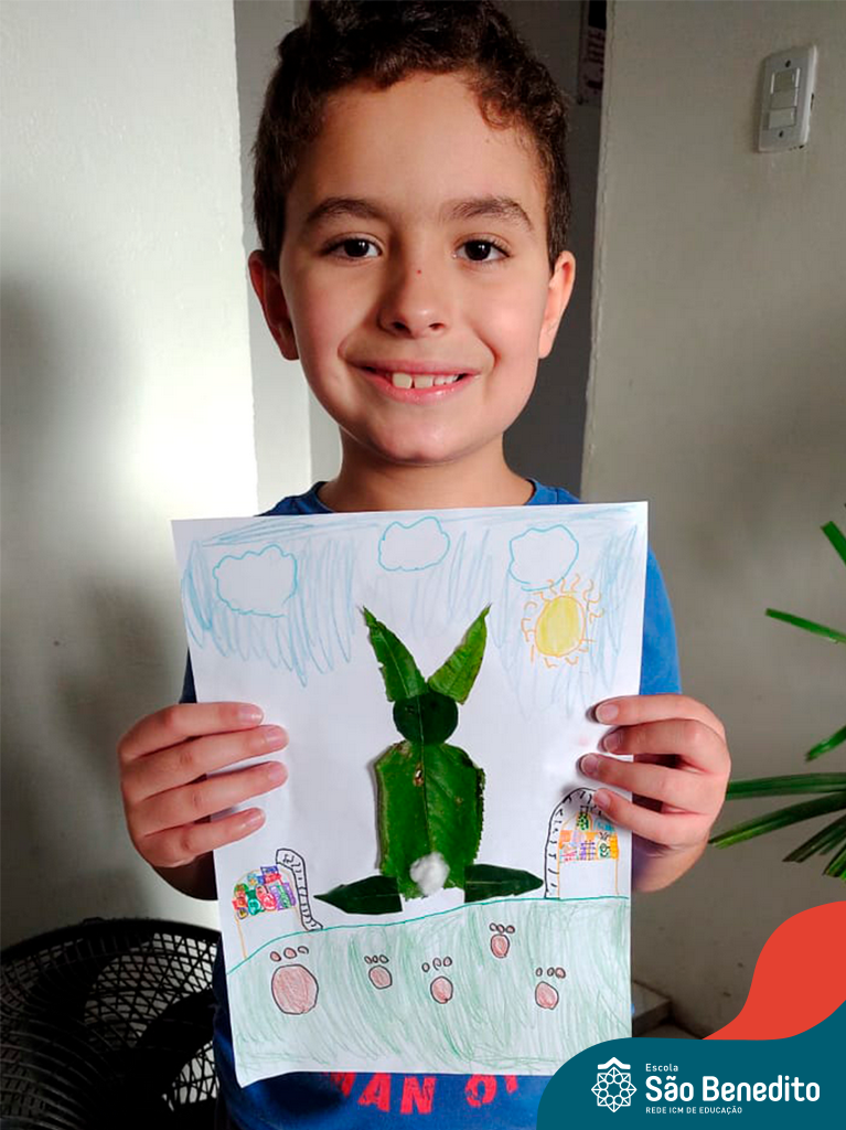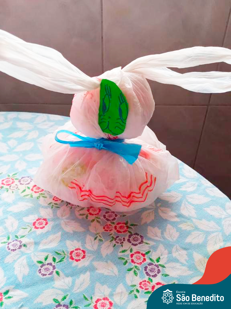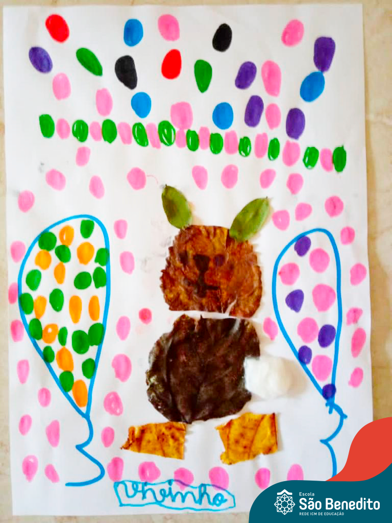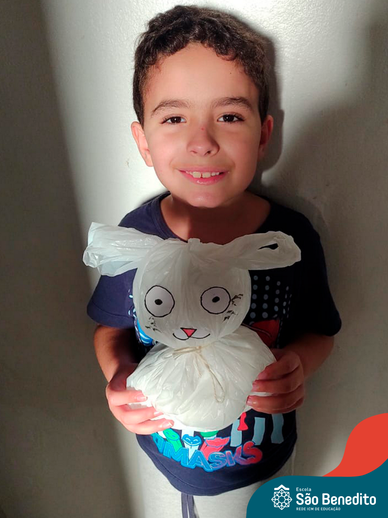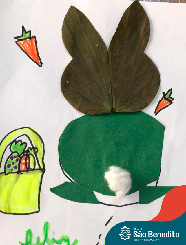 Alguns alunos utilizaram folhas coloridas, outros folhas caídas de árvore. E, ainda tiveram aqueles que optaram por construir um coelhinho com sacolas! É isso mesmo, com sacolas! A atividade, além de trazer muita cor e diversão, promoveu a reutilização de itens que levam anos para se decompor na natureza e ficam esquecidos, poluindo e não sendo utilizados. Confira as fotos: