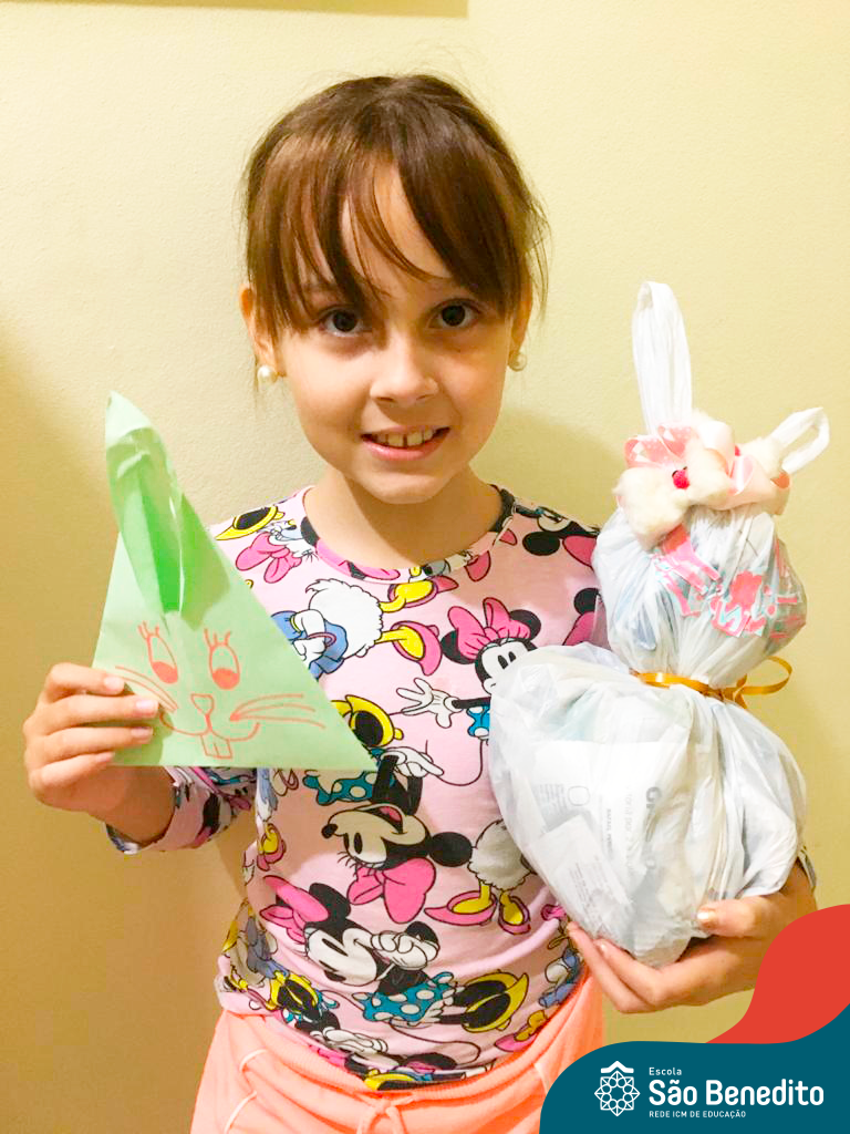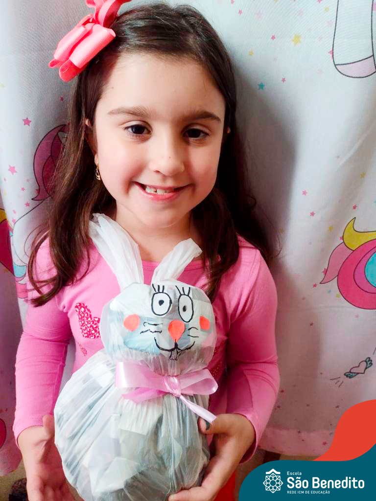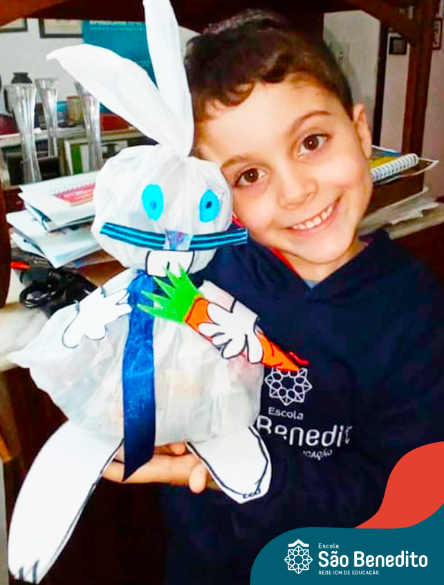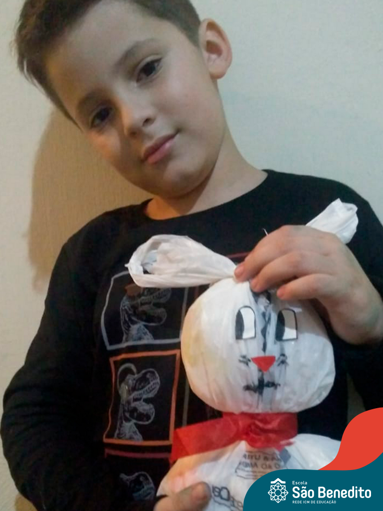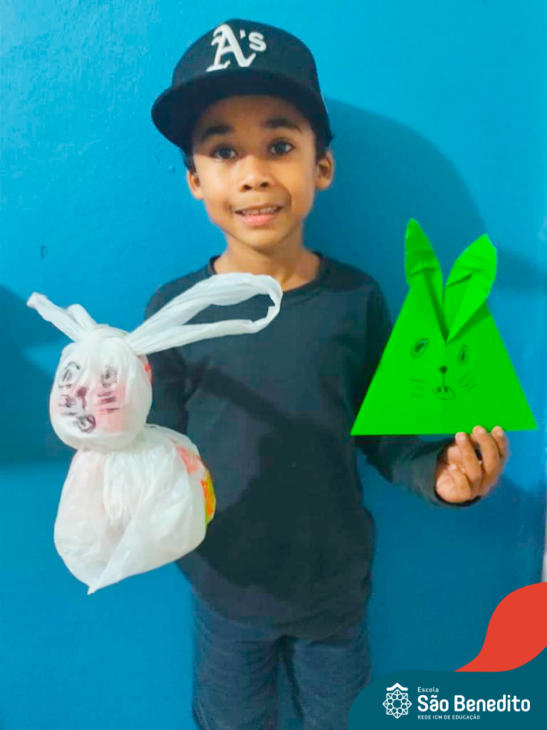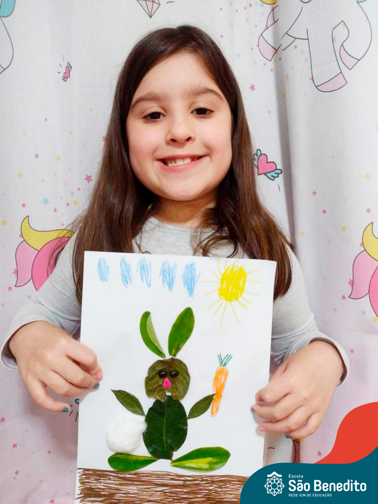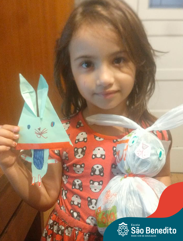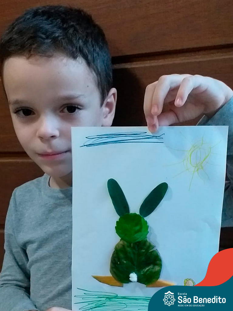 Alguns alunos utilizaram folhas coloridas, outros folhas caídas de árvore. E, ainda tiveram aqueles que optaram por construir um coelhinho com sacolas! É isso mesmo, com sacolas! A atividade, além de trazer muita cor e diversão, promoveu a reutilização de itens que levam anos para se decompor na natureza e ficam esquecidos, poluindo e não sendo utilizados. Confira as fotos:
