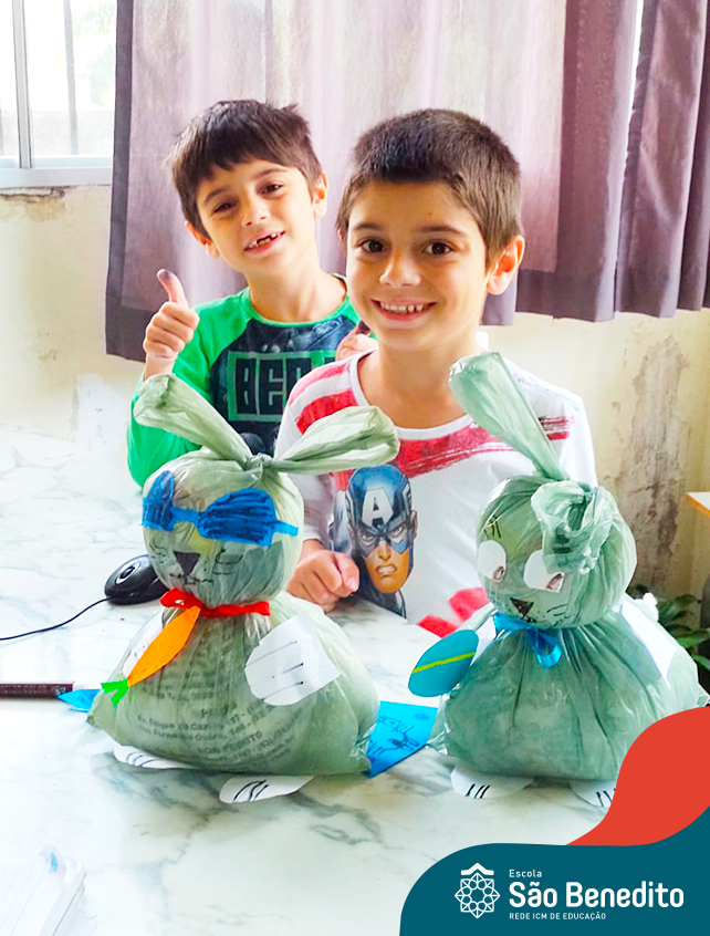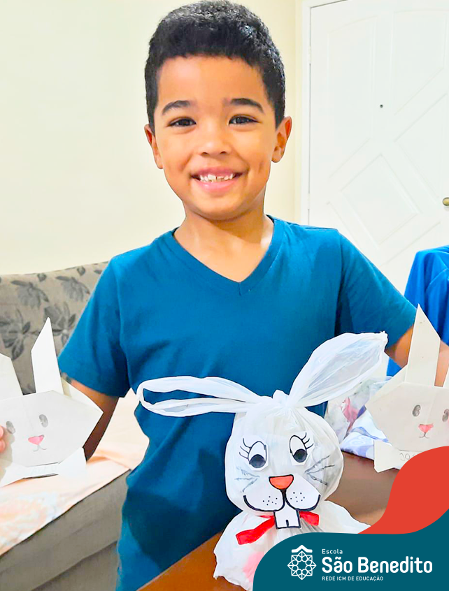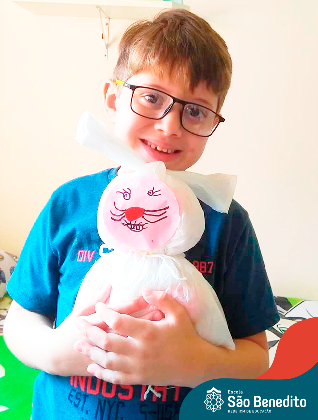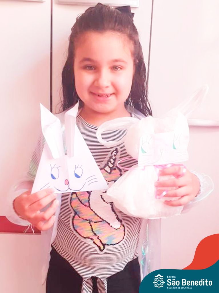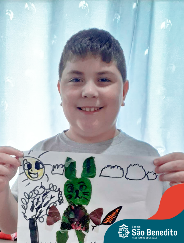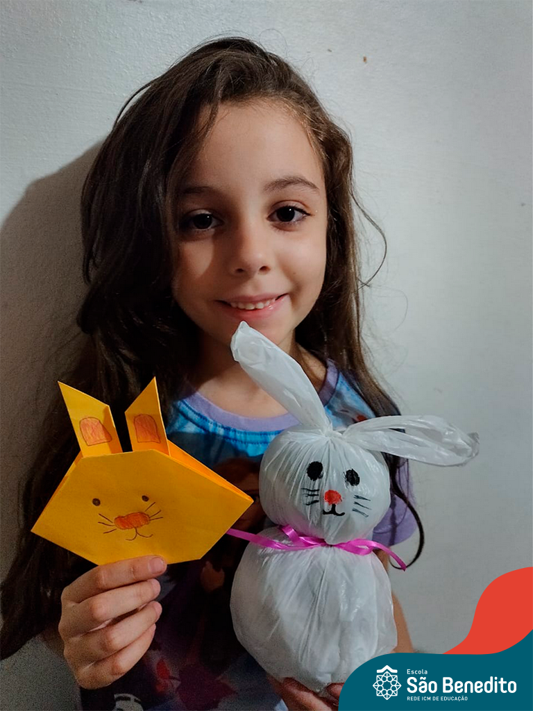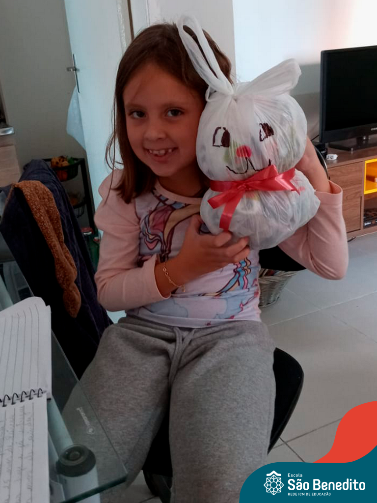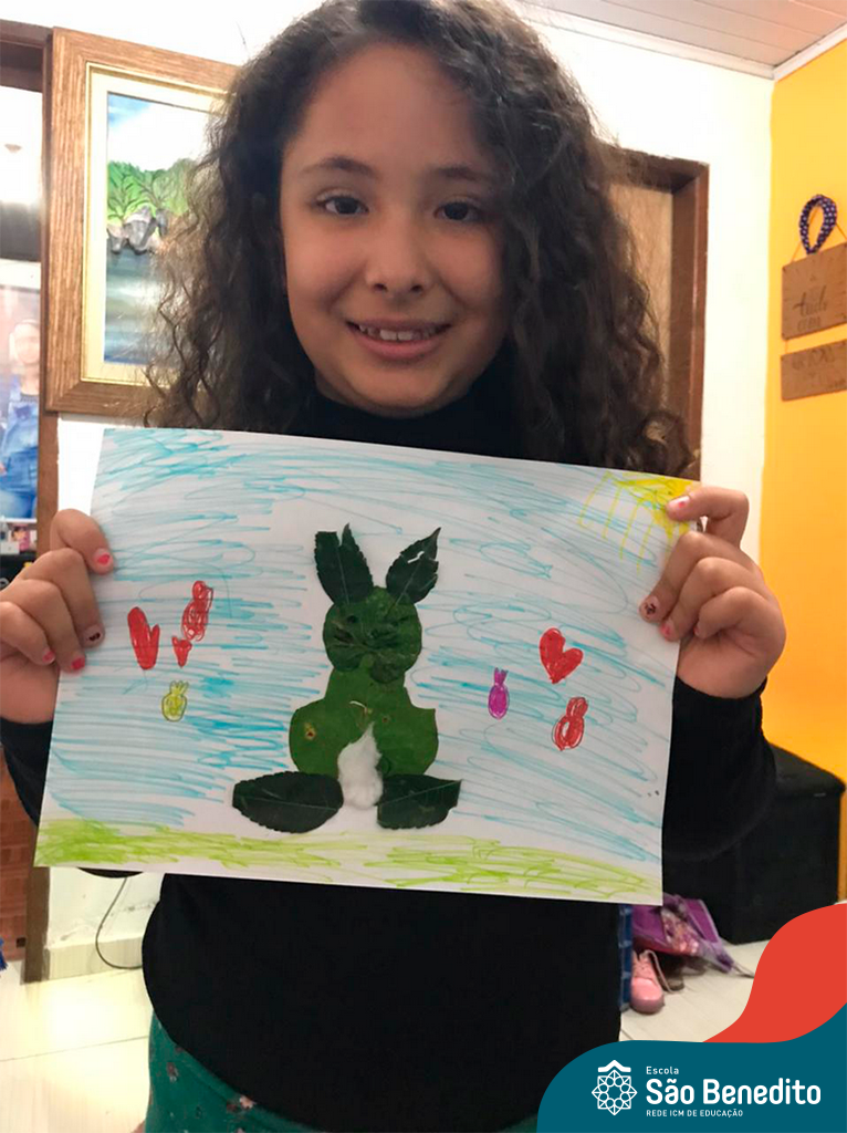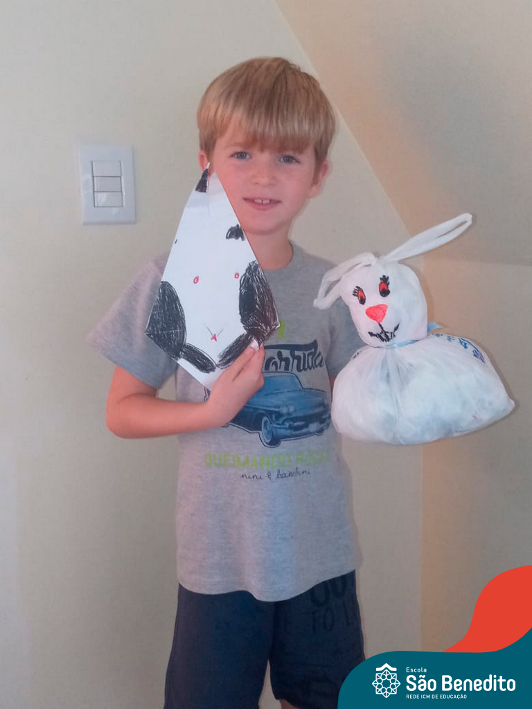 Alguns alunos utilizaram folhas coloridas, outros folhas caídas de árvore. E, ainda tiveram aqueles que optaram por construir um coelhinho com sacolas! É isso mesmo, com sacolas! A atividade, além de trazer muita cor e diversão, promoveu a reutilização de itens que levam anos para se decompor na natureza e ficam esquecidos, poluindo e não sendo utilizados. Confira as fotos: