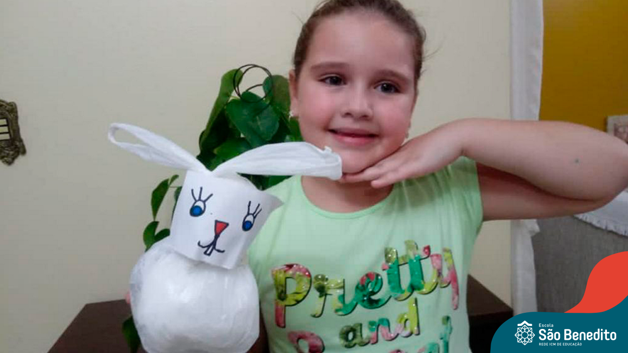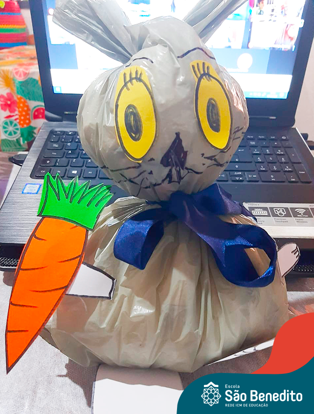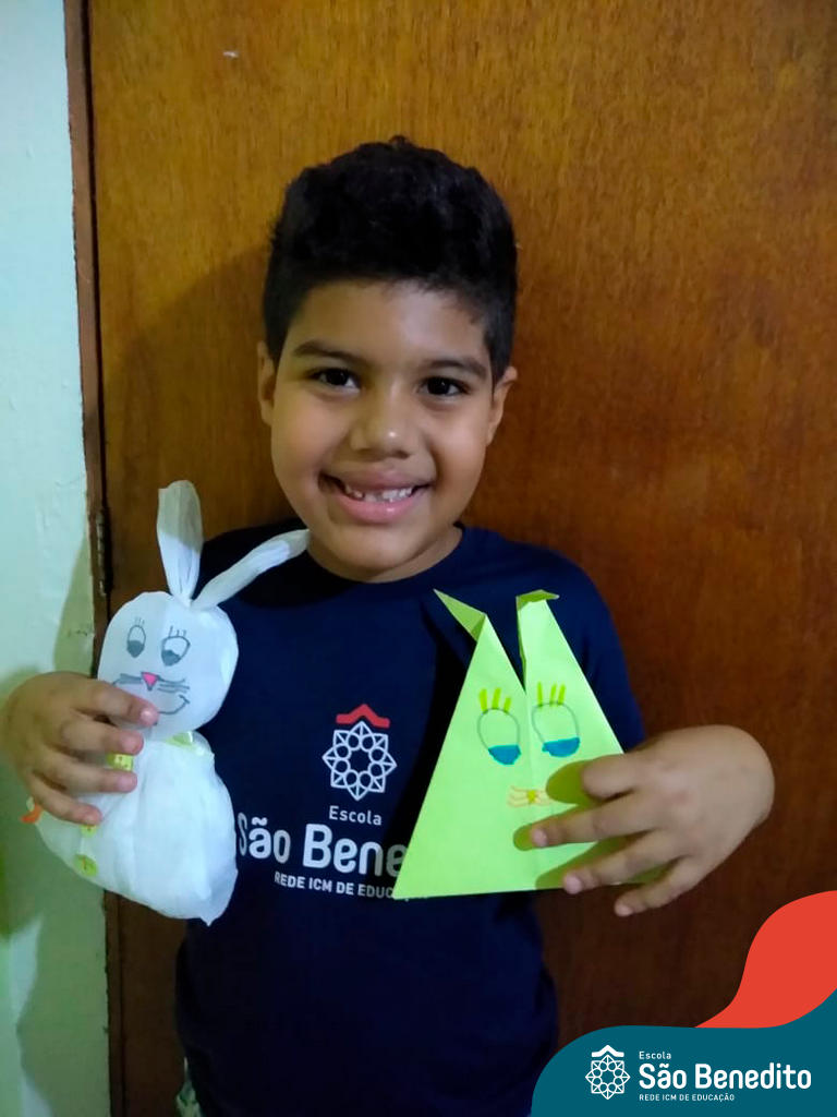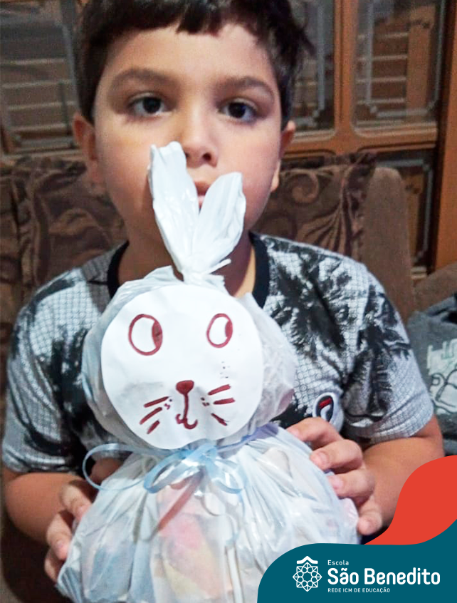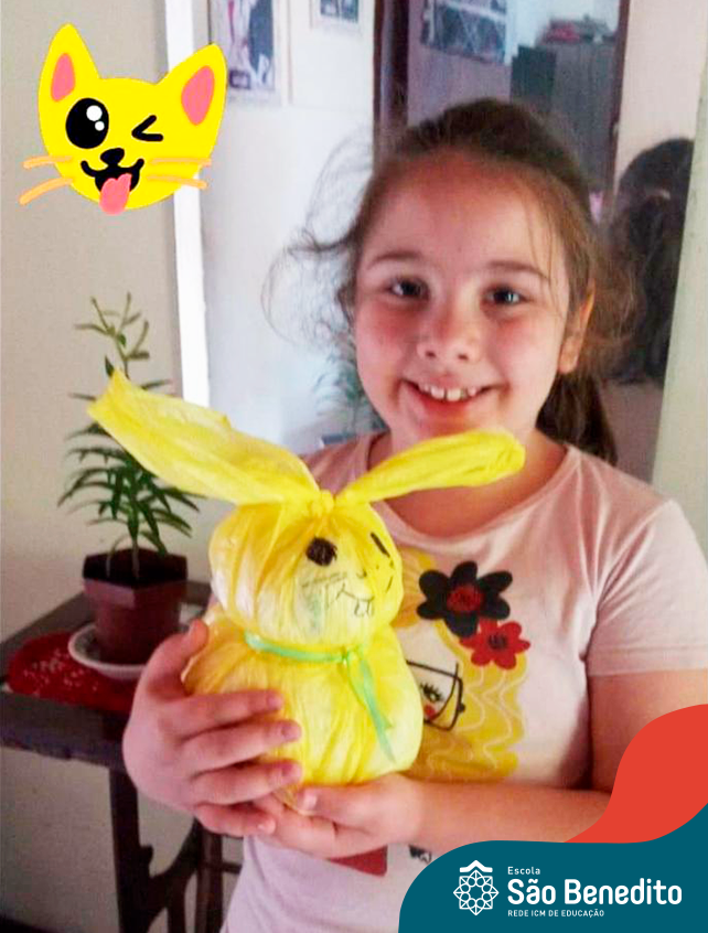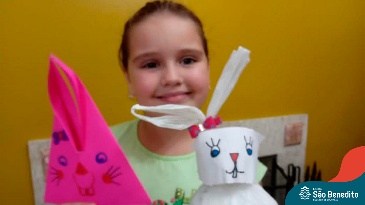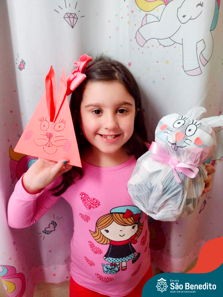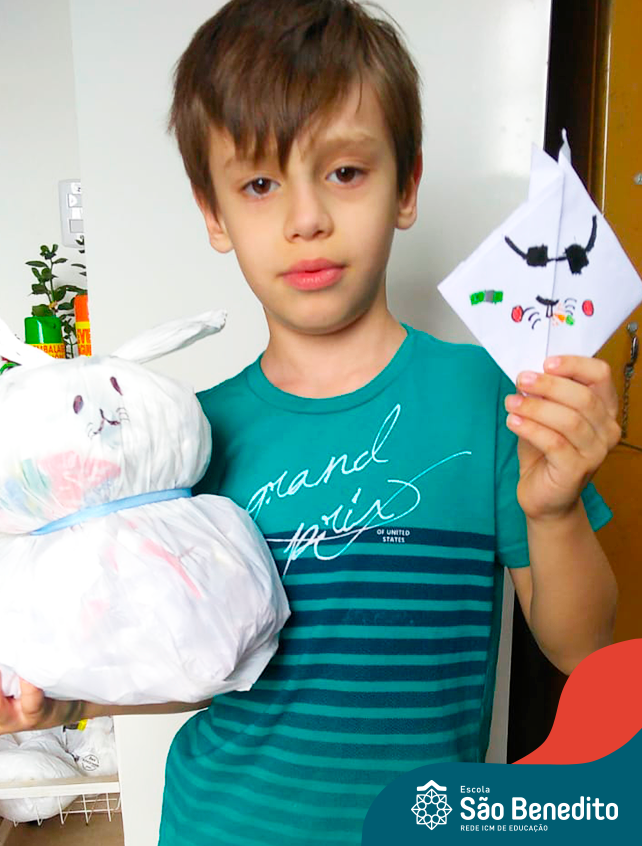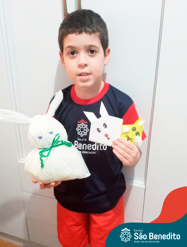 Alguns alunos utilizaram folhas coloridas, outros folhas caídas de árvore. E, ainda tiveram aqueles que optaram por construir um coelhinho com sacolas! É isso mesmo, com sacolas! A atividade, além de trazer muita cor e diversão, promoveu a reutilização de itens que levam anos para se decompor na natureza e ficam esquecidos, poluindo e não sendo utilizados. Confira as fotos: