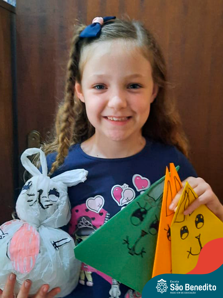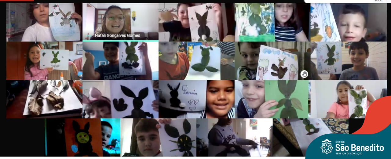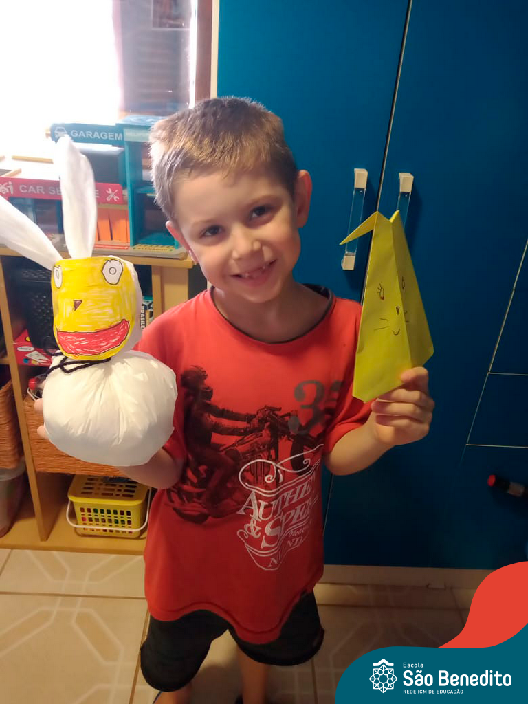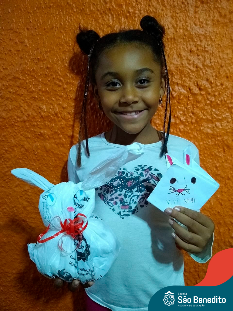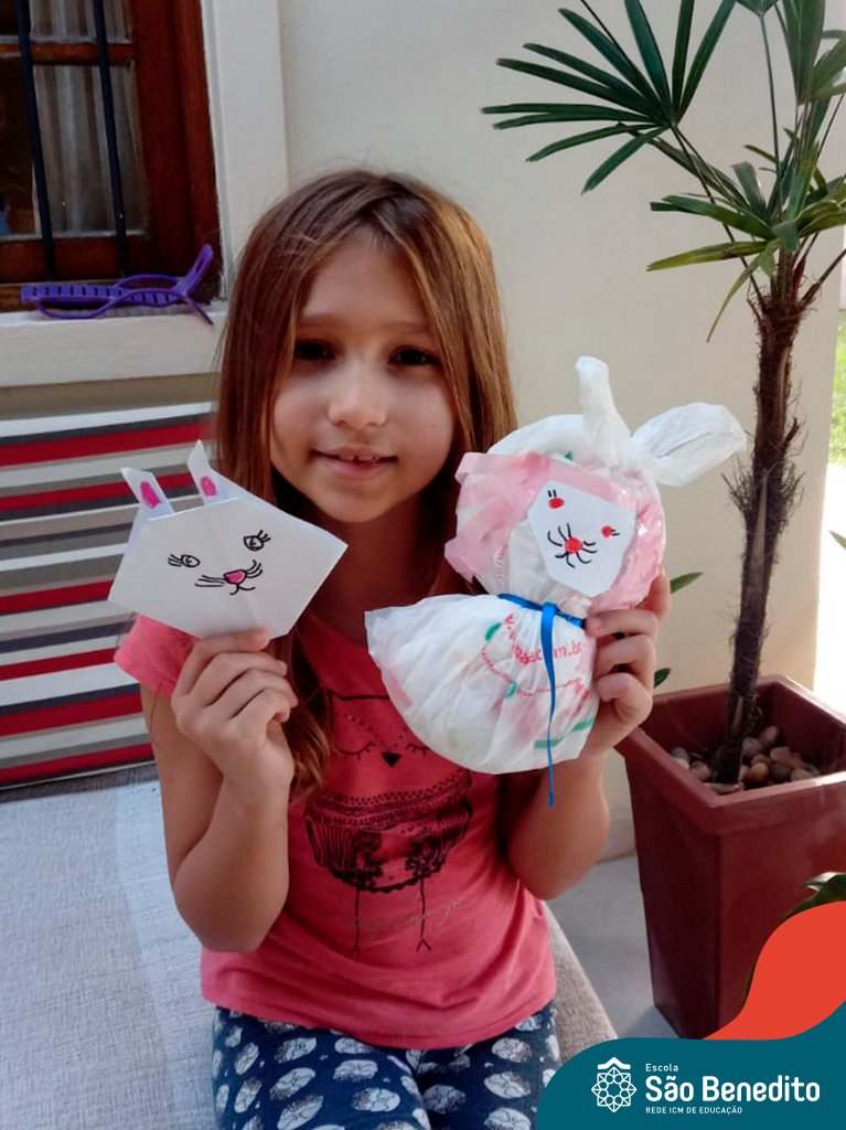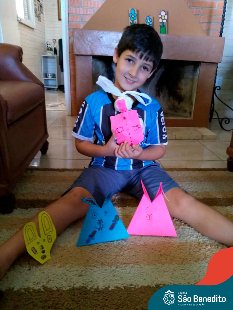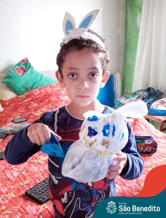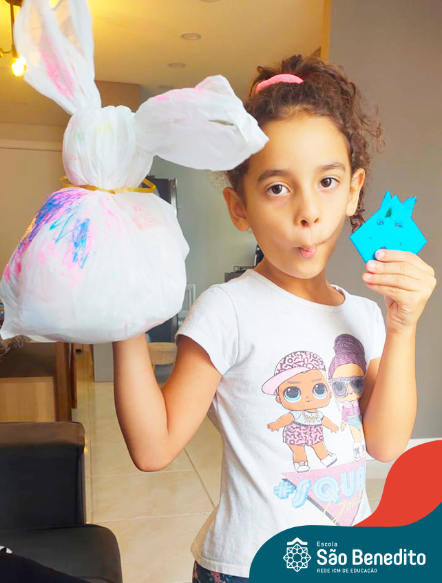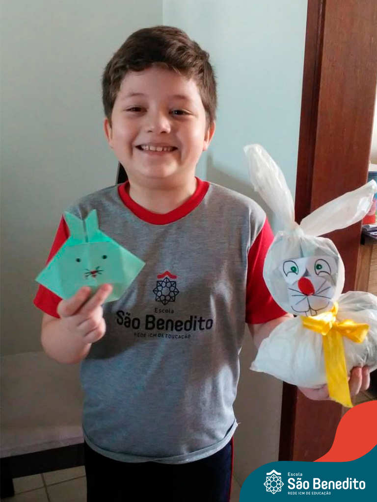 Alguns alunos utilizaram folhas coloridas, outros folhas caídas de árvore. E, ainda tiveram aqueles que optaram por construir um coelhinho com sacolas! É isso mesmo, com sacolas! A atividade, além de trazer muita cor e diversão, promoveu a reutilização de itens que levam anos para se decompor na natureza e ficam esquecidos, poluindo e não sendo utilizados. Confira as fotos: