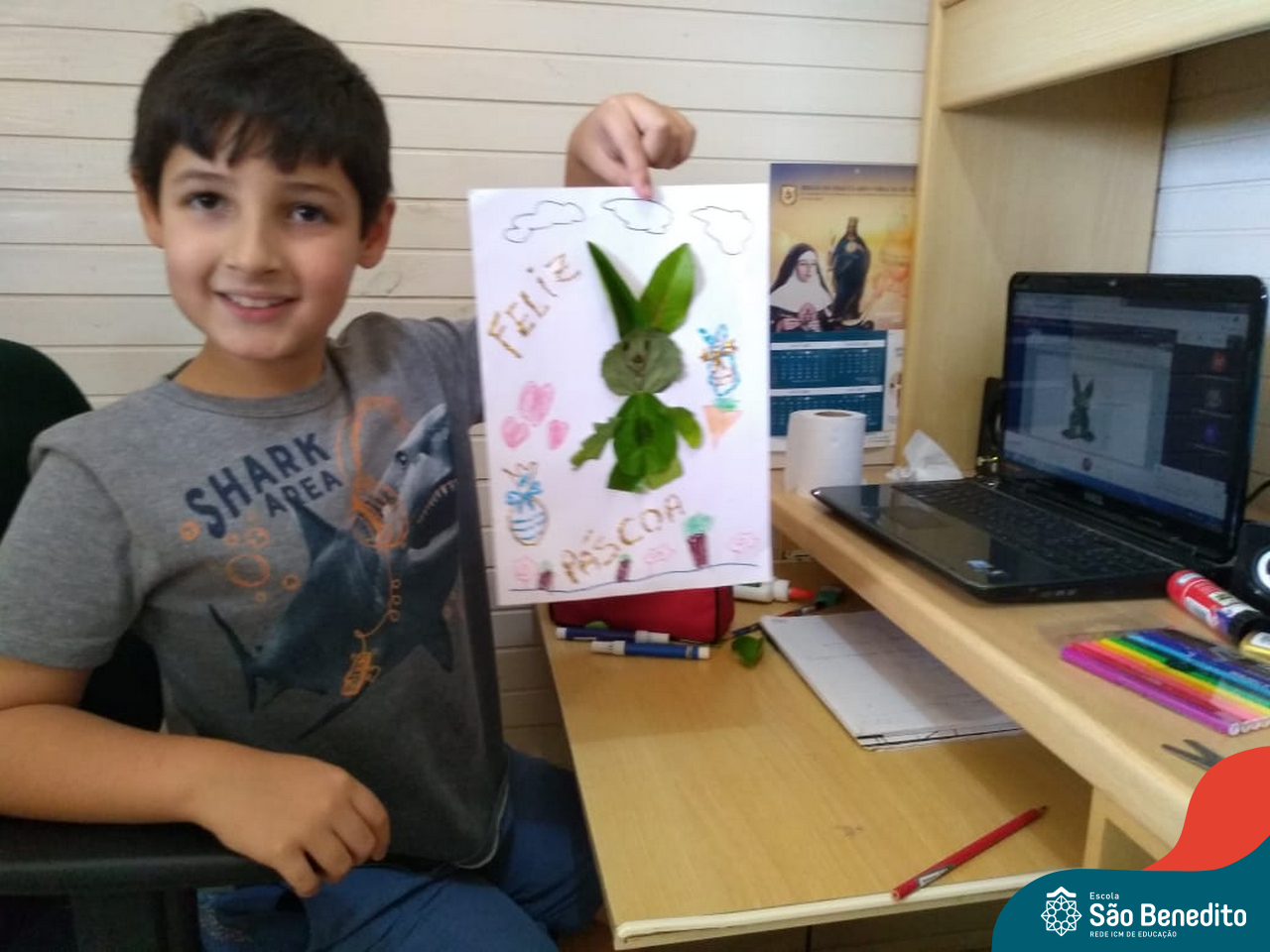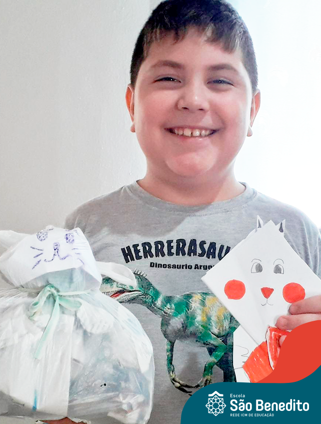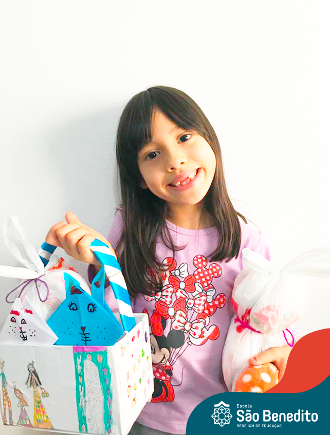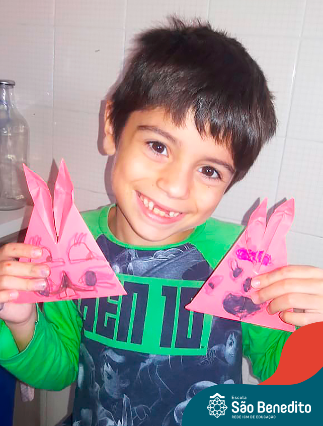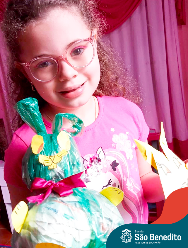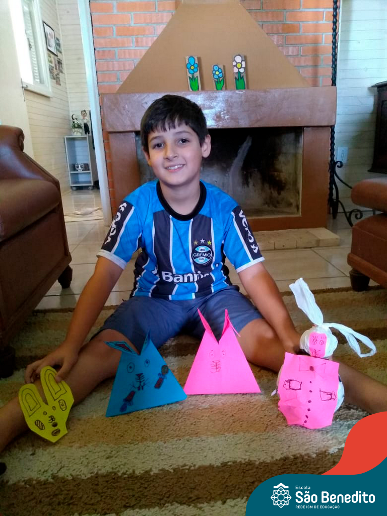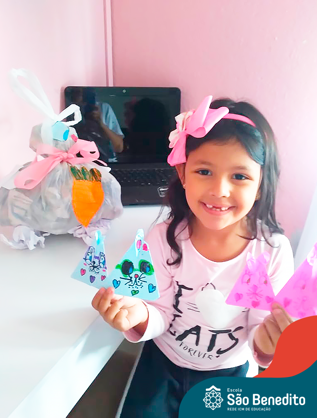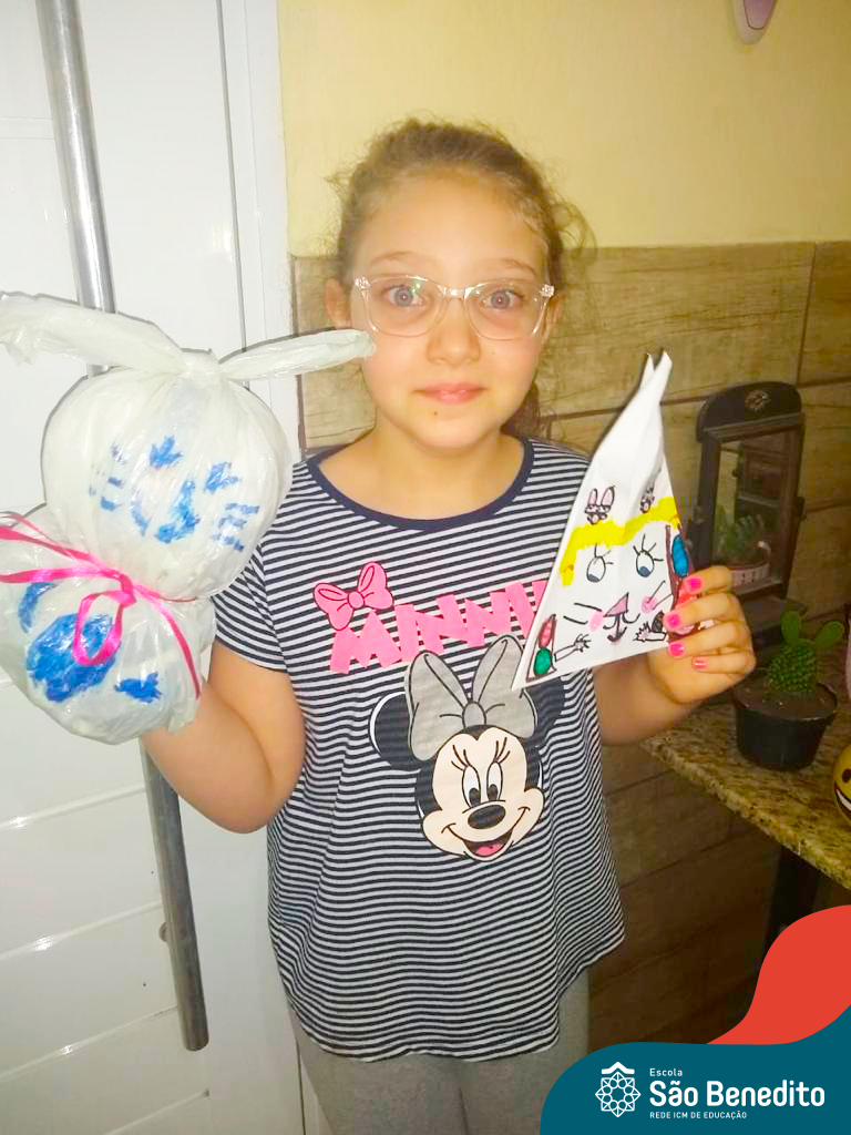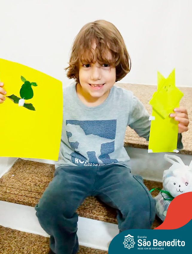 Alguns alunos utilizaram folhas coloridas, outros folhas caídas de árvore. E, ainda tiveram aqueles que optaram por construir um coelhinho com sacolas! É isso mesmo, com sacolas! A atividade, além de trazer muita cor e diversão, promoveu a reutilização de itens que levam anos para se decompor na natureza e ficam esquecidos, poluindo e não sendo utilizados. Confira as fotos: