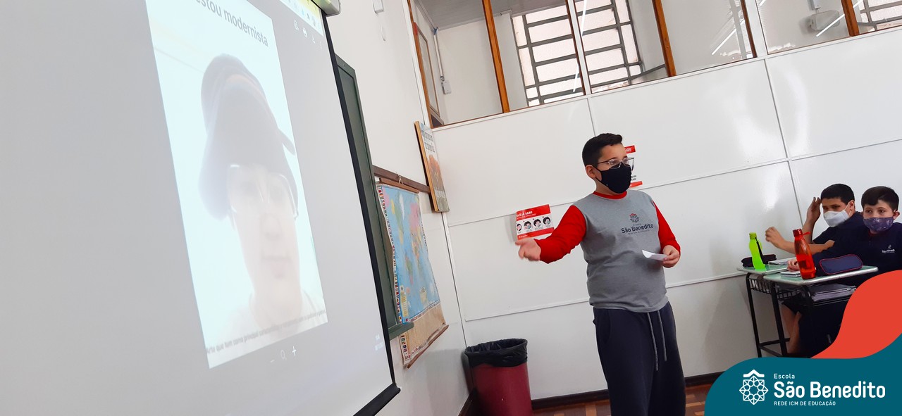 Os estudantes do 5º Ano, com orientação da professora Rita Patron, criaram seus próprios memes. Meme é um termo grego que significa imitação. A termologia ficou popular na internet por se tratar de um vídeo, uma imagem ou uma imitação que “viraliza”, ou seja: se espalha muito rapidamente. Todos os memes criados pelos estudantes foram baseados em obras de arte, artistas e movimentos artísticos. Confira: