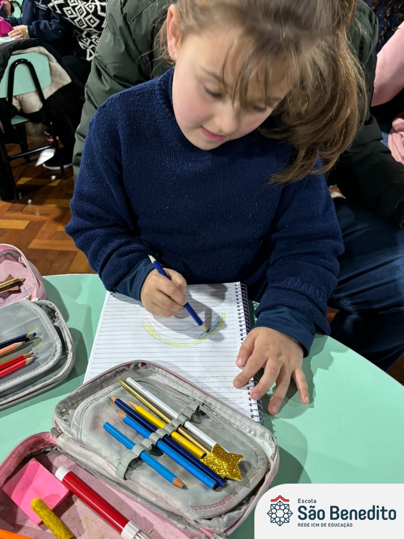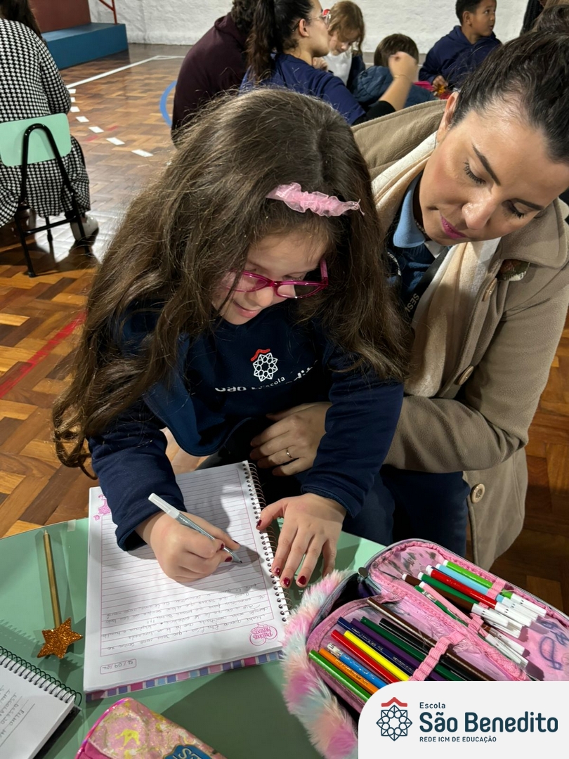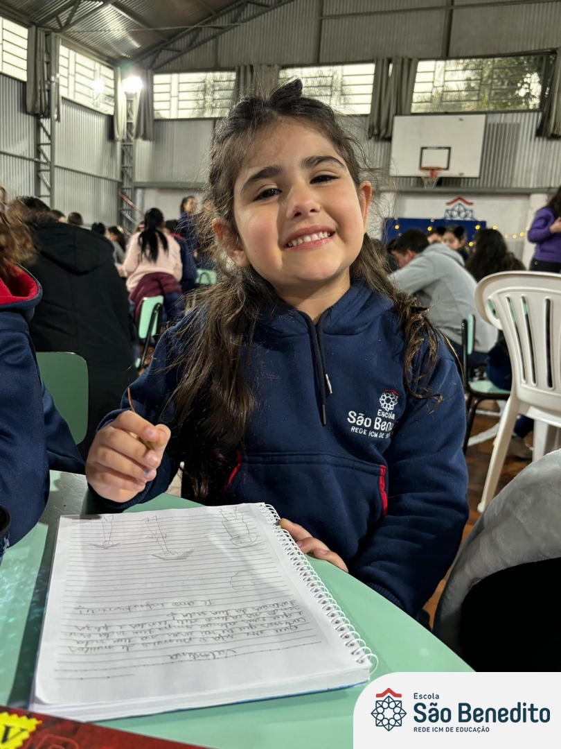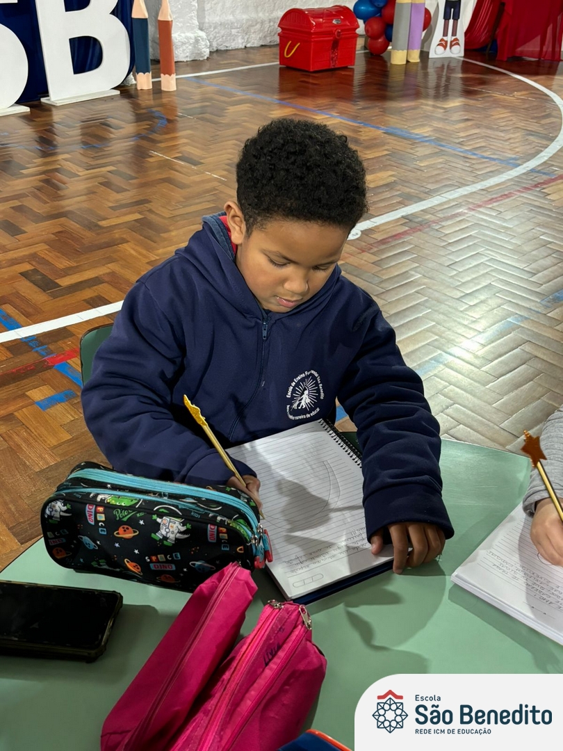 No dia 12 de setembro, os estudantes do Pré 2 viveram um momento inesquecível com a celebração da Festa do Caderno. O evento, que contou com a presença das famílias e do mascote Bene, marcou a conquista do primeiro caderno pelos pequenos alunos, simbolizando o início de uma nova fase em sua jornada educacional.