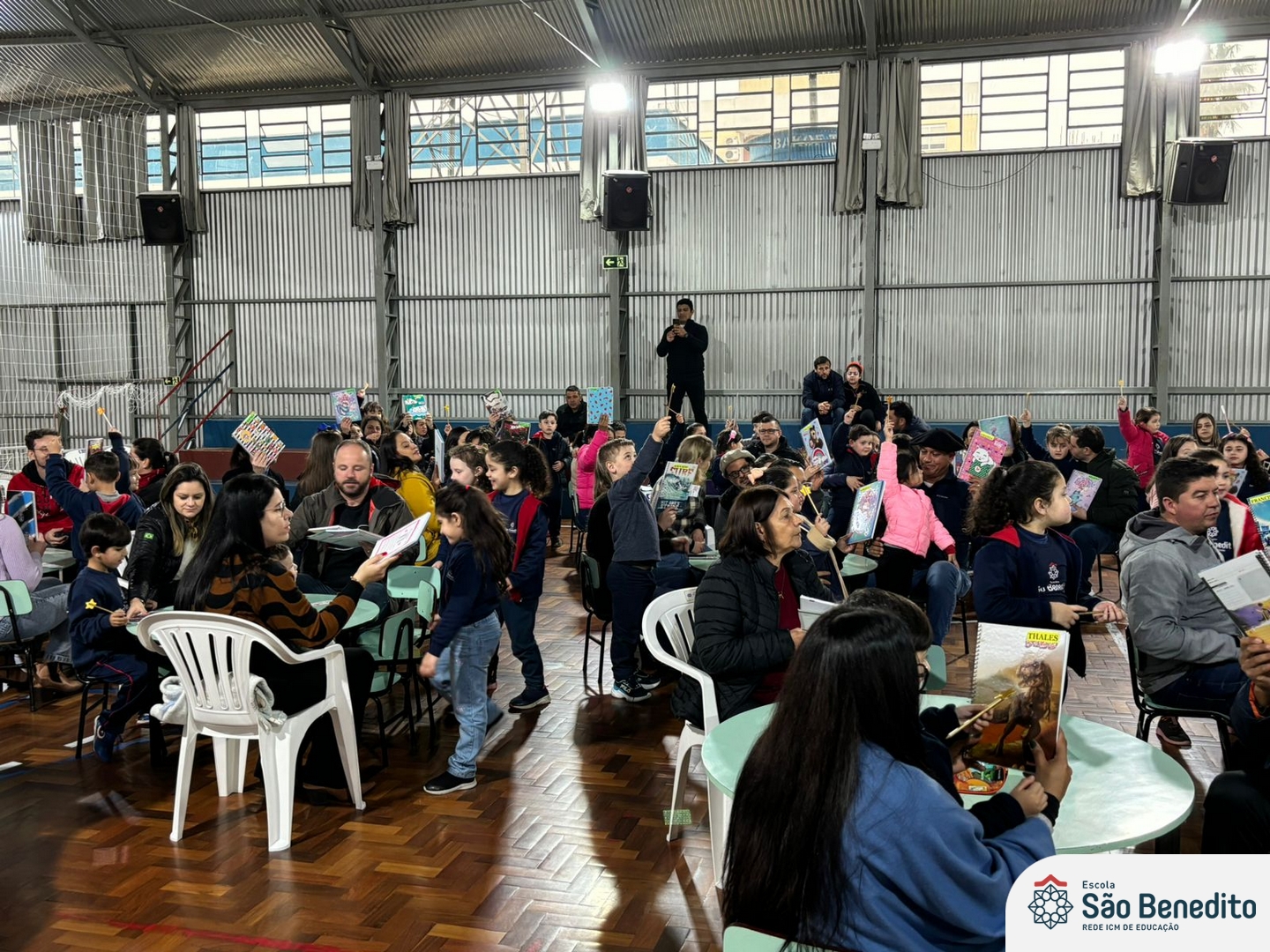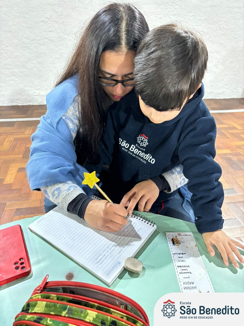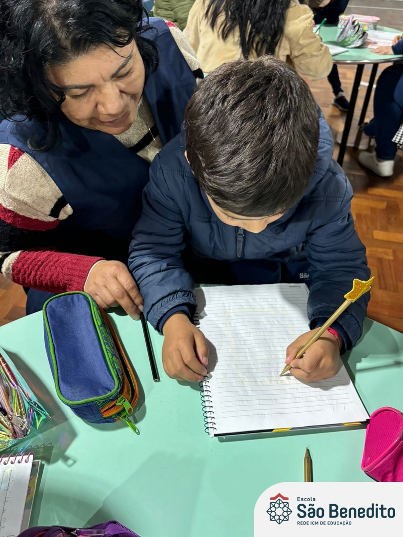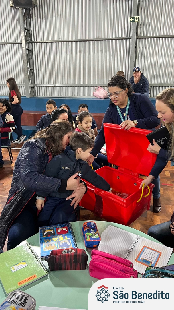 No dia 12 de setembro, os estudantes do Pré 2 viveram um momento inesquecível com a celebração da Festa do Caderno. O evento, que contou com a presença das famílias e do mascote Bene, marcou a conquista do primeiro caderno pelos pequenos alunos, simbolizando o início de uma nova fase em sua jornada educacional.