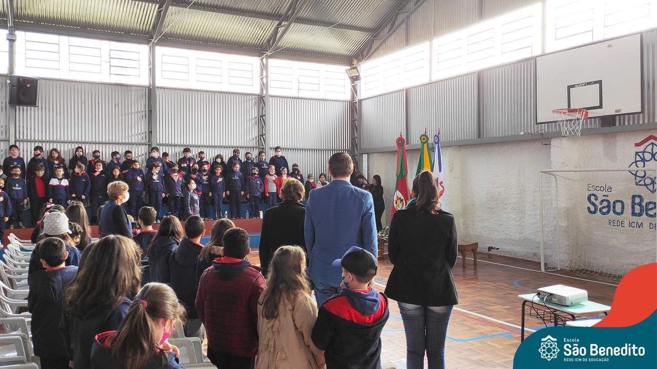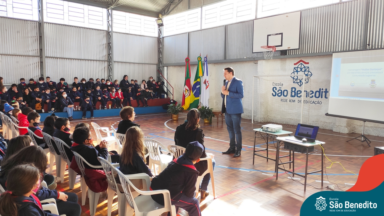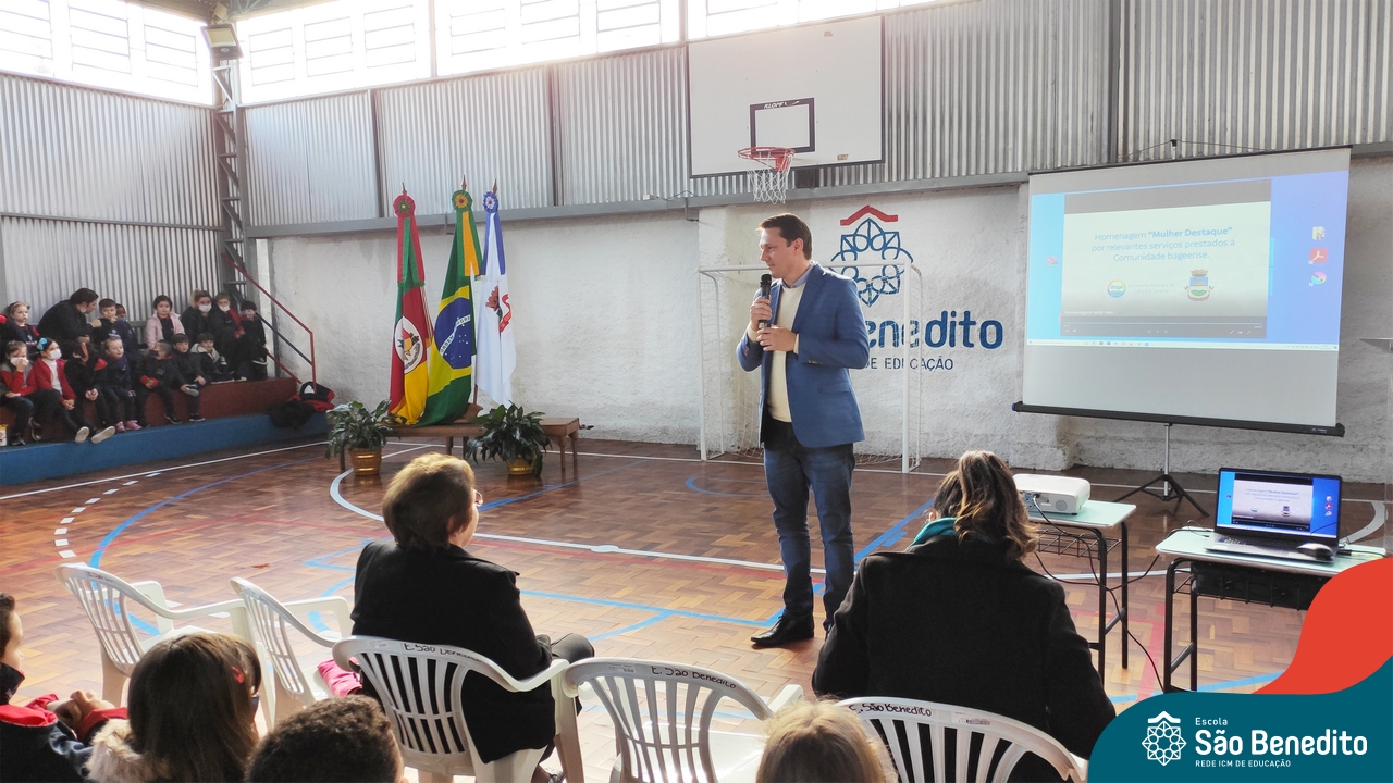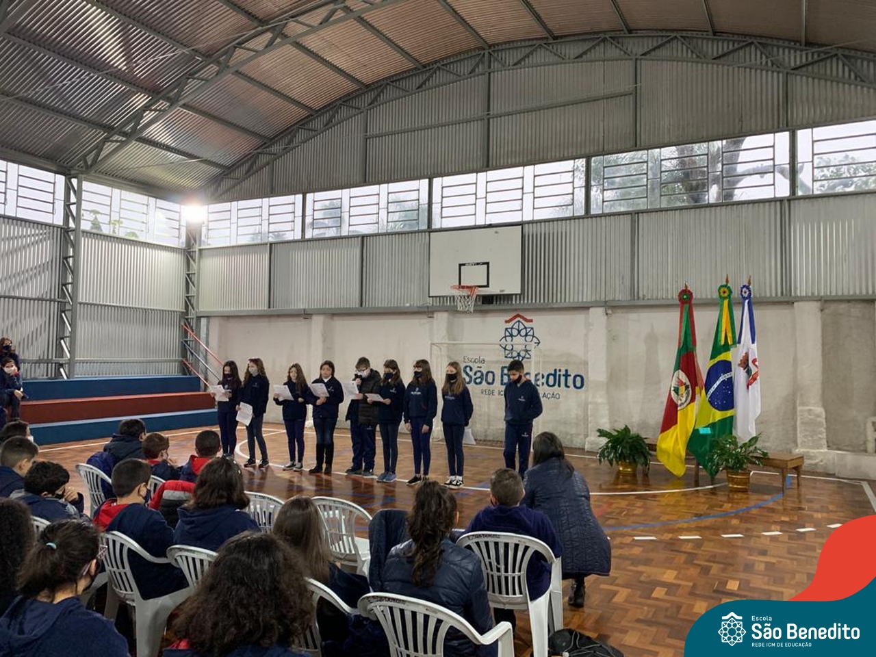 Nesta sexta-feira, 15/07, a Diretora da Escola São Benedito, Irmã Ines Terezinha Sangalli, recebeu a homenagem de “Mulher destaque por serviços relevantes prestados à comunidade bageense”, realizada pela Secretaria de Cultura e Turismo através do Secretário João Schardosim, que acompanhado de sua assessora, Larissa Macedo, participou do momento cívico organizado pelas turmas de 3º Ano, lideradas pelas professoras Bruna Jacinto, Marcele Caceres e Viviane Vizzotto.