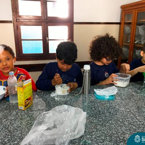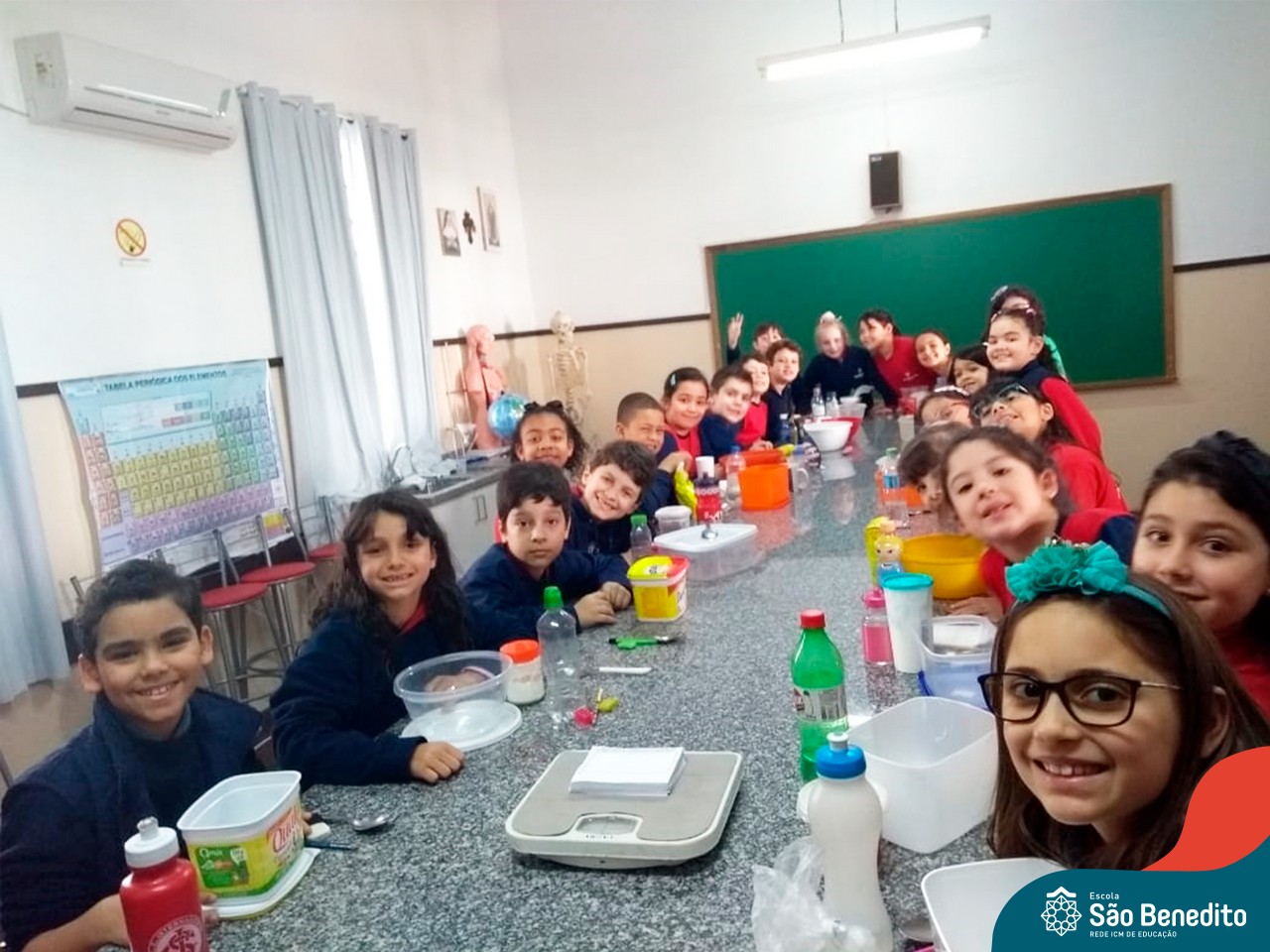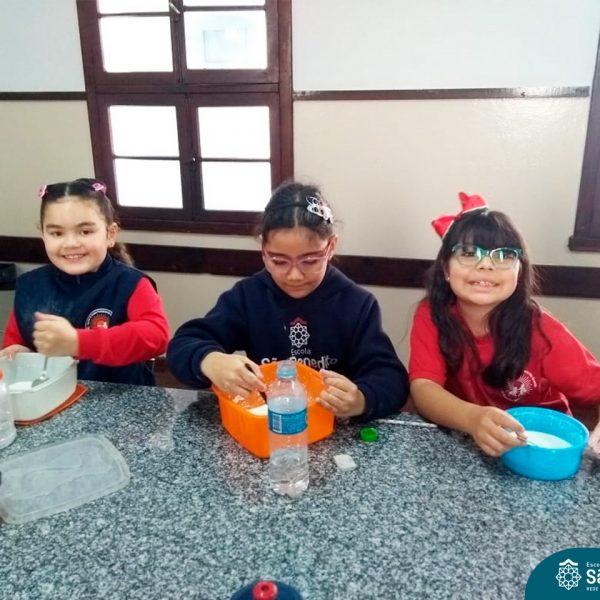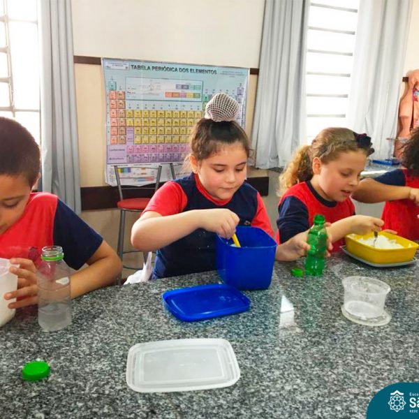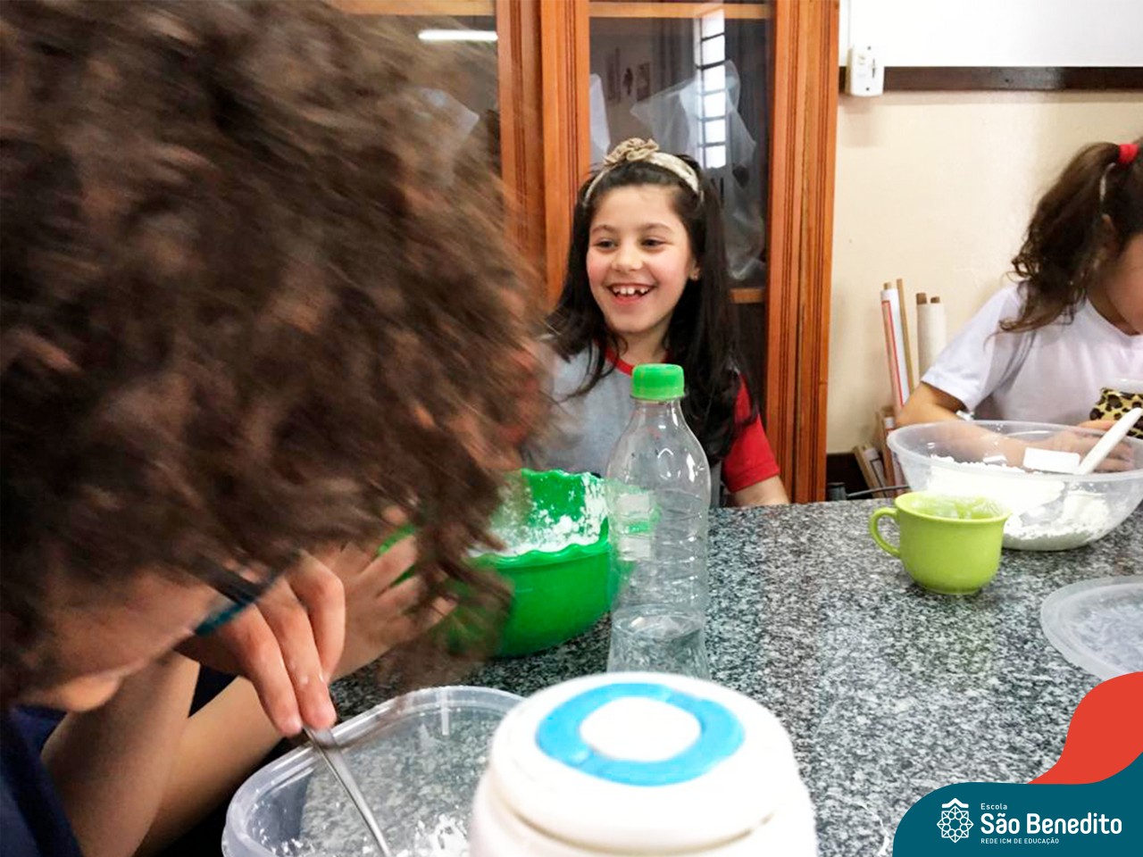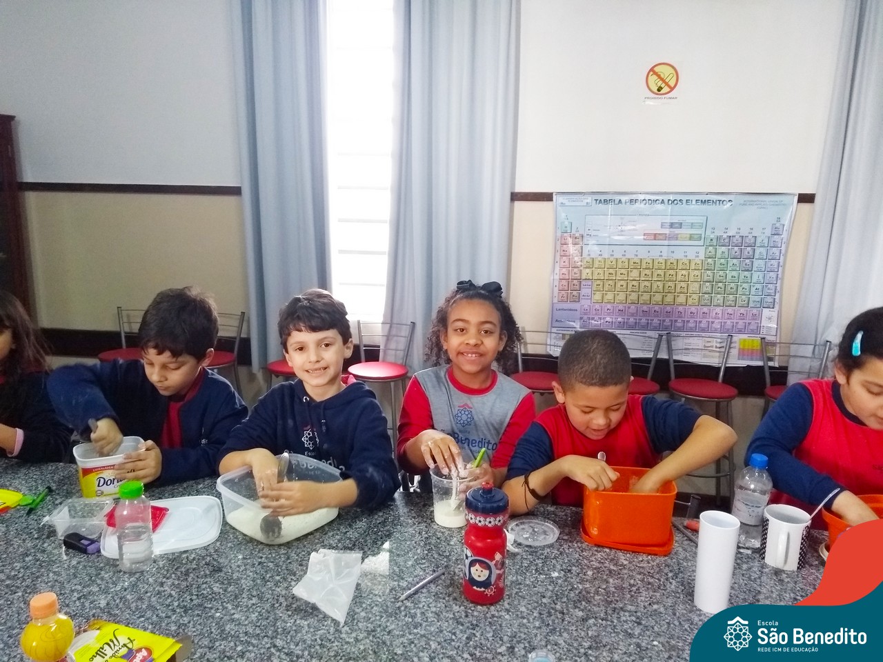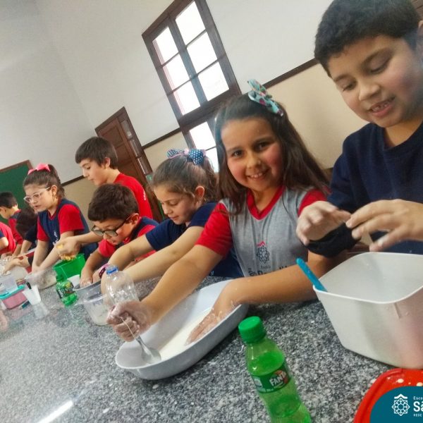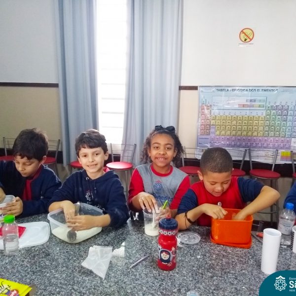 Quem disse que a ciência não pode ser muito divertida? As turmas do 2º Ano participaram de uma aula prática no Laboratório de Ciências que arrancou muitos sorrisos. O aprendizado da vez foi sobre as medidas de massa e capacidade, e se deu através do experimento “Massa Maluca”, que foi confeccionada pelos alunos, podendo possuir dois estados: sólido e líquido.