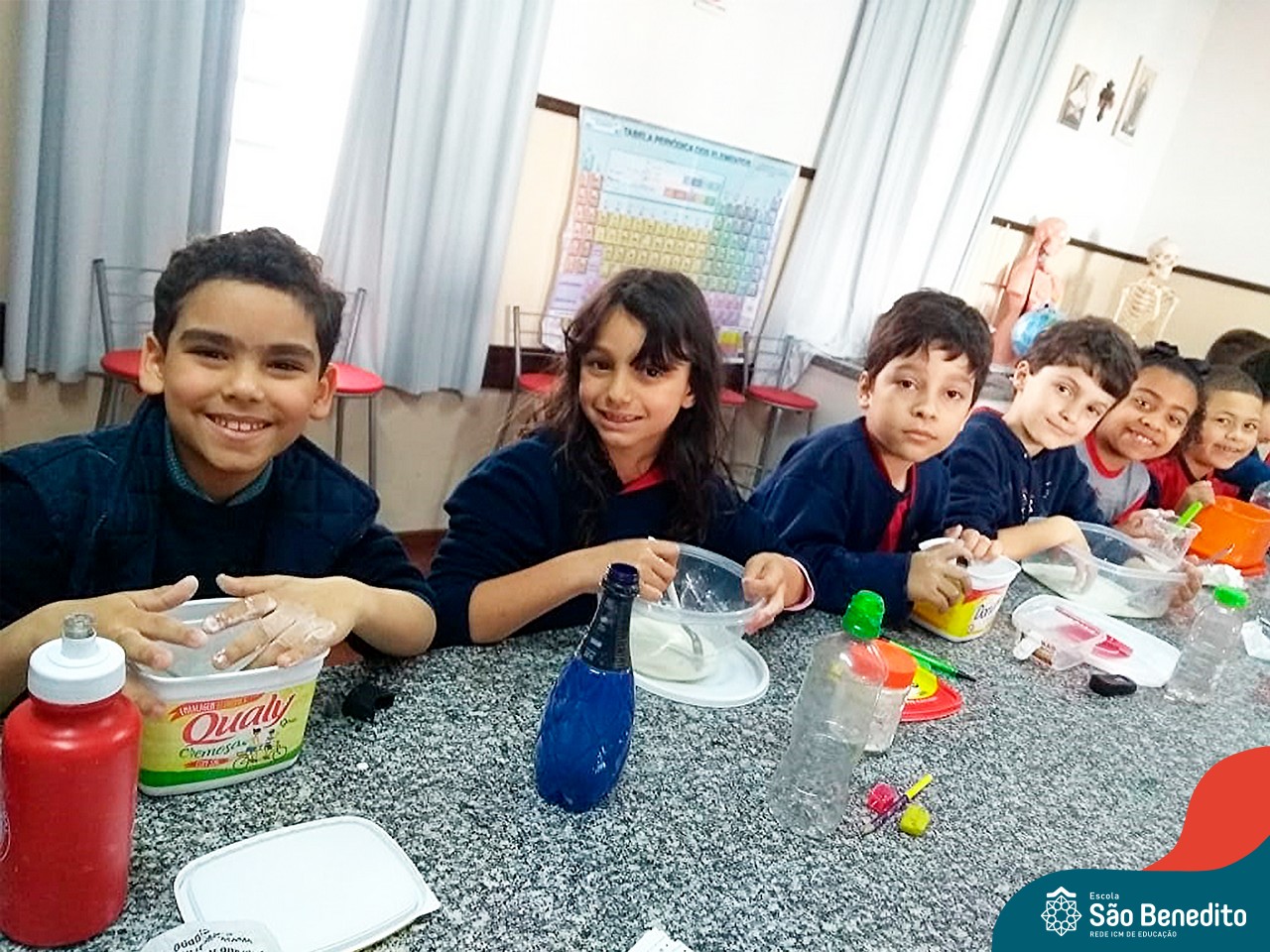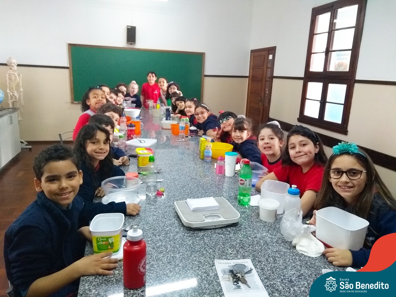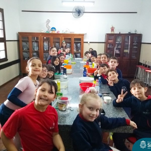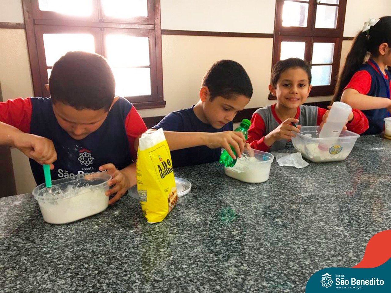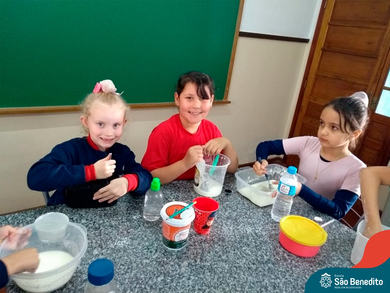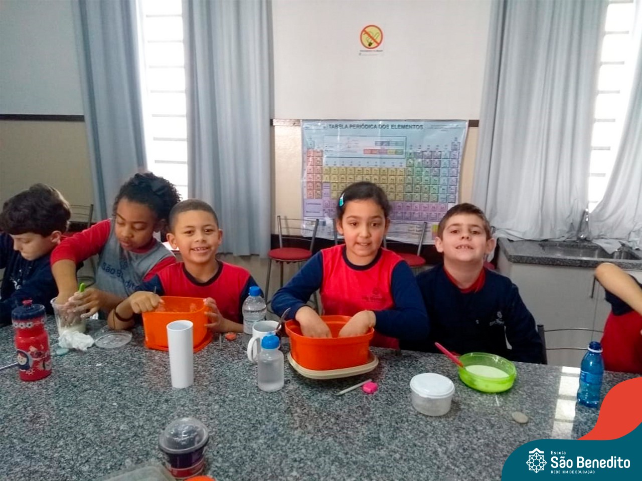 Quem disse que a ciência não pode ser muito divertida? As turmas do 2º Ano participaram de uma aula prática no Laboratório de Ciências que arrancou muitos sorrisos. O aprendizado da vez foi sobre as medidas de massa e capacidade, e se deu através do experimento “Massa Maluca”, que foi confeccionada pelos alunos, podendo possuir dois estados: sólido e líquido.