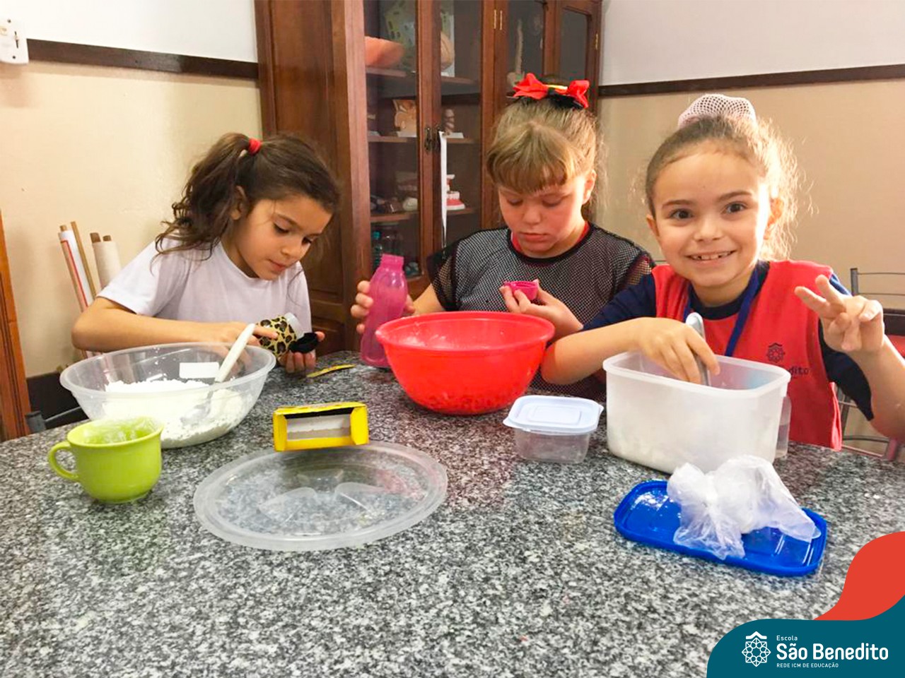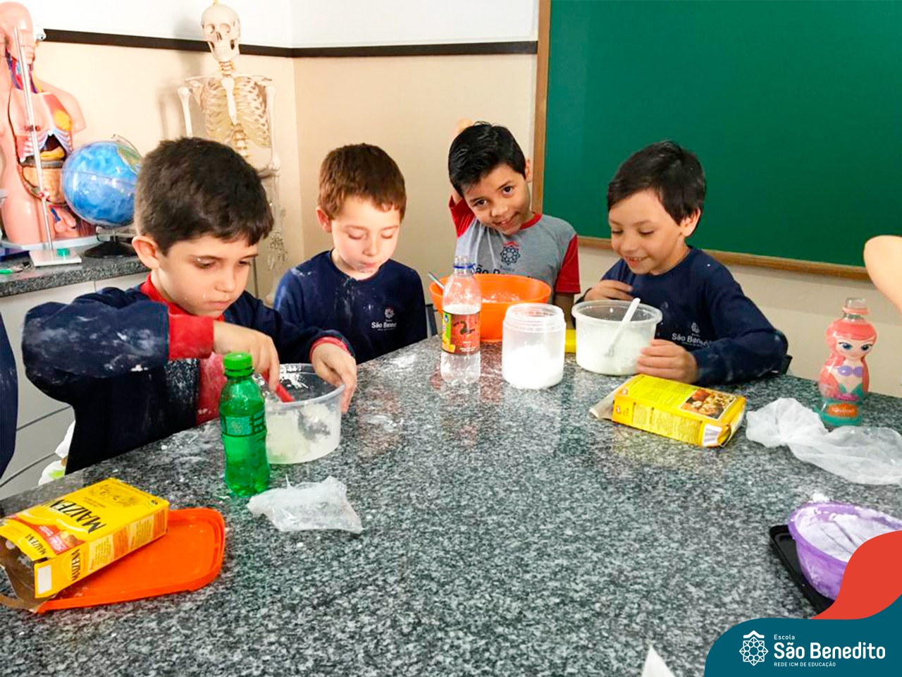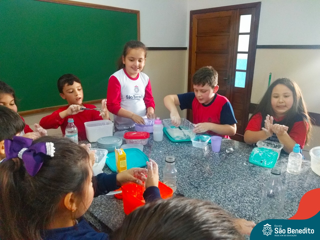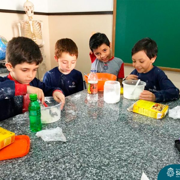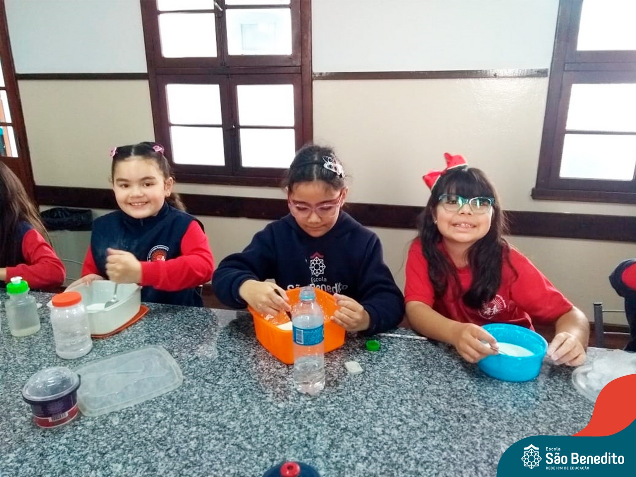 Quem disse que a ciência não pode ser muito divertida? As turmas do 2º Ano participaram de uma aula prática no Laboratório de Ciências que arrancou muitos sorrisos. O aprendizado da vez foi sobre as medidas de massa e capacidade, e se deu através do experimento “Massa Maluca”, que foi confeccionada pelos alunos, podendo possuir dois estados: sólido e líquido.