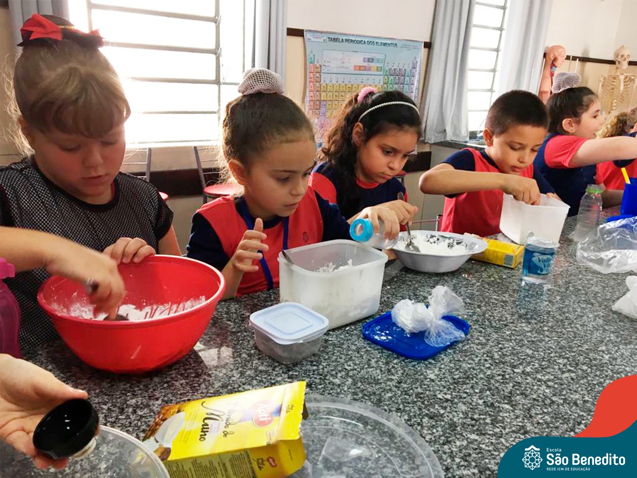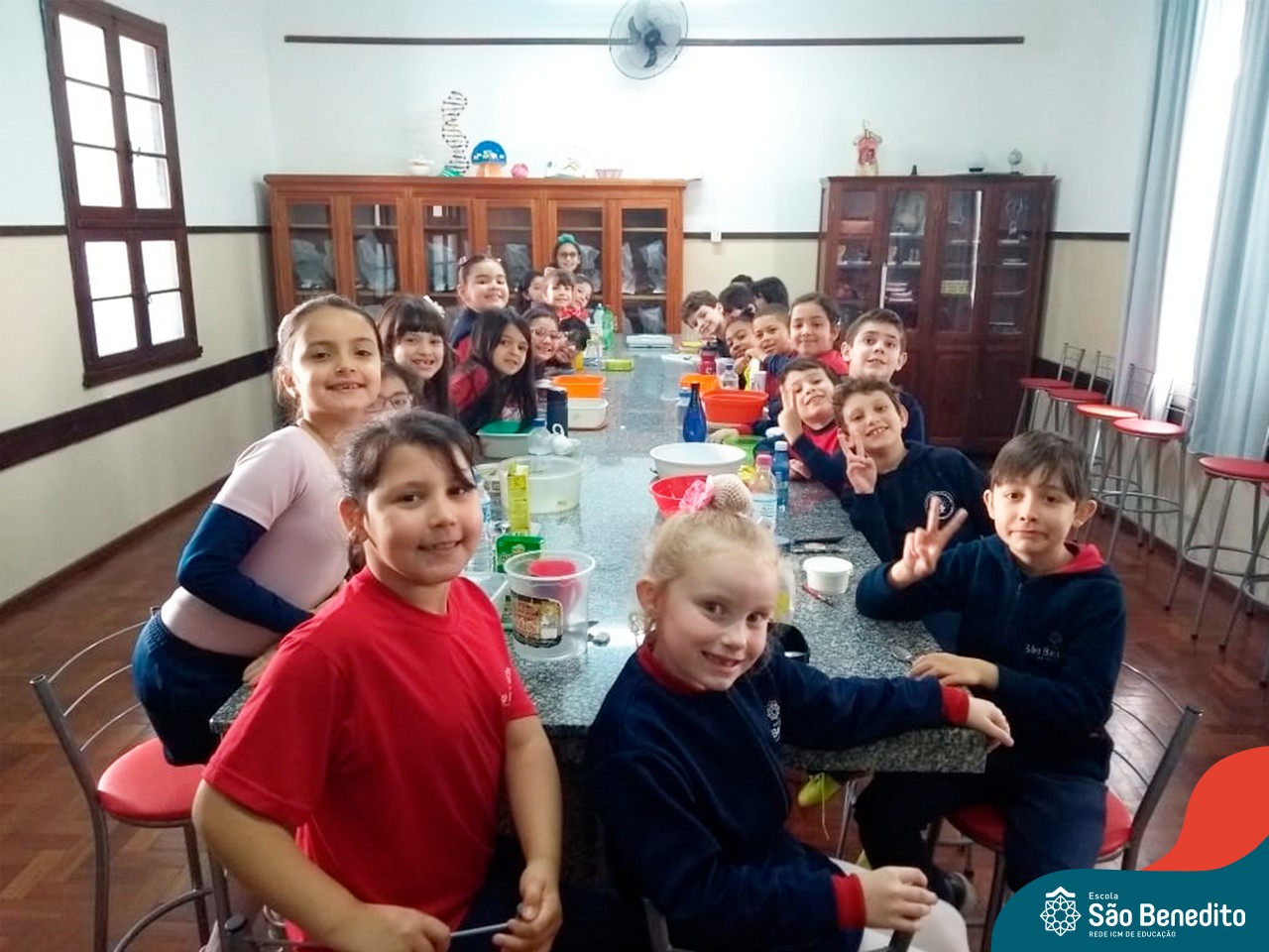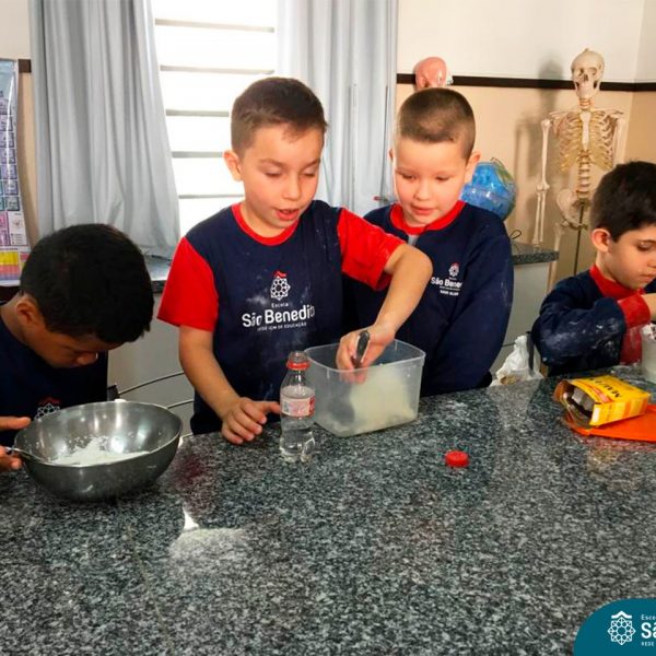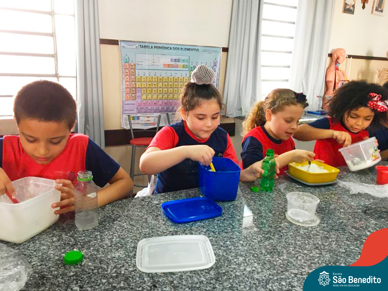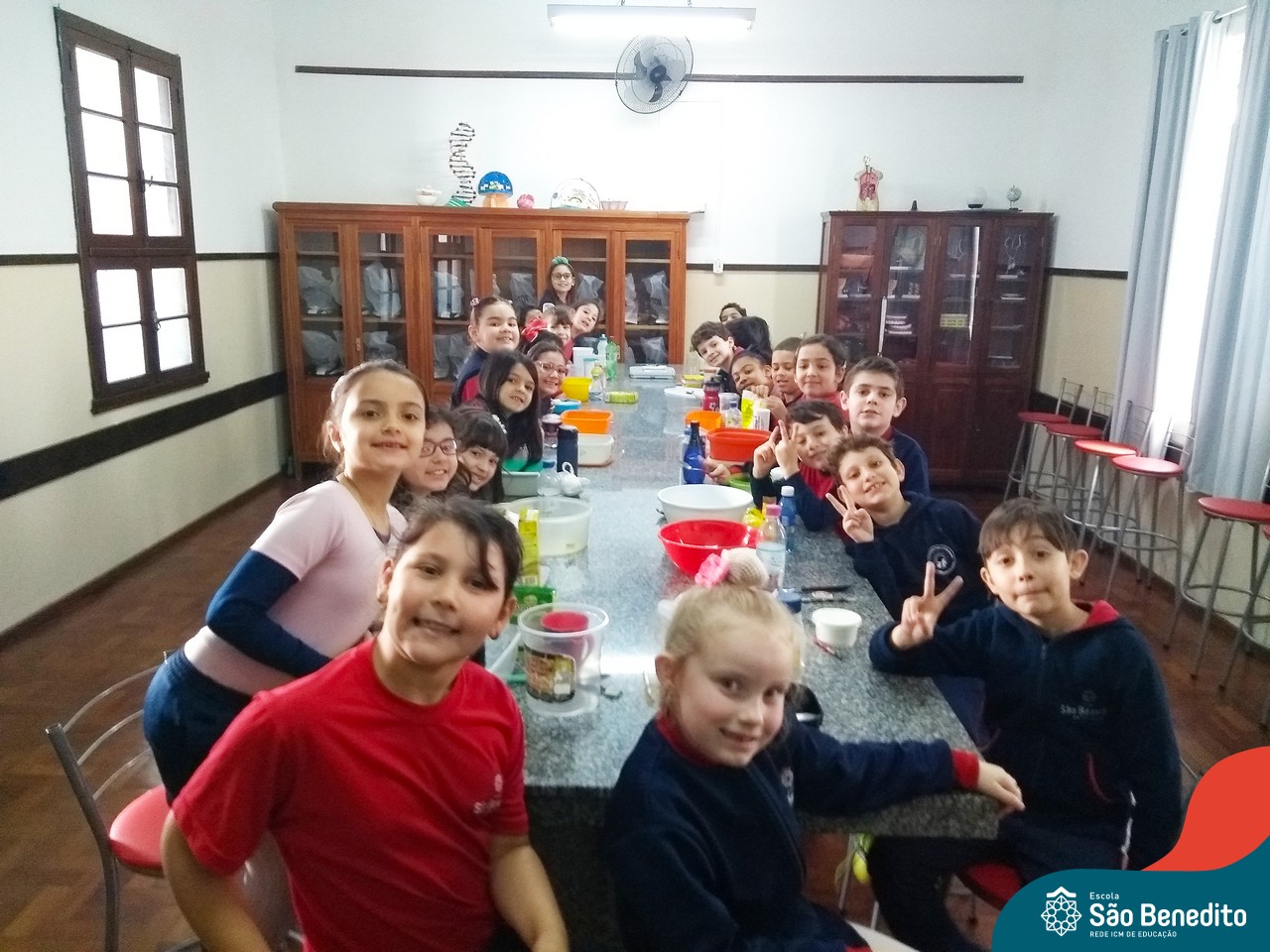 Quem disse que a ciência não pode ser muito divertida? As turmas do 2º Ano participaram de uma aula prática no Laboratório de Ciências que arrancou muitos sorrisos. O aprendizado da vez foi sobre as medidas de massa e capacidade, e se deu através do experimento “Massa Maluca”, que foi confeccionada pelos alunos, podendo possuir dois estados: sólido e líquido.