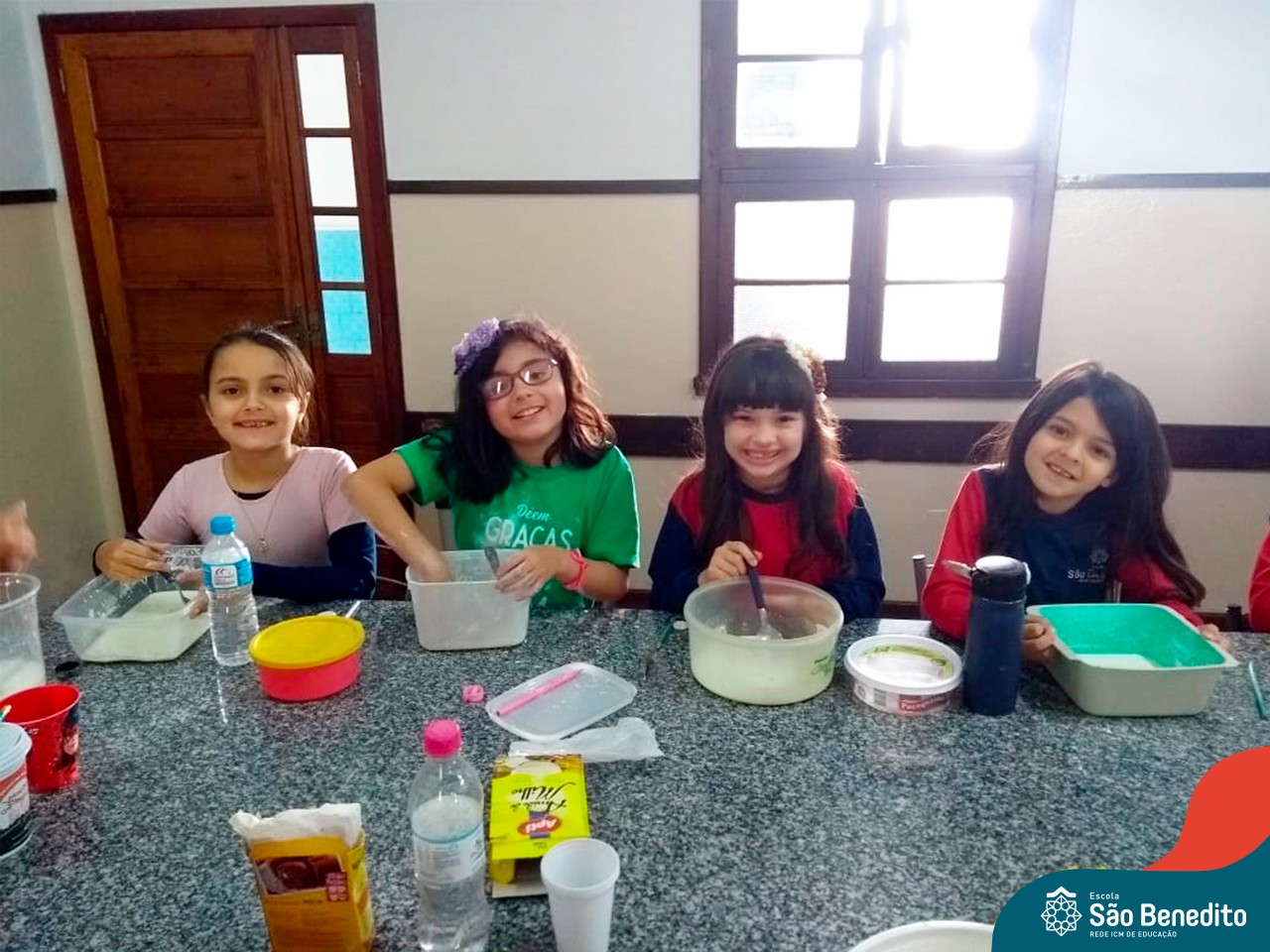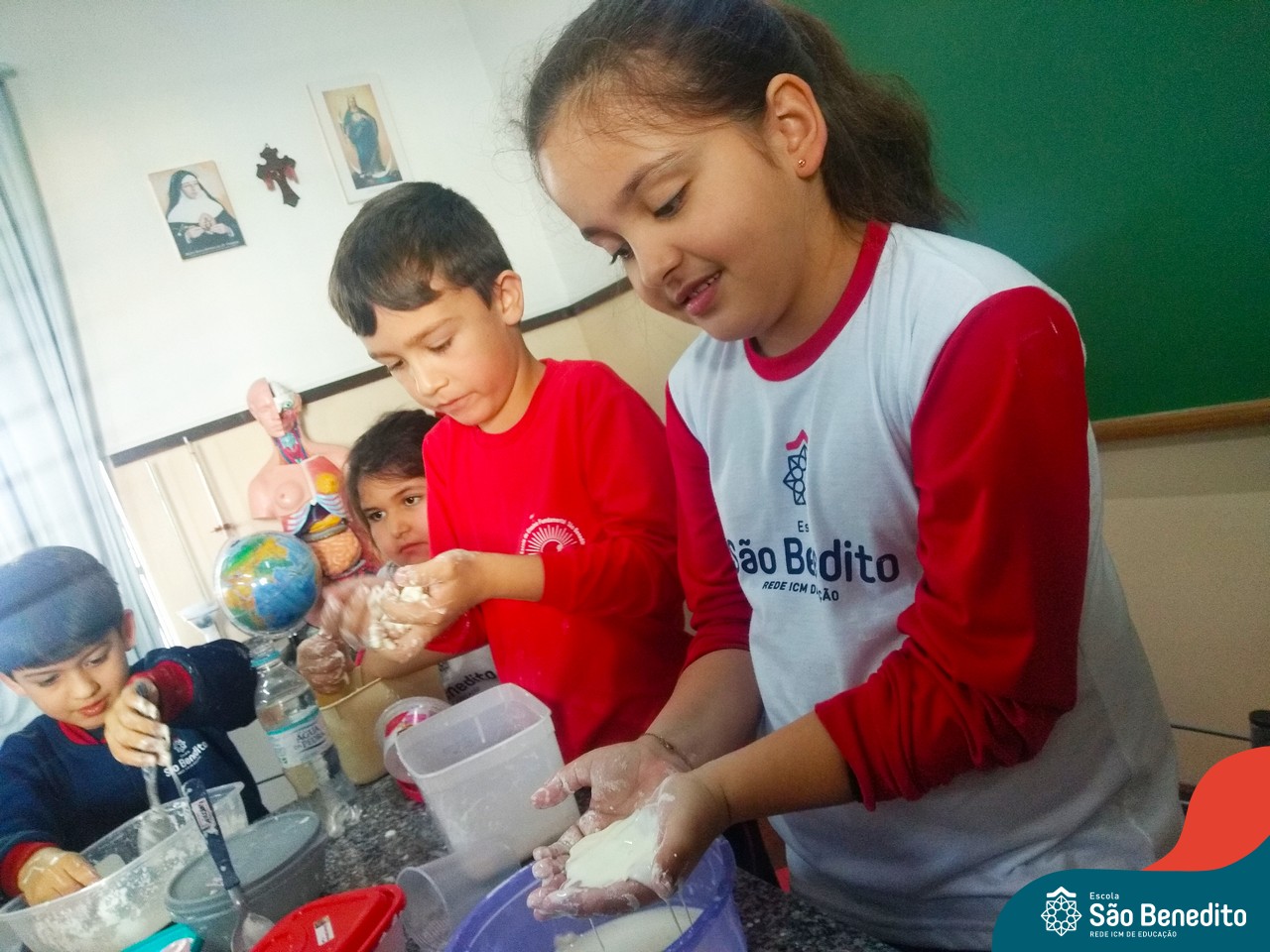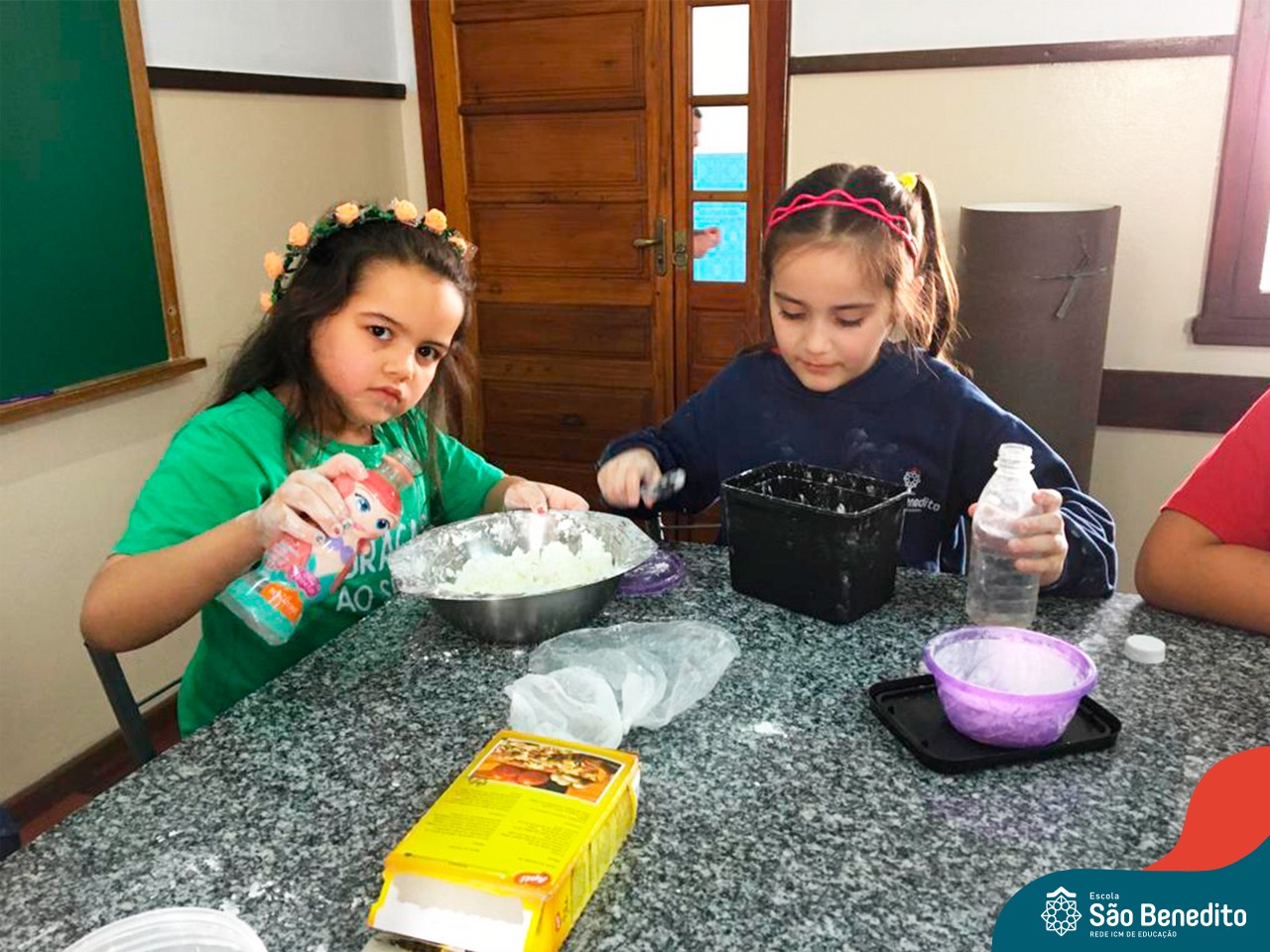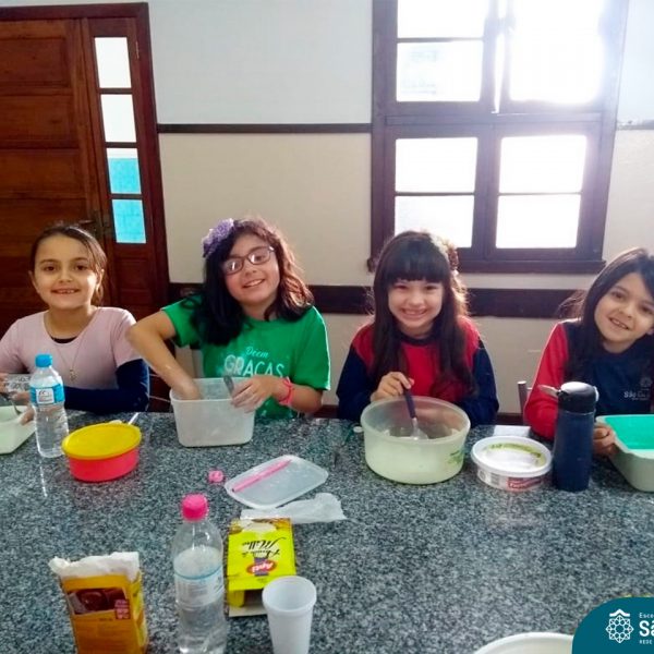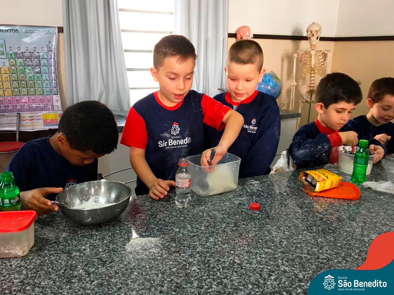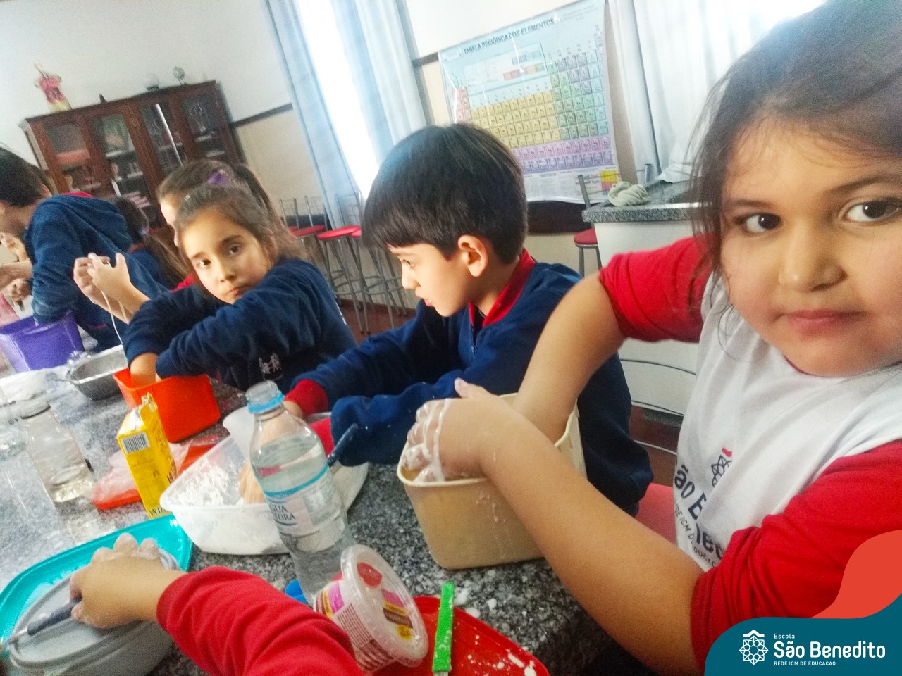 Quem disse que a ciência não pode ser muito divertida? As turmas do 2º Ano participaram de uma aula prática no Laboratório de Ciências que arrancou muitos sorrisos. O aprendizado da vez foi sobre as medidas de massa e capacidade, e se deu através do experimento “Massa Maluca”, que foi confeccionada pelos alunos, podendo possuir dois estados: sólido e líquido.