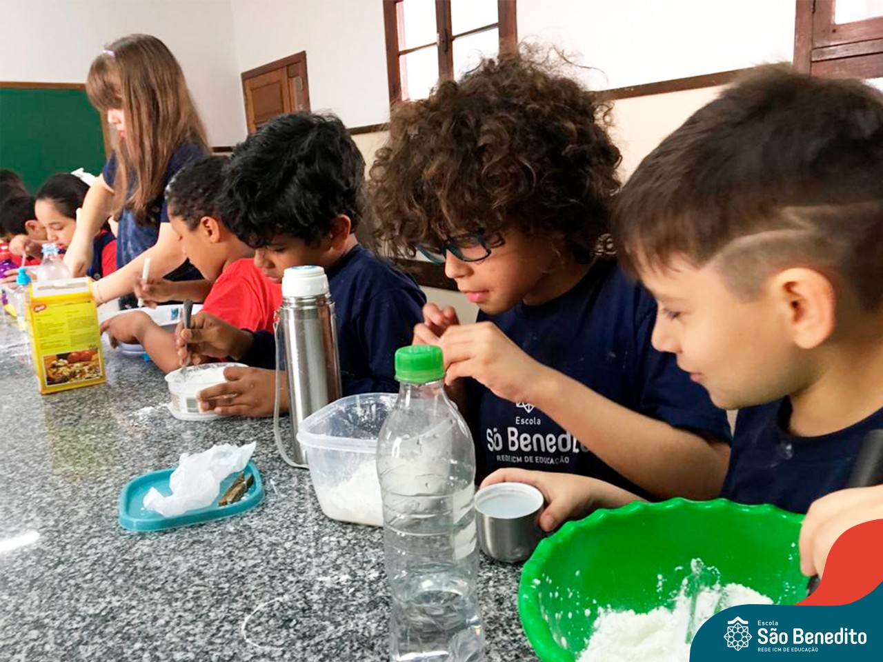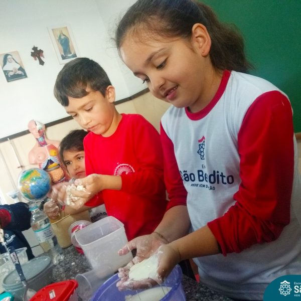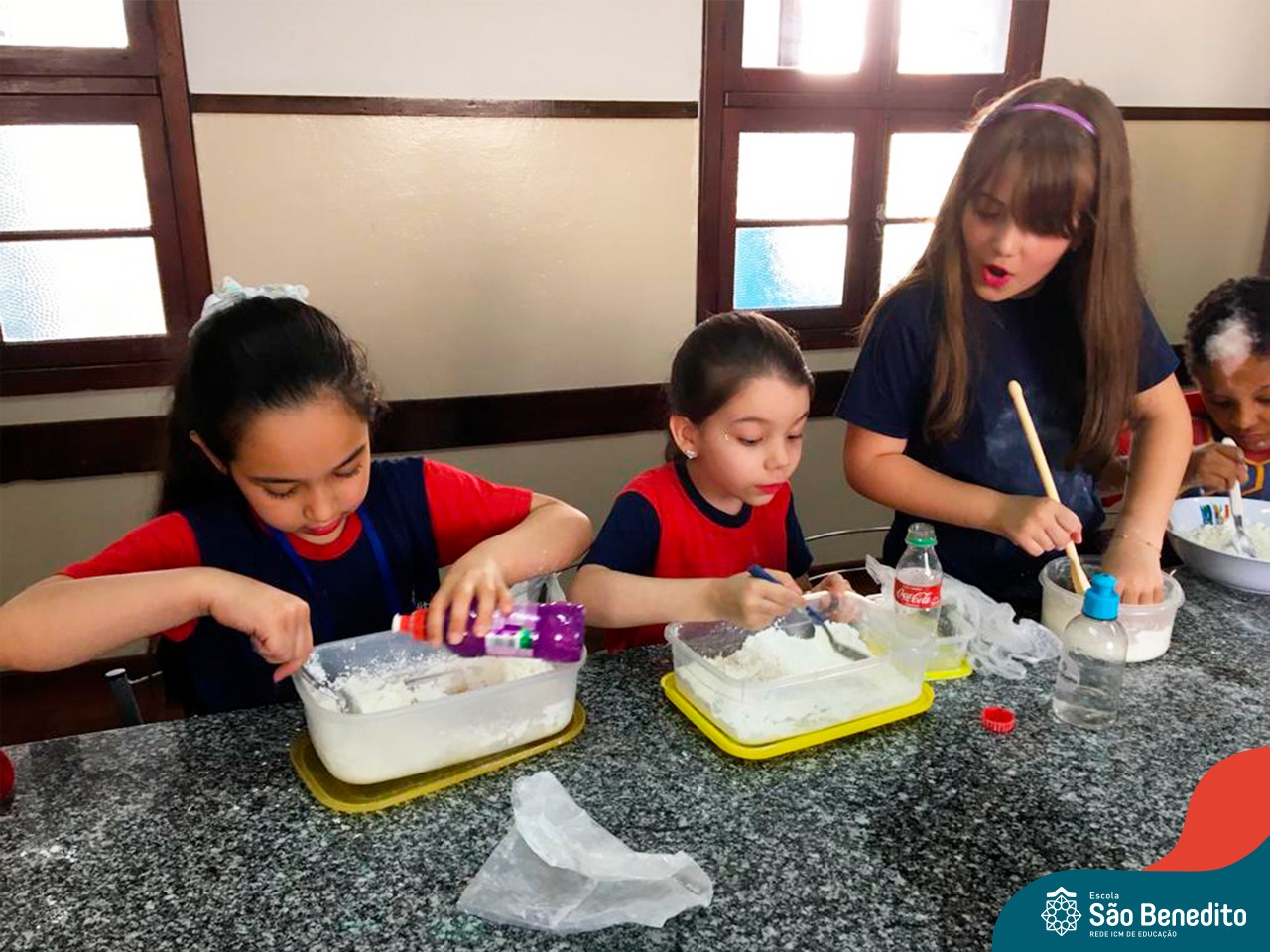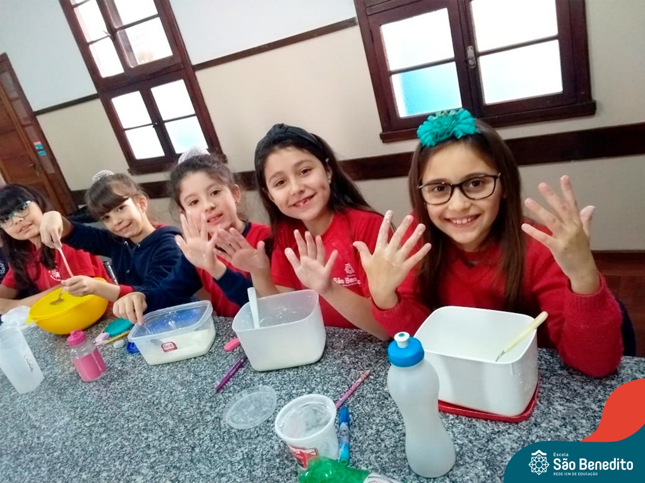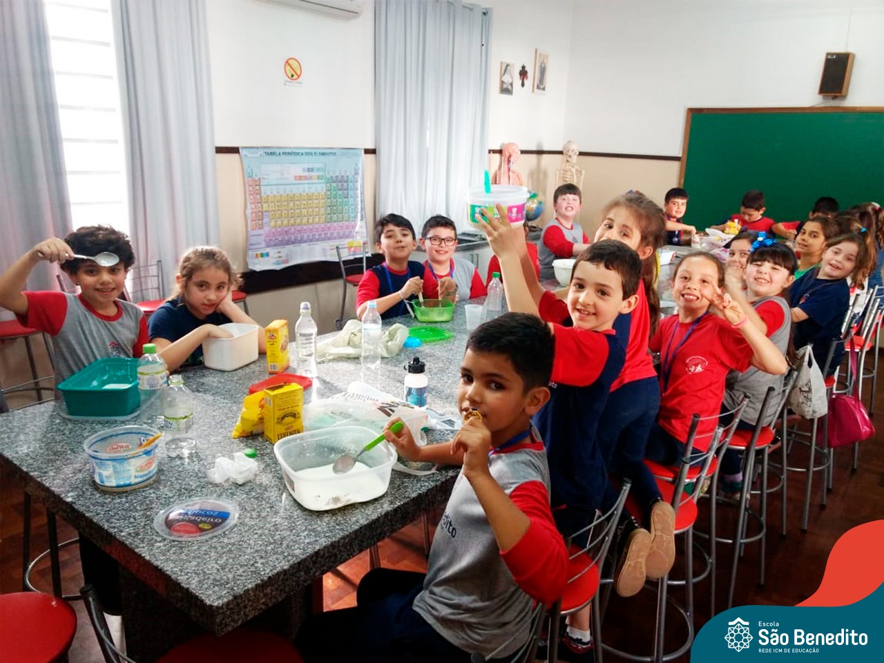 Quem disse que a ciência não pode ser muito divertida? As turmas do 2º Ano participaram de uma aula prática no Laboratório de Ciências que arrancou muitos sorrisos. O aprendizado da vez foi sobre as medidas de massa e capacidade, e se deu através do experimento “Massa Maluca”, que foi confeccionada pelos alunos, podendo possuir dois estados: sólido e líquido.