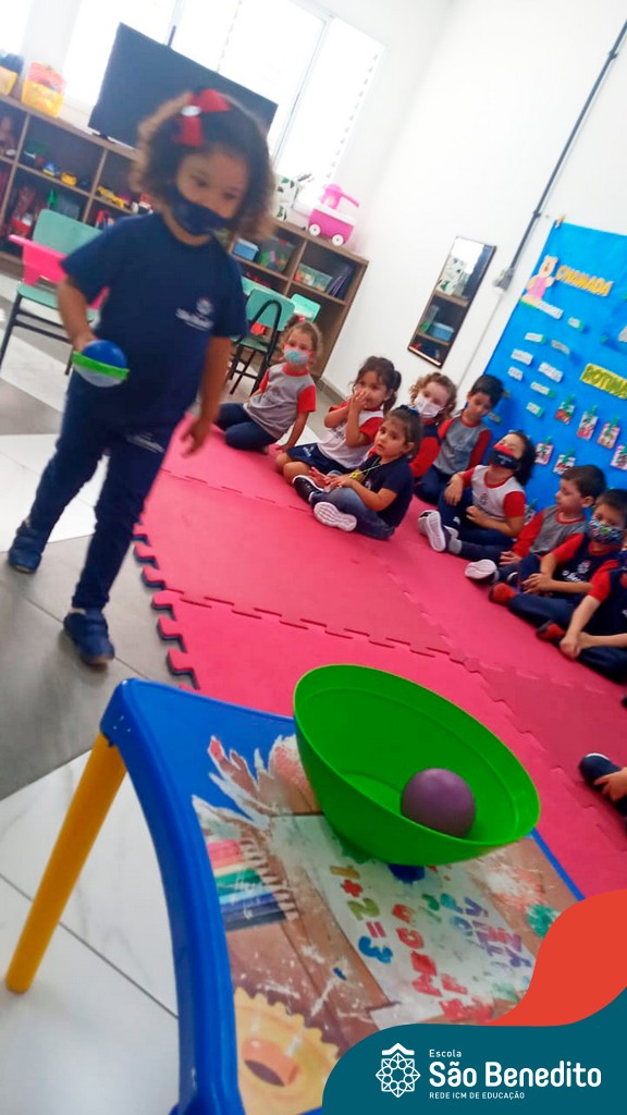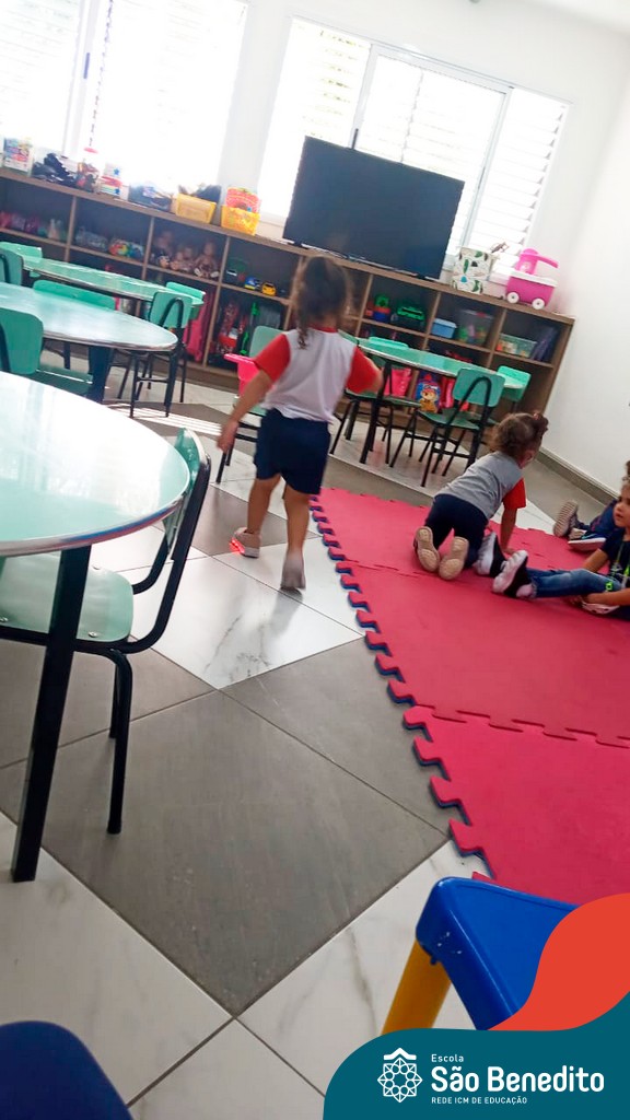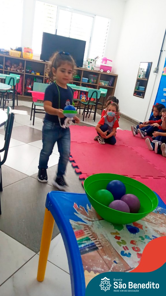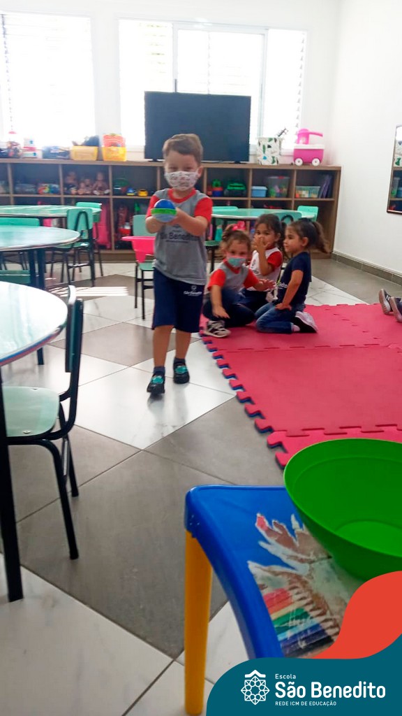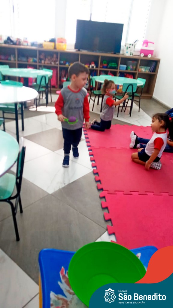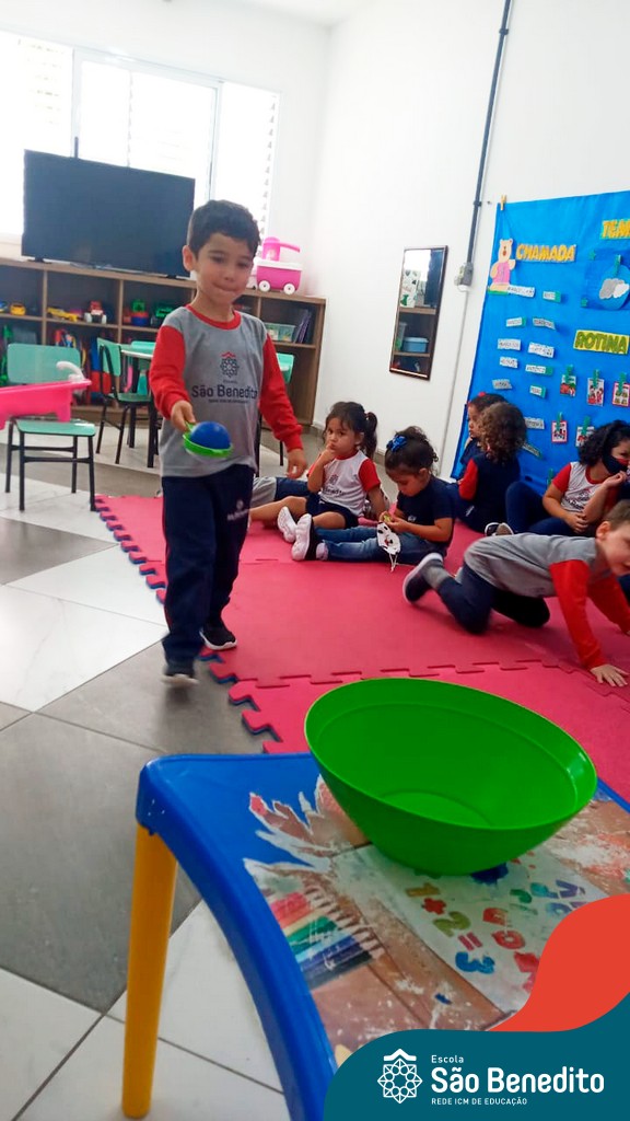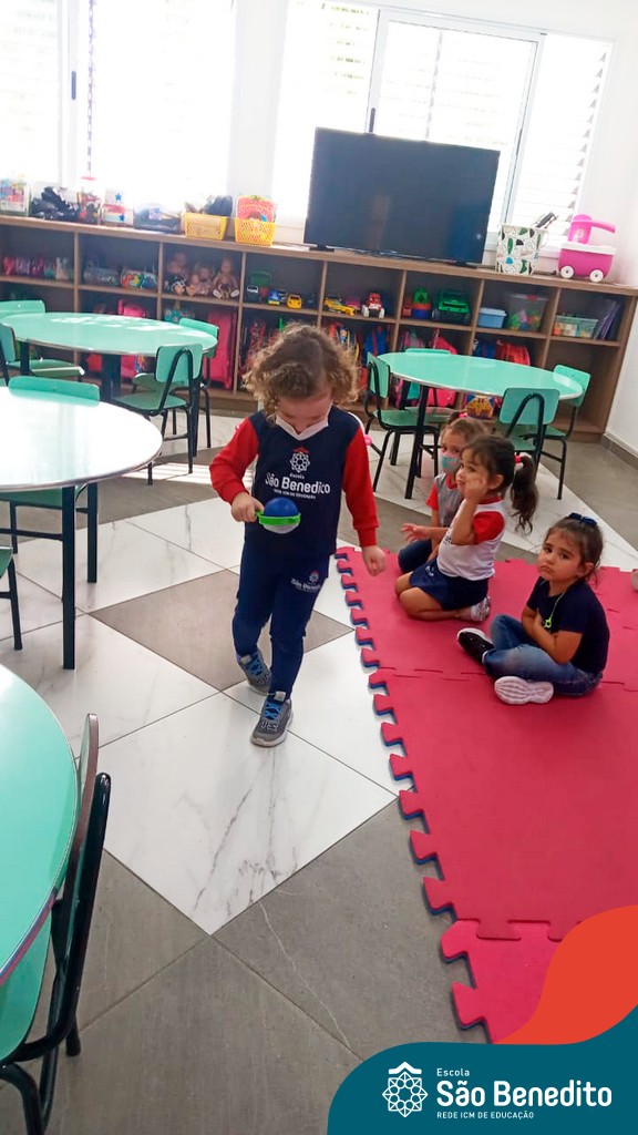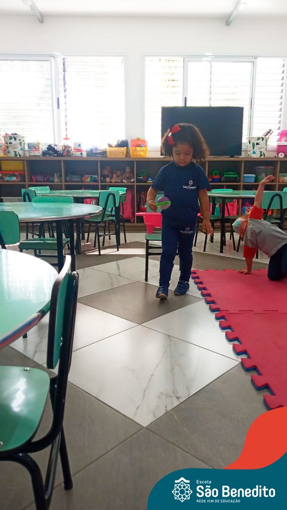 A turma do Maternal da professora Camile, trabalhou com um circuito feito com bambolês. As atividades dirigidas foram marcadas por muita música e brincadeiras. O intuito foi trabalhar o equilíbrio das crianças.