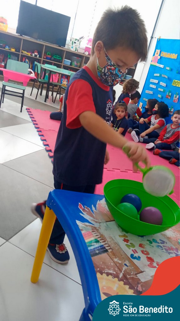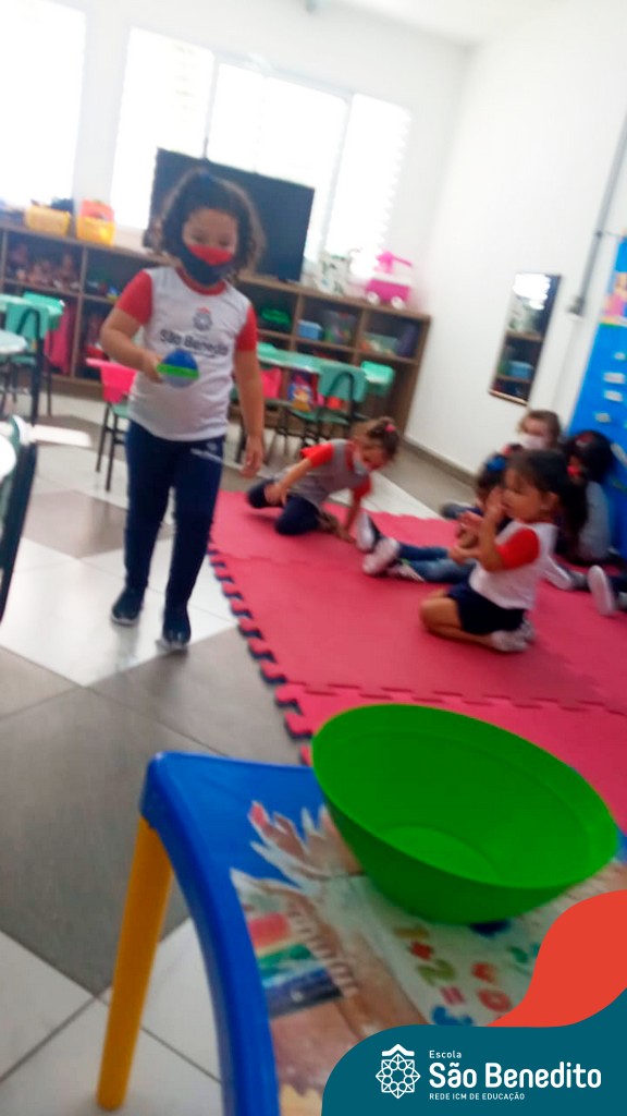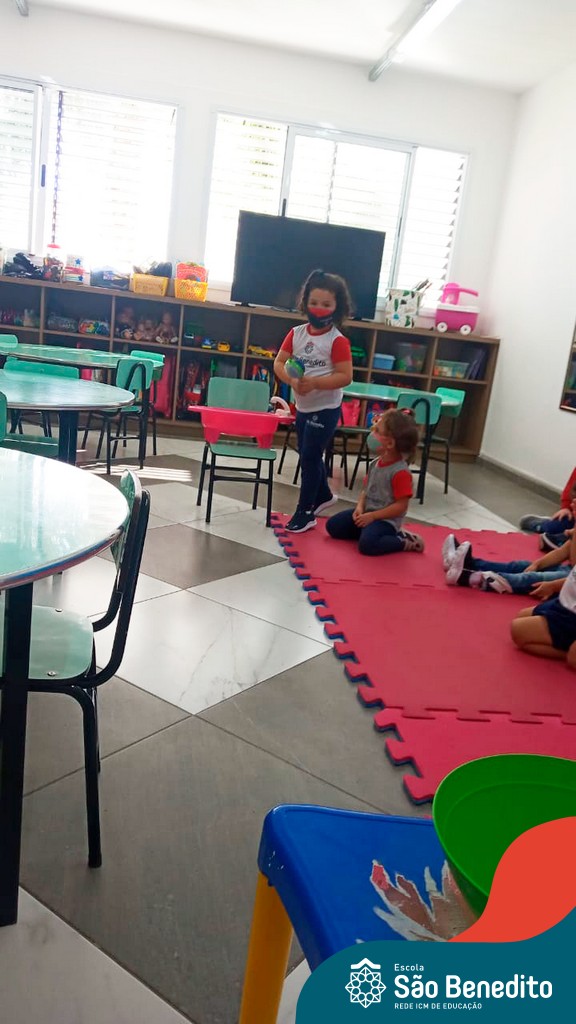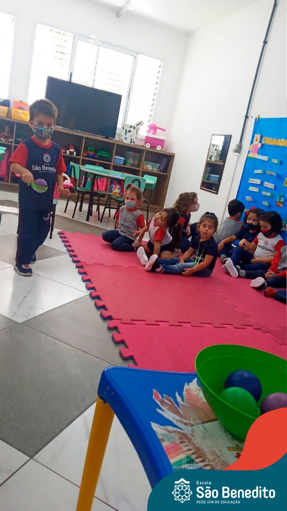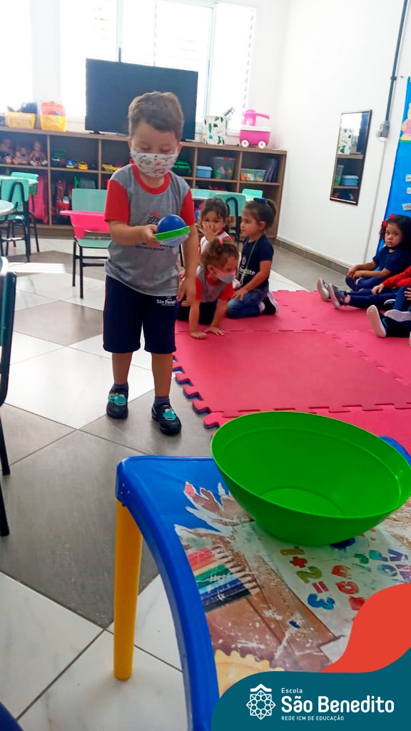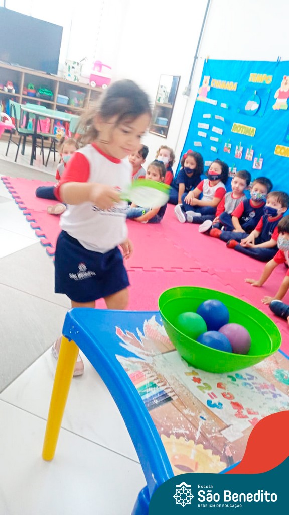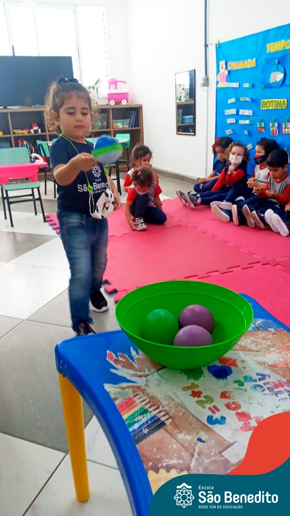 A turma do Maternal da professora Camile, trabalhou com um circuito feito com bambolês. As atividades dirigidas foram marcadas por muita música e brincadeiras. O intuito foi trabalhar o equilíbrio das crianças.