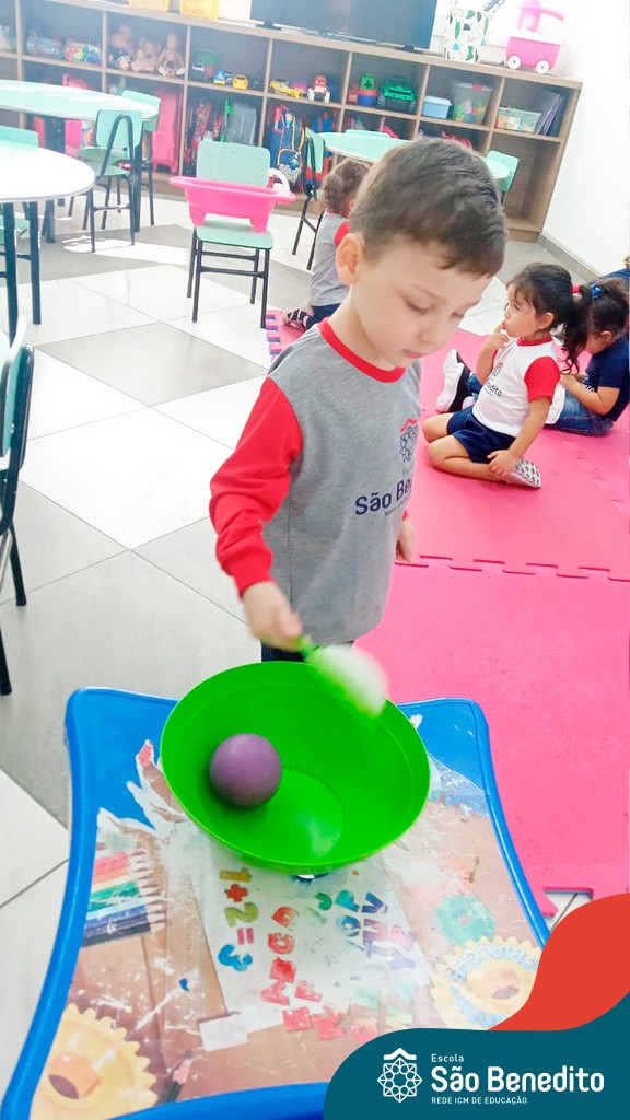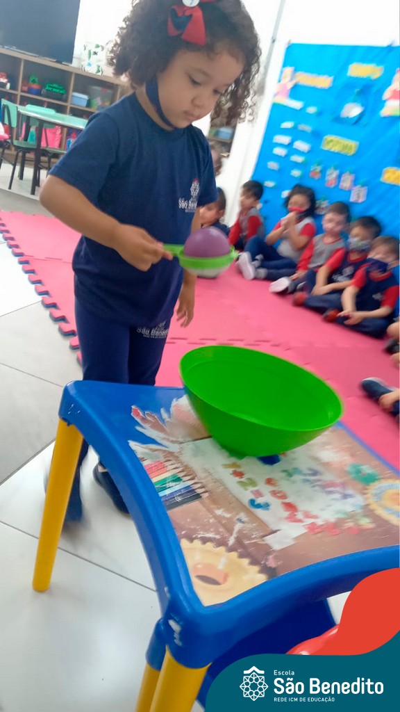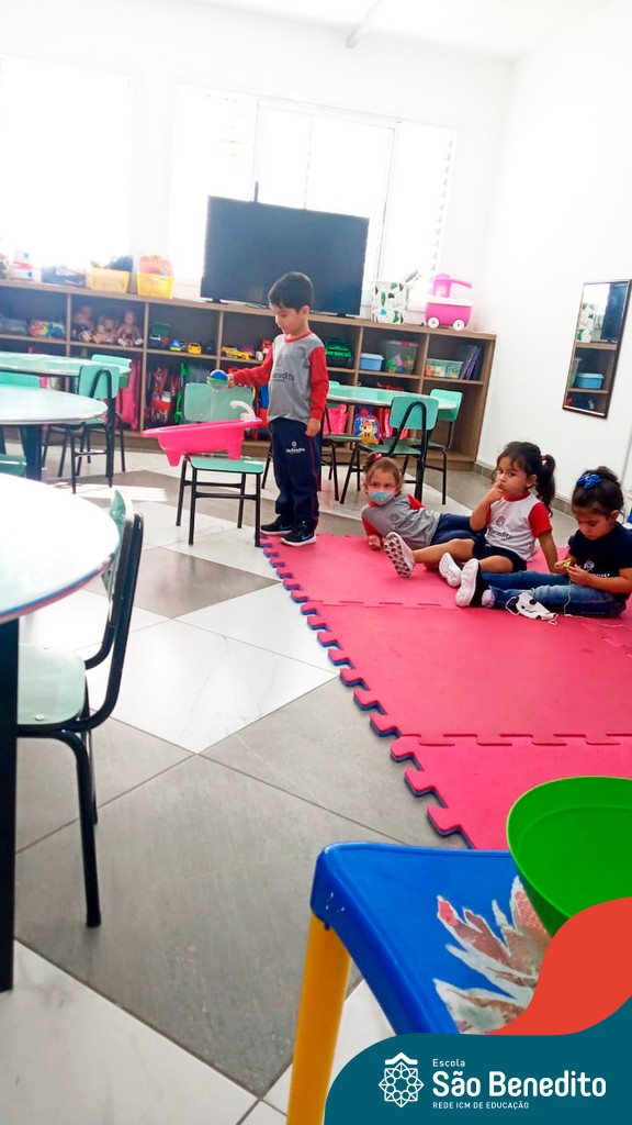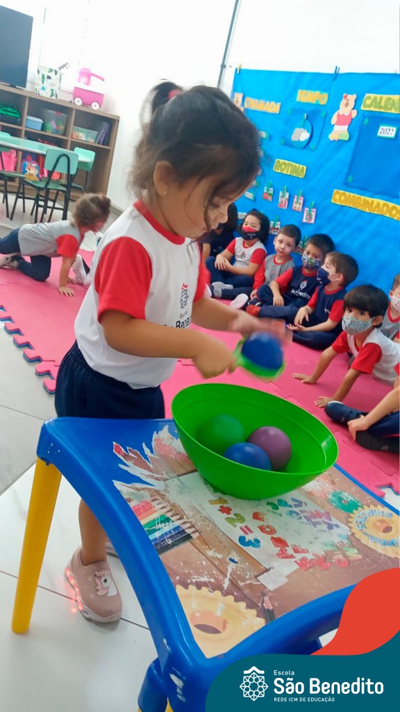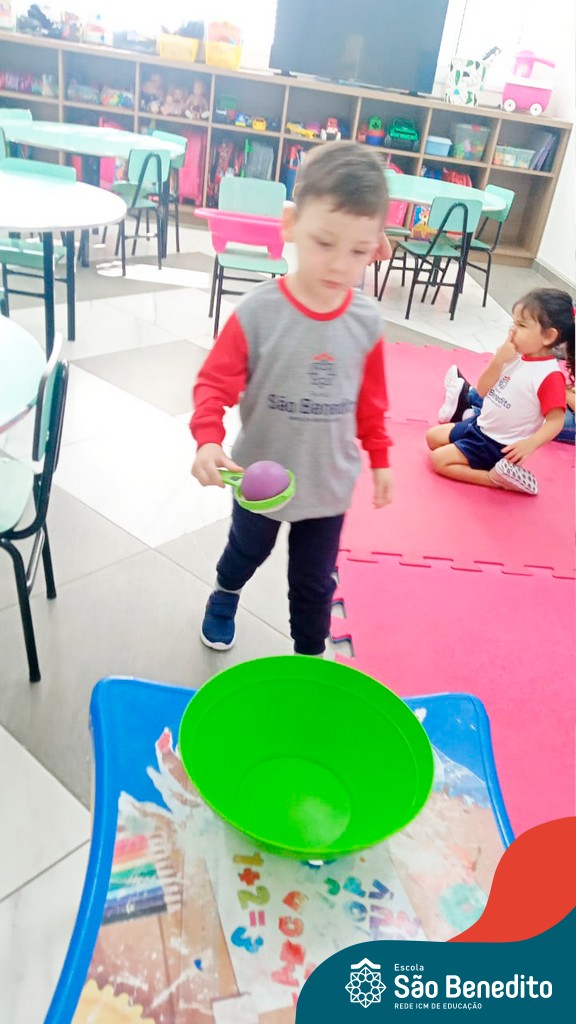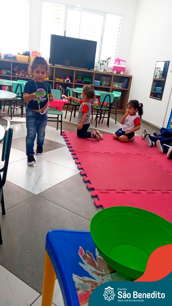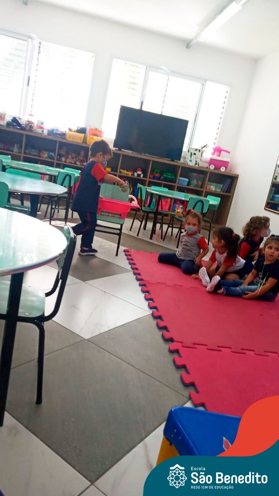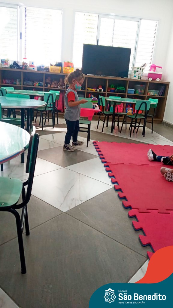 A turma do Maternal da professora Camile, trabalhou com um circuito feito com bambolês. As atividades dirigidas foram marcadas por muita música e brincadeiras. O intuito foi trabalhar o equilíbrio das crianças.