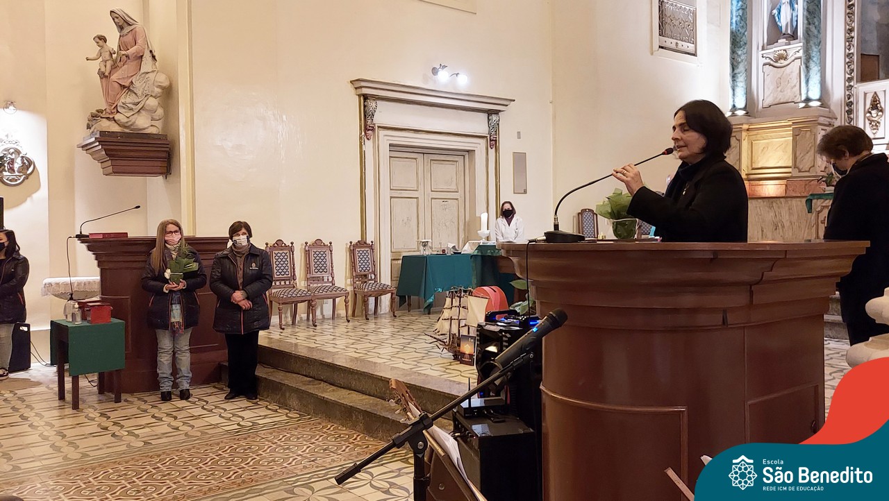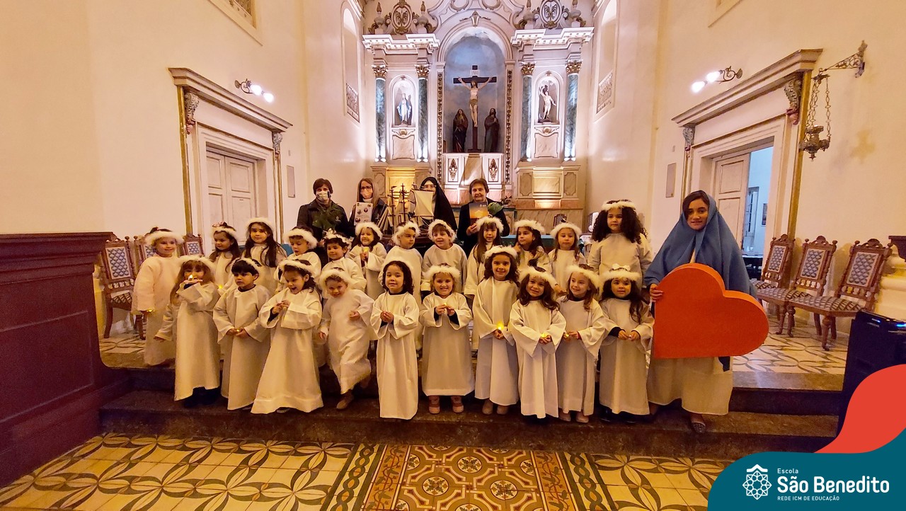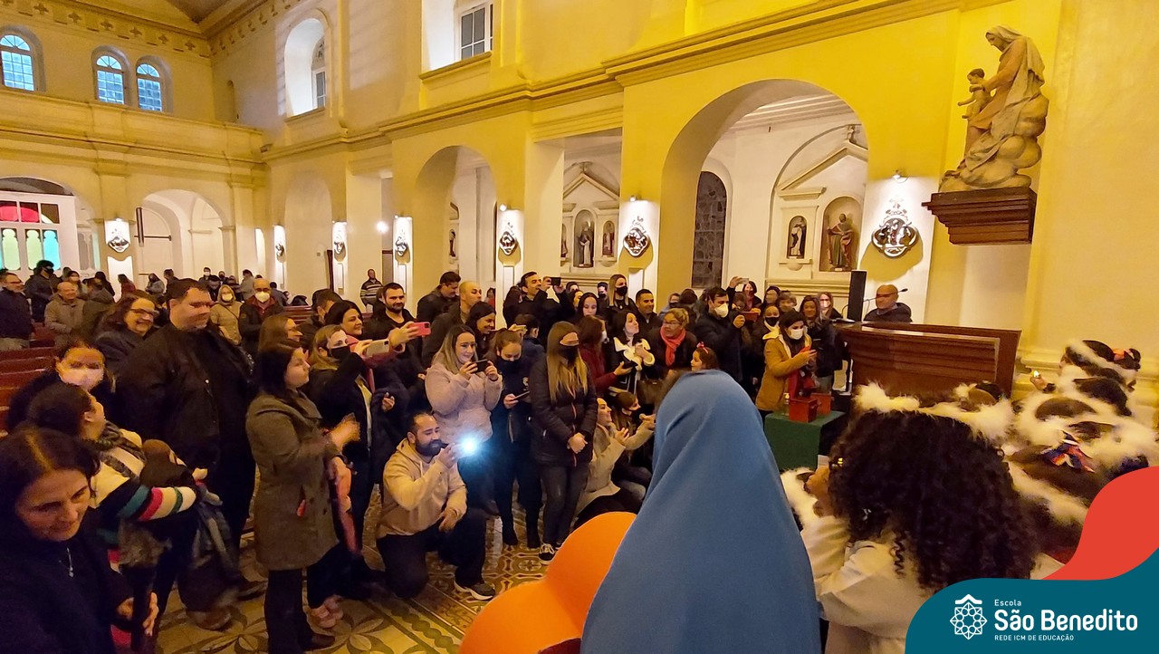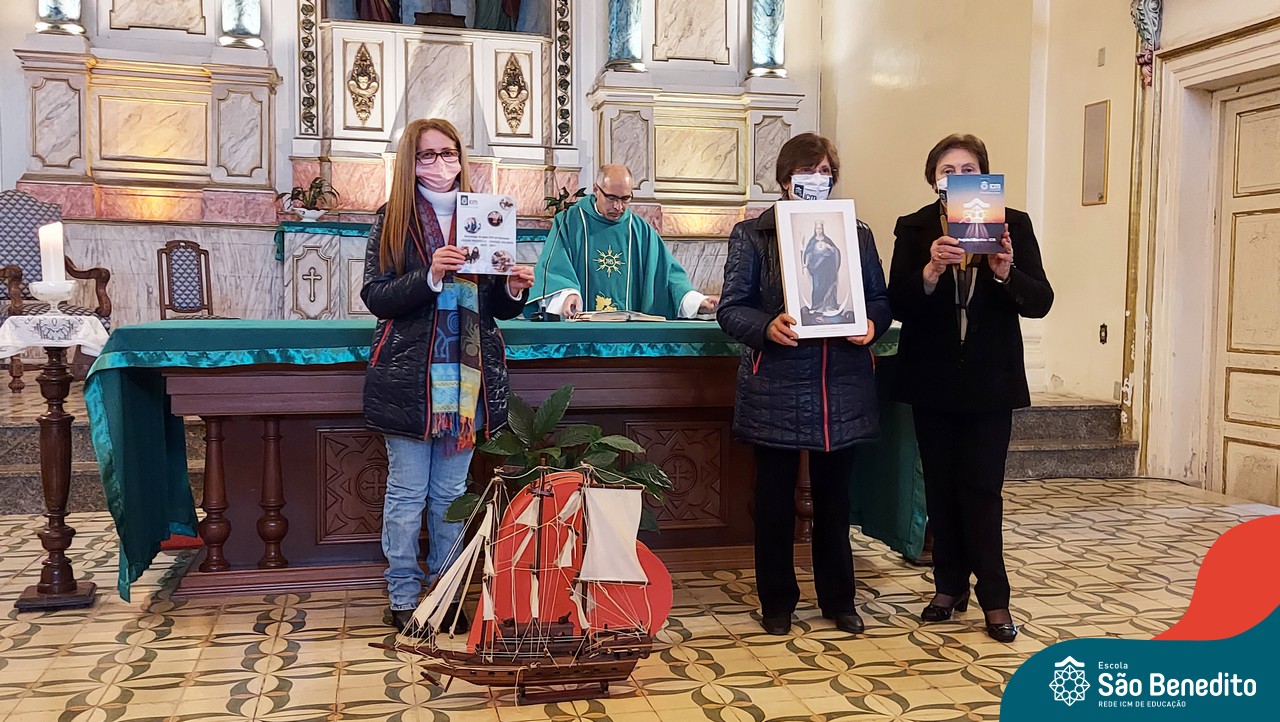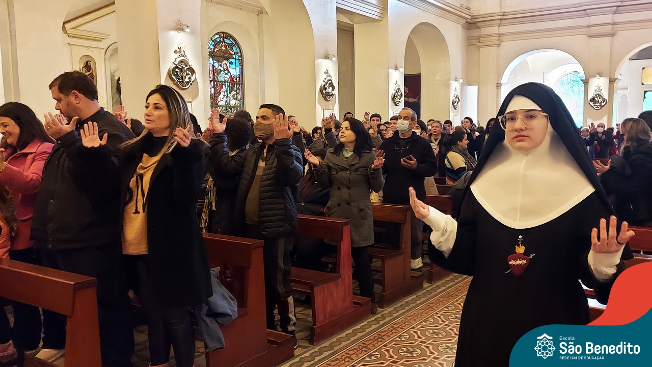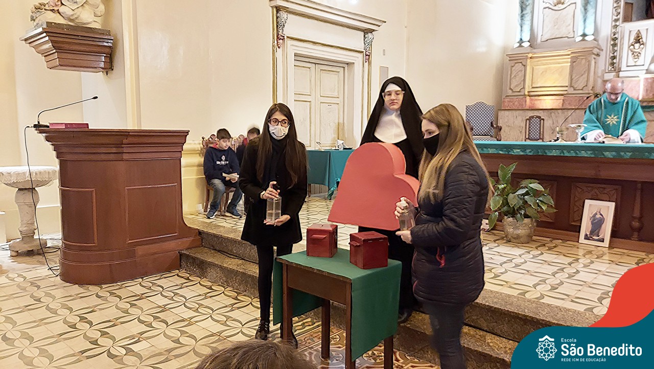 No momento do ofertório, foi feita a memória de suas cartas e ensinamentos, onde os estudantes, educadores e famílias, puderam depositar no “Cofre do Coração de Maria” suas preces, aflições e trabalhos. Confira:
