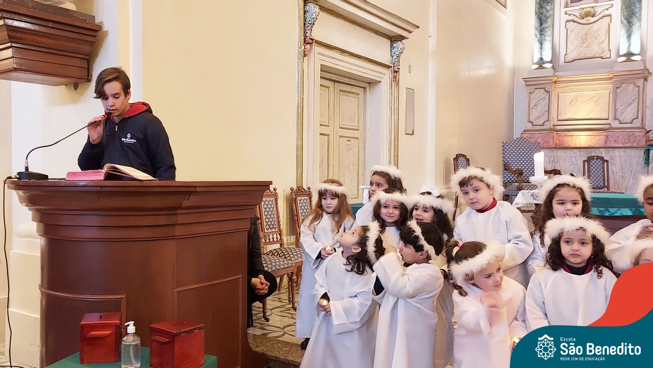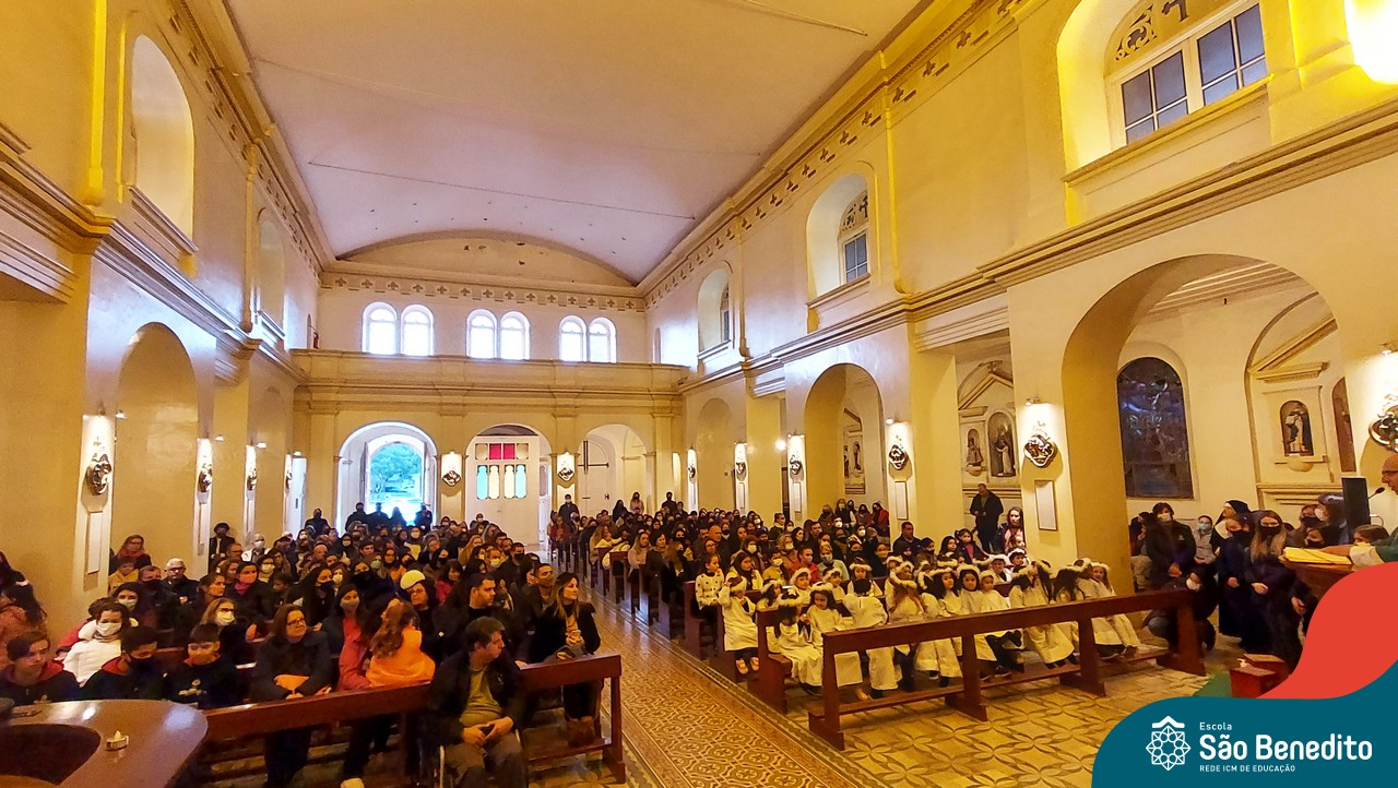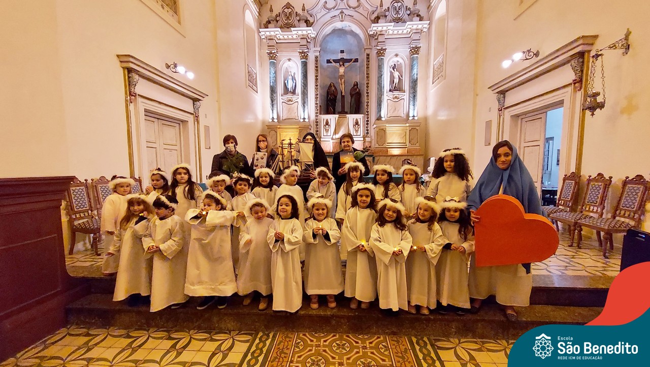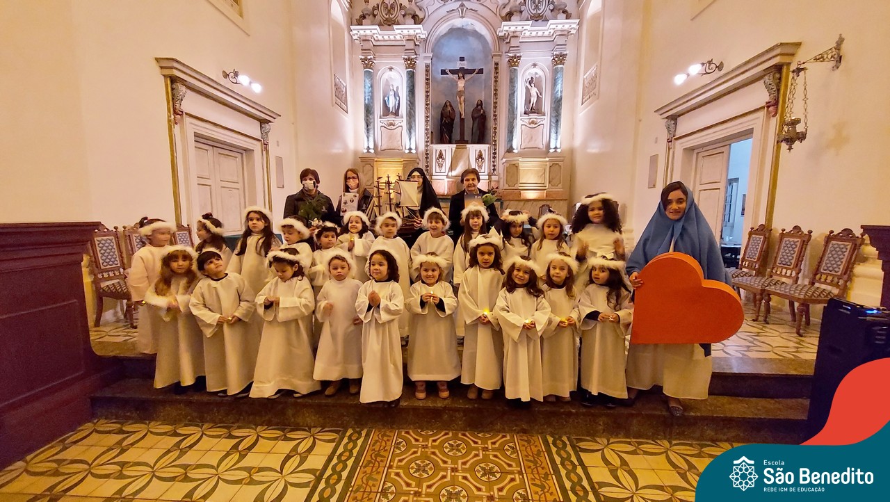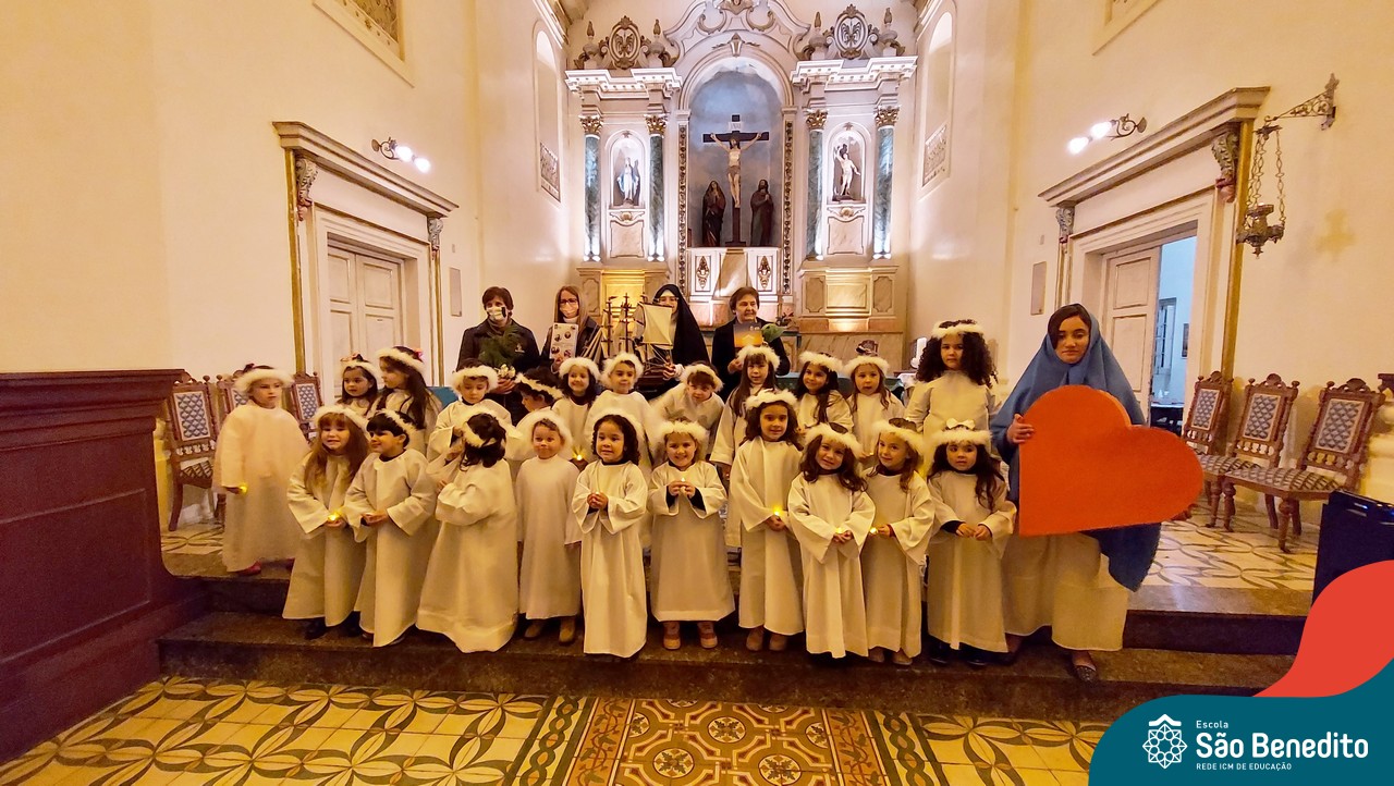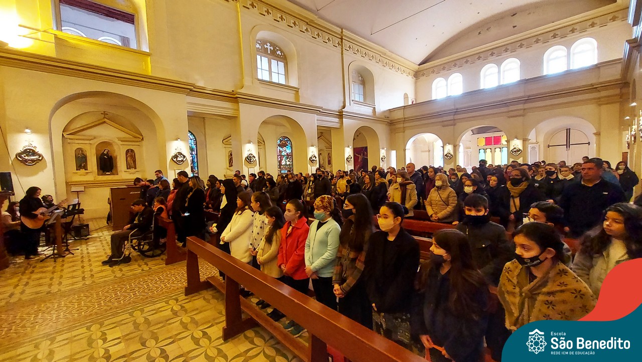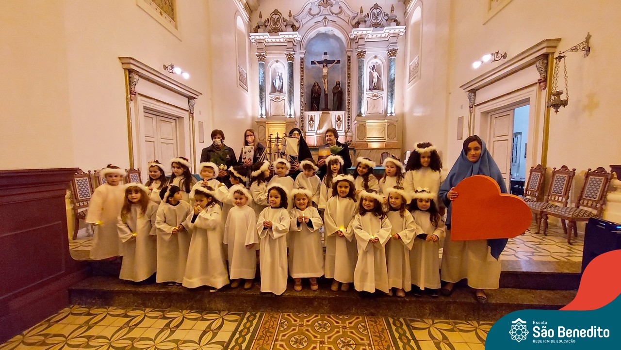 No momento do ofertório, foi feita a memória de suas cartas e ensinamentos, onde os estudantes, educadores e famílias, puderam depositar no “Cofre do Coração de Maria” suas preces, aflições e trabalhos. Confira: