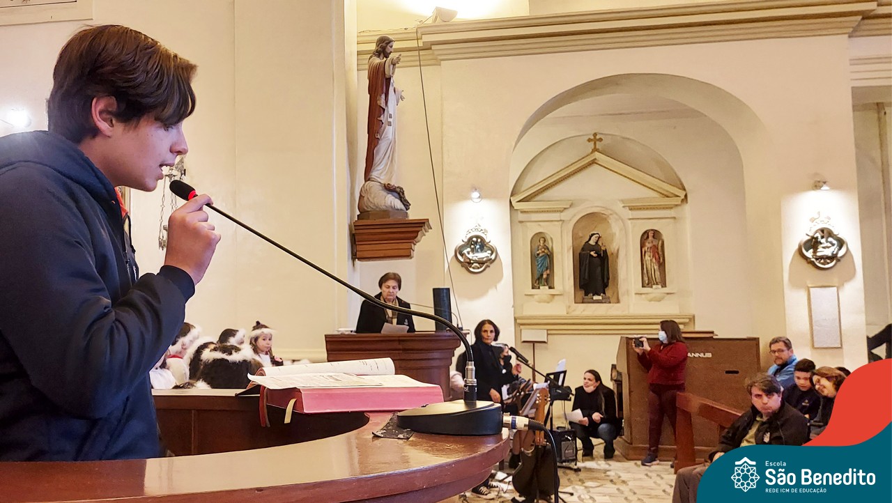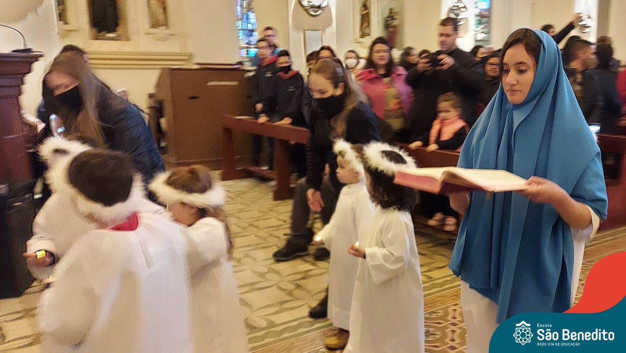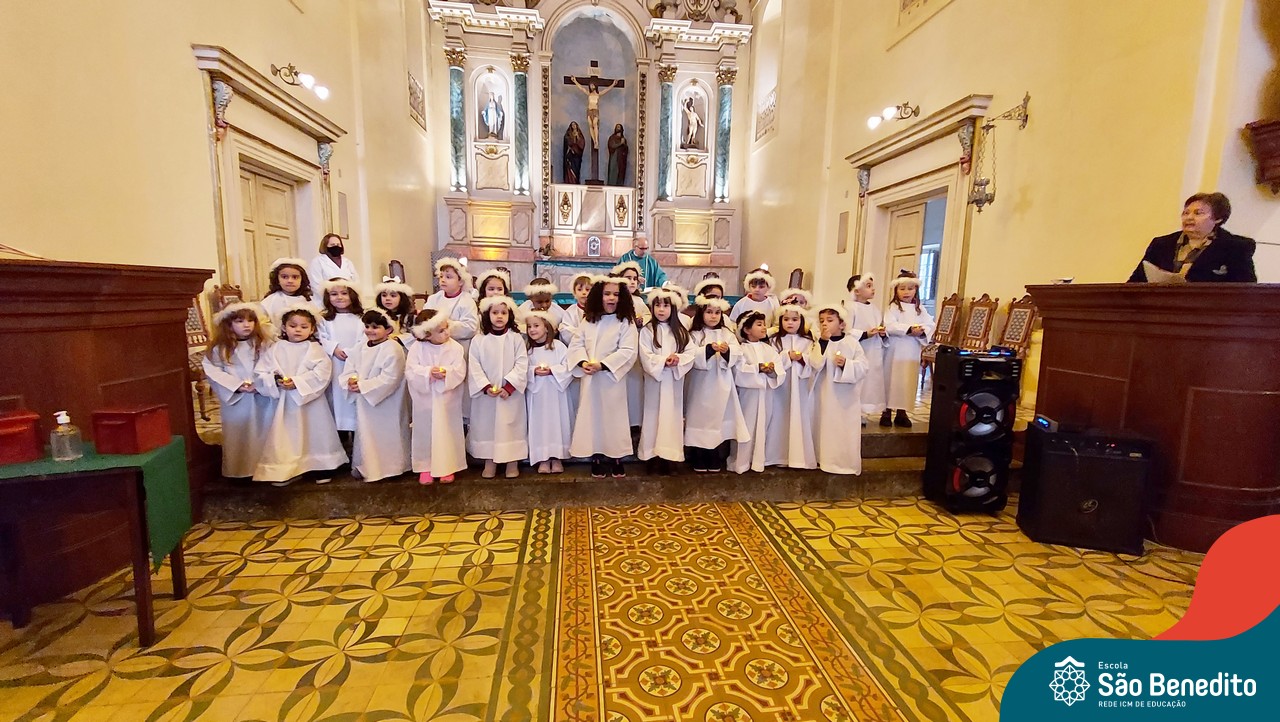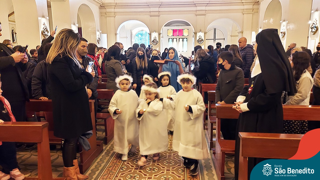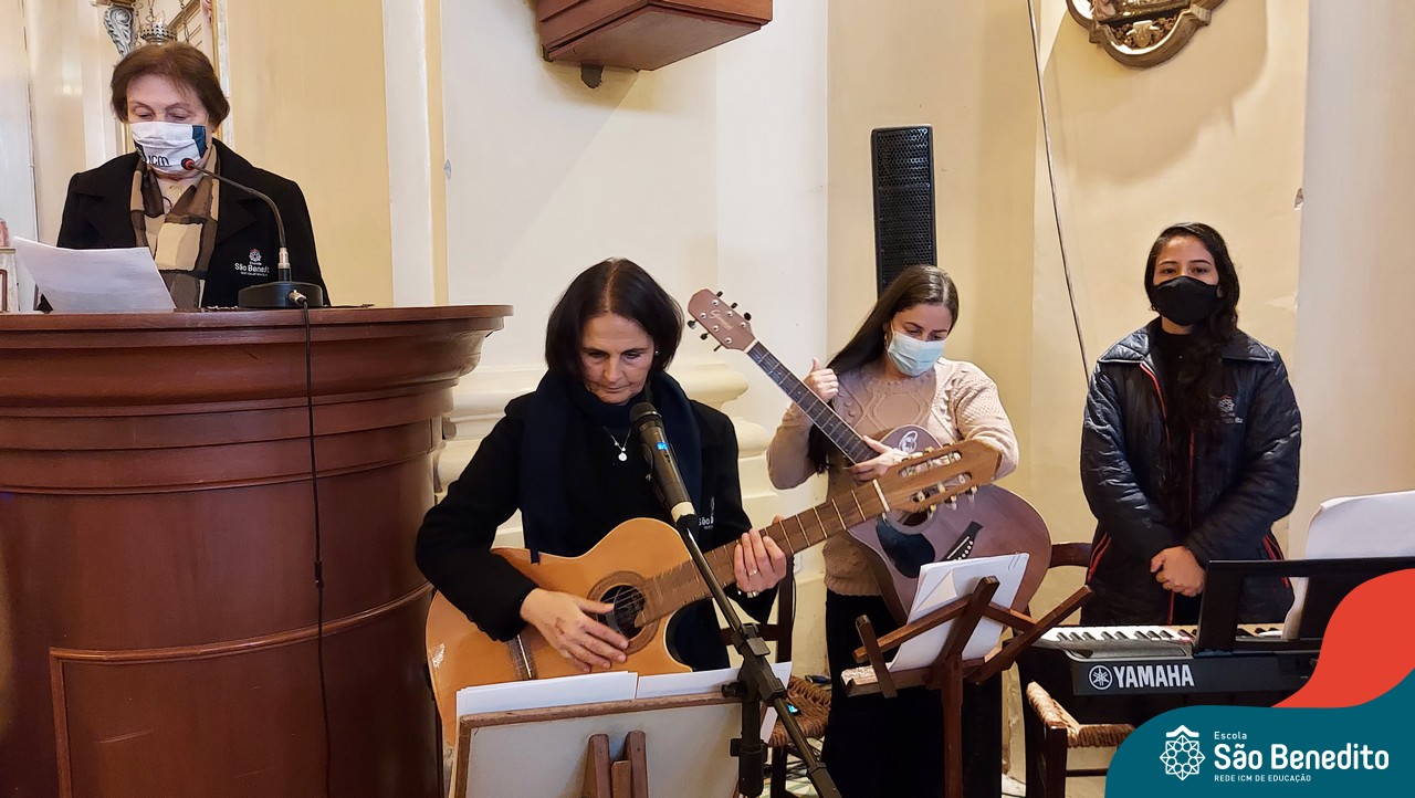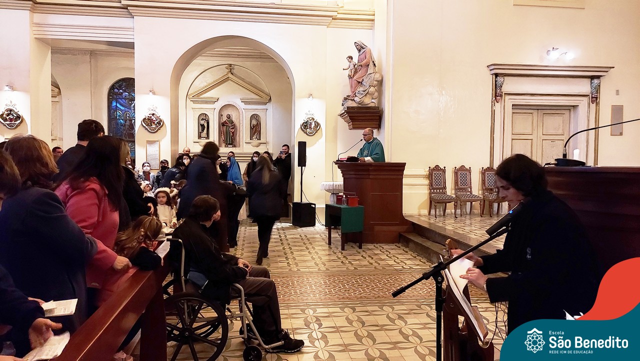 No momento do ofertório, foi feita a memória de suas cartas e ensinamentos, onde os estudantes, educadores e famílias, puderam depositar no “Cofre do Coração de Maria” suas preces, aflições e trabalhos. Confira: