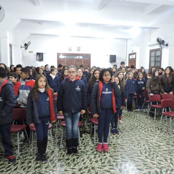 Tivemos atividades mais tradicionais, como o momento cívico, e também mais descontraídos, onde os próprios alunos puderam compartilhar seus conhecimentos acerca de Bagé, com seus colegas, através de uma linda apresentação. Confira: