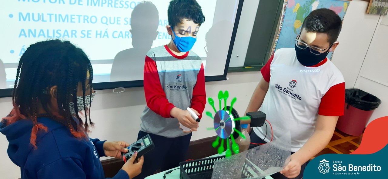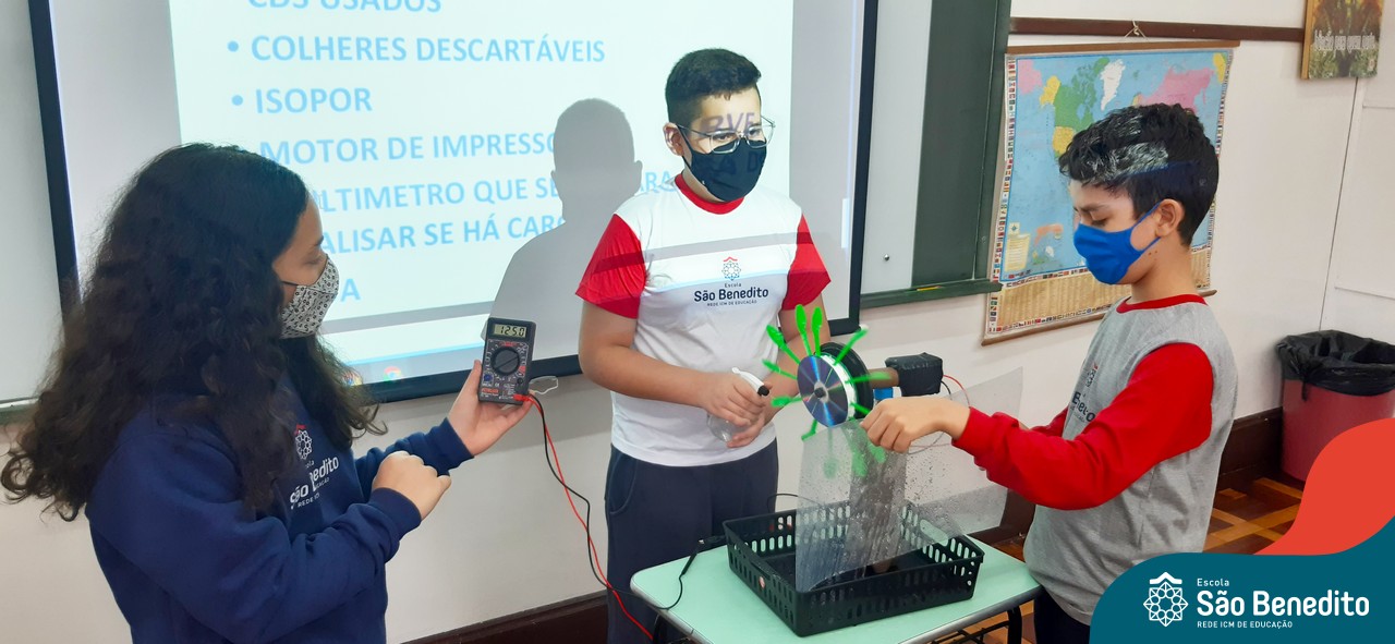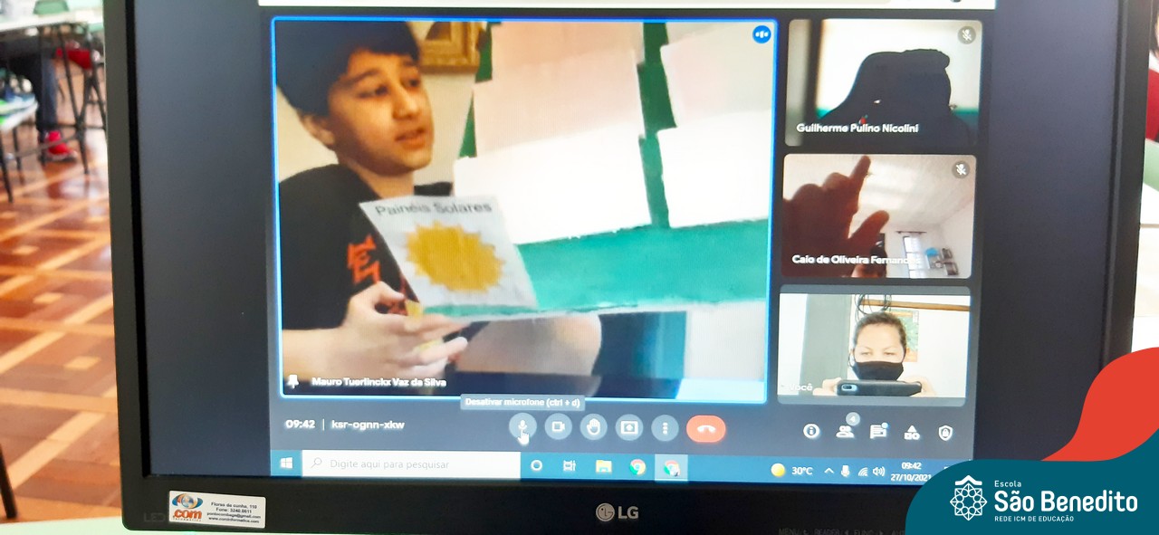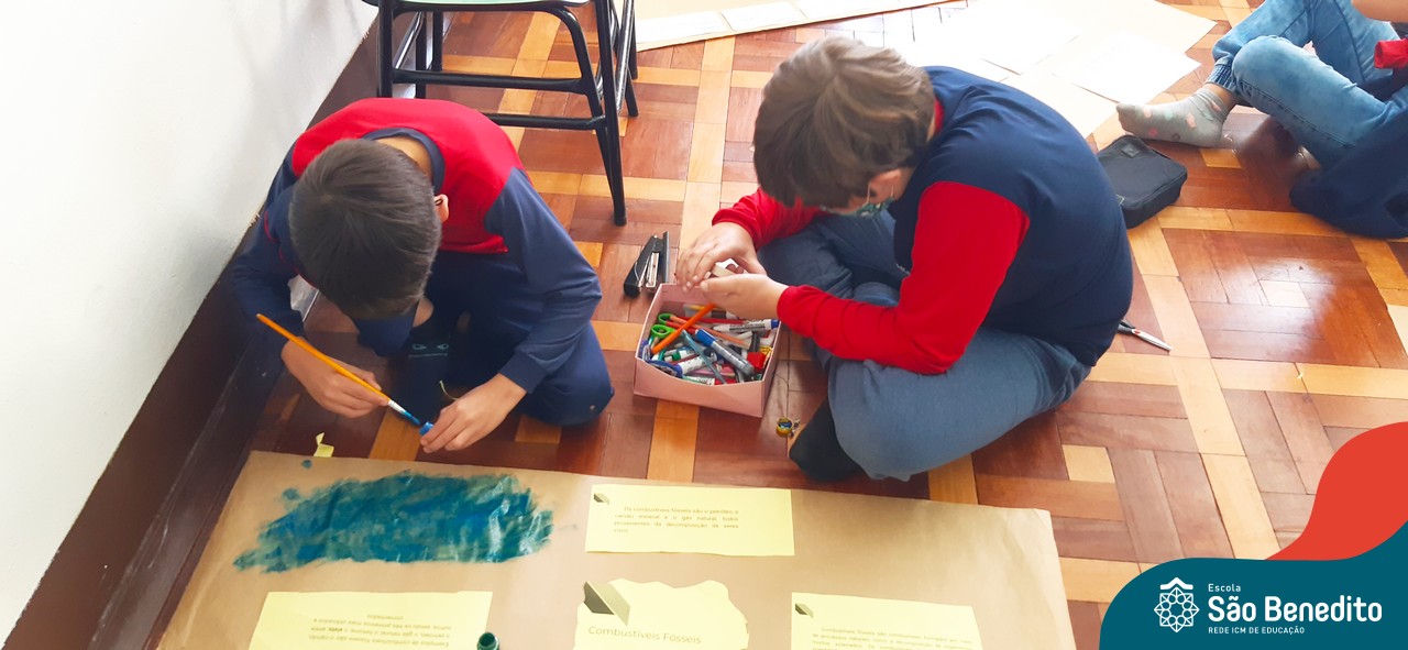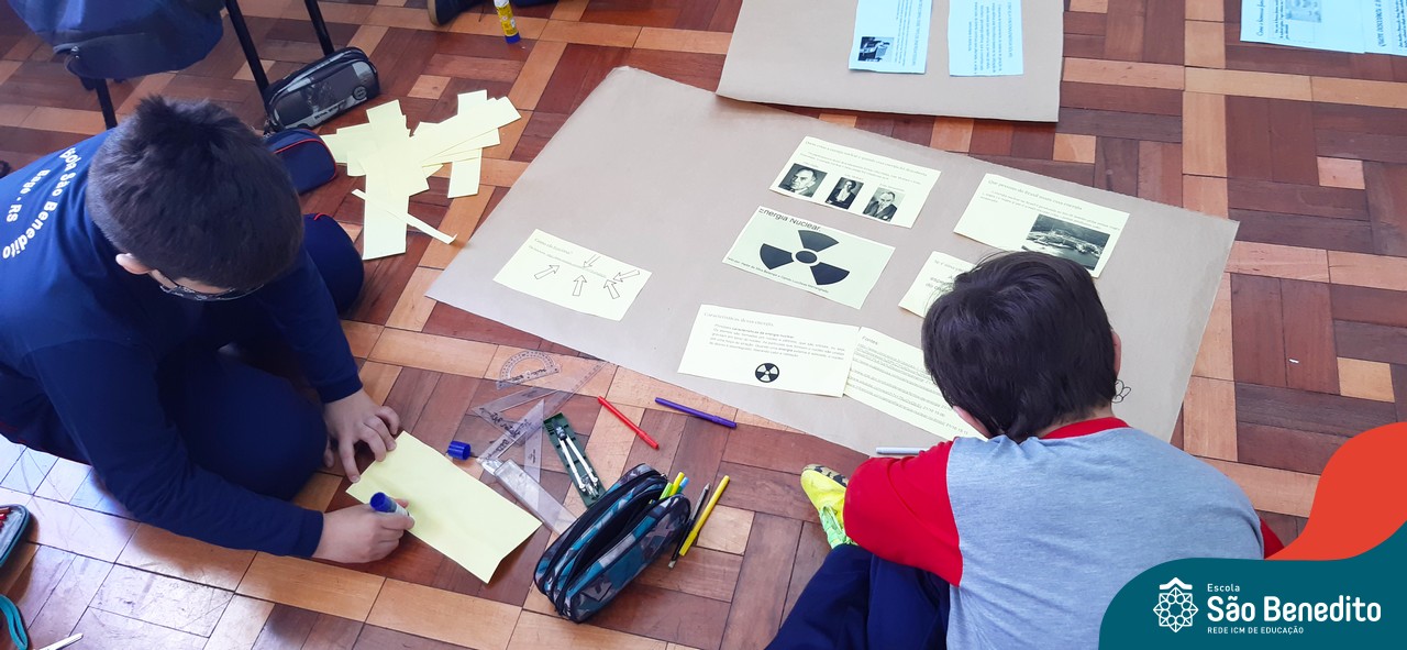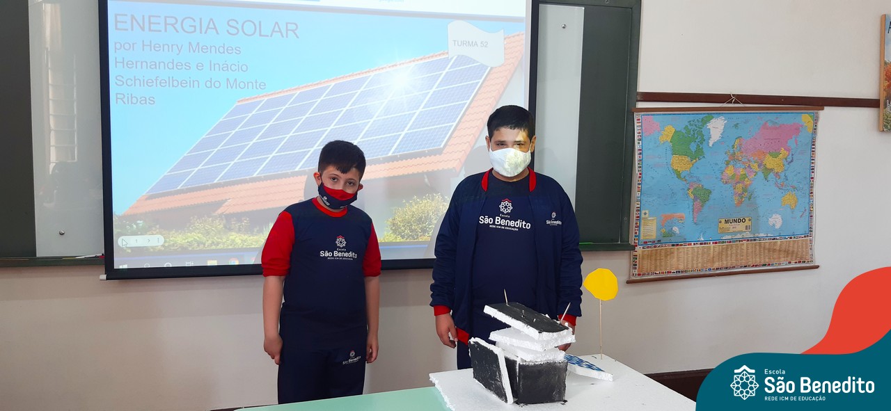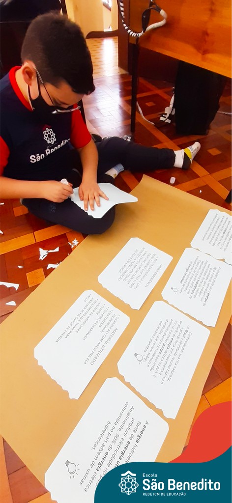 Os preparativos para a Feira de Ciências 2021, que acontecerá no dia 23 de novembro, estão a mil. Os estudantes do 5º Ano já planejaram seus projetos com o tema “Fonte que produz energia elétrica”, e chegaram hoje, na 3ª etapa, onde produziram os murais para a apresentação oficial.