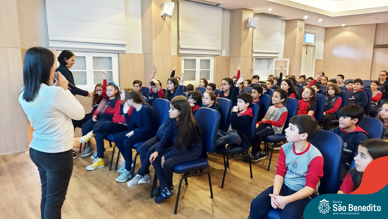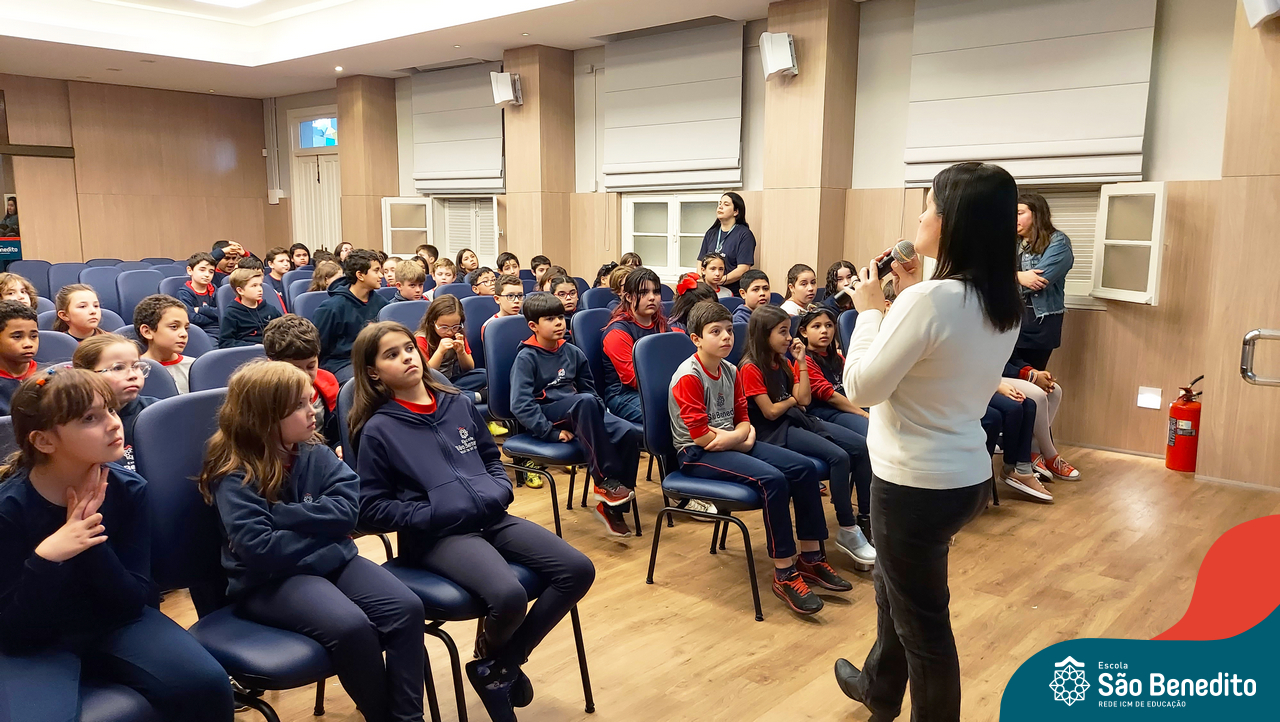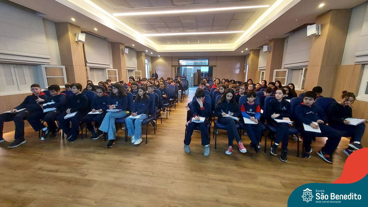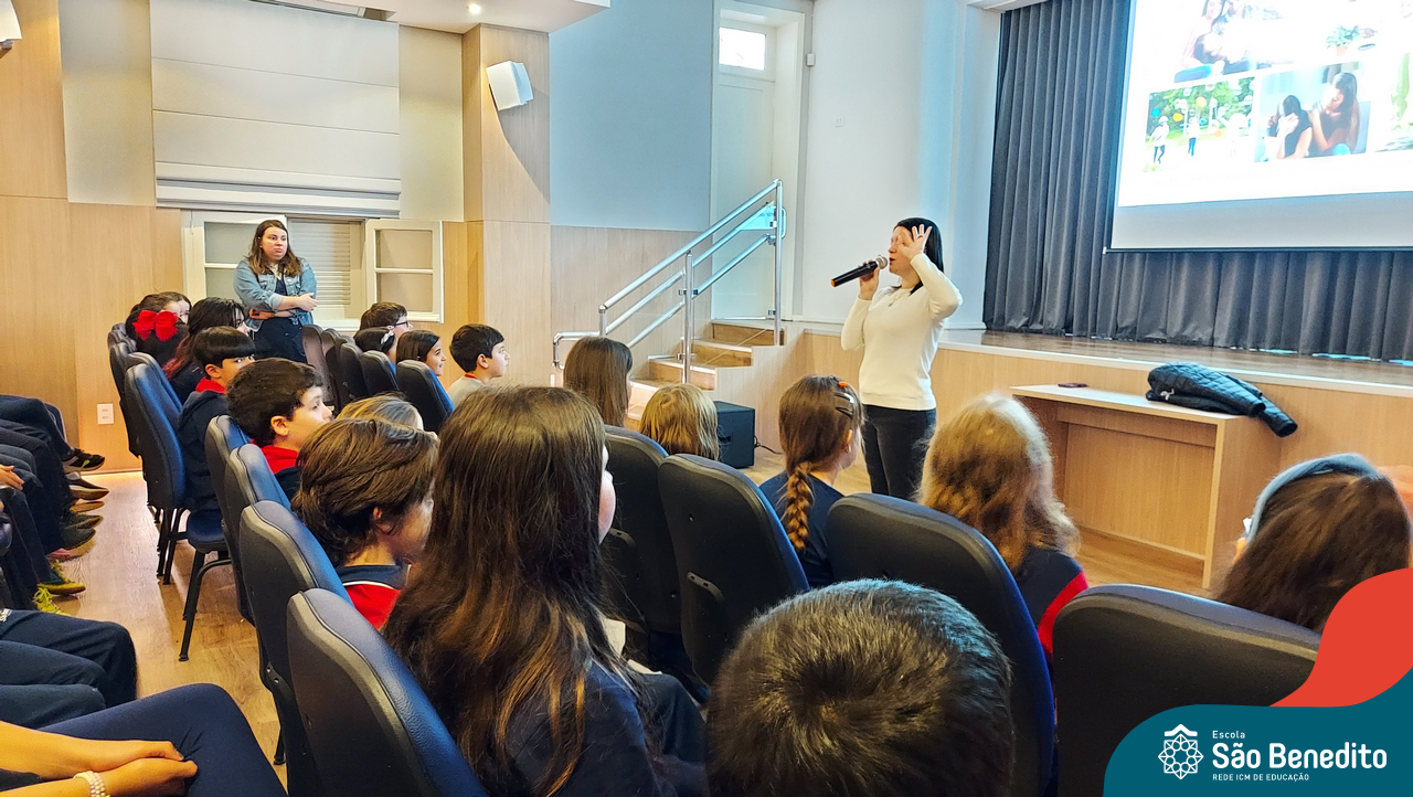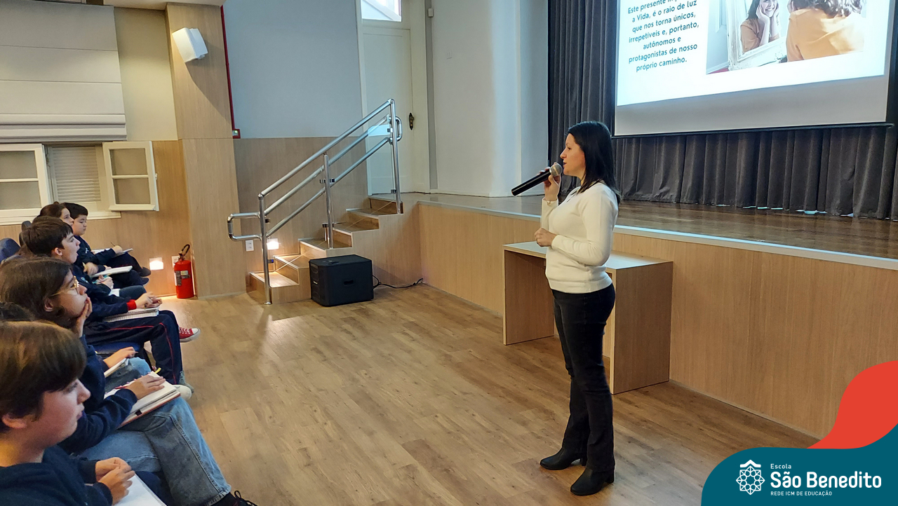 Nesta segunda-feira, os estudantes do Ensino Fundamental I e II participaram de um momento muito especial com a Irmã Meridiane Brum, Orientadora Educacional do Colégio Mãe de Deus de Porto Alegre (Unidade da Rede ICM). A proposta, que foi vinculada pela Pastoral Escolar, trabalhou o Projeto de Vida, partindo do chamado de Deus à vida e Seus propósitos para cada um de nós.