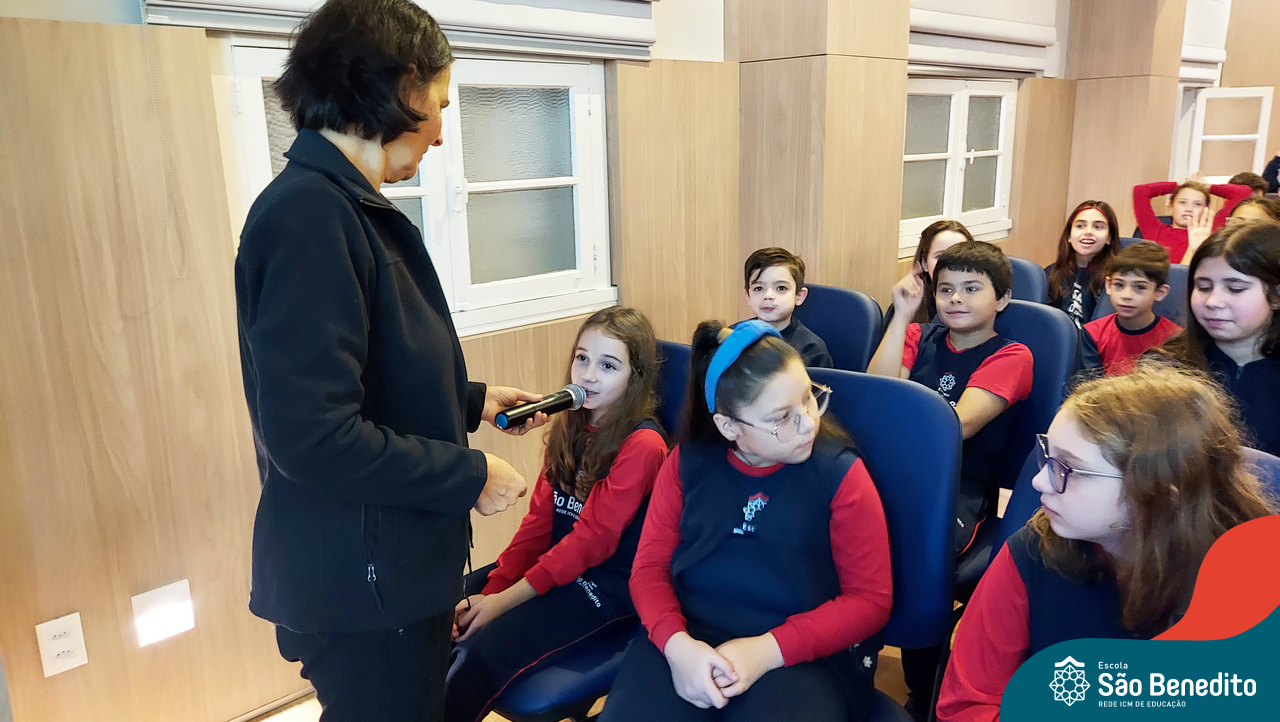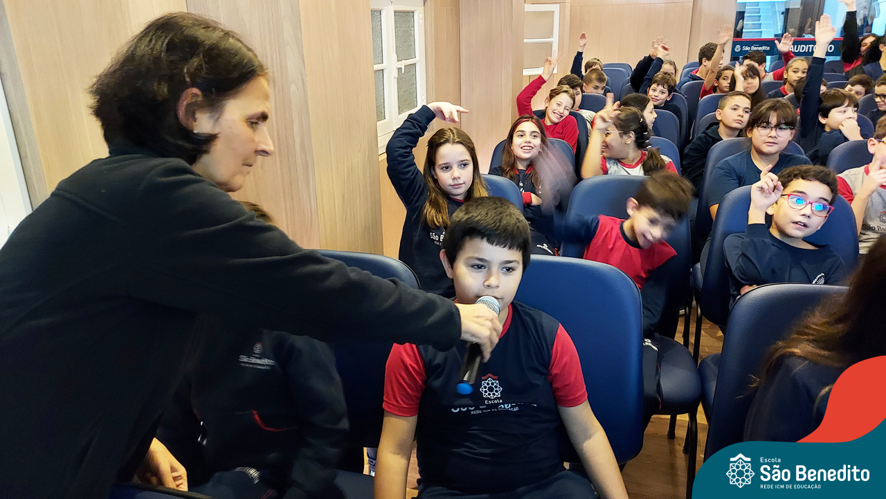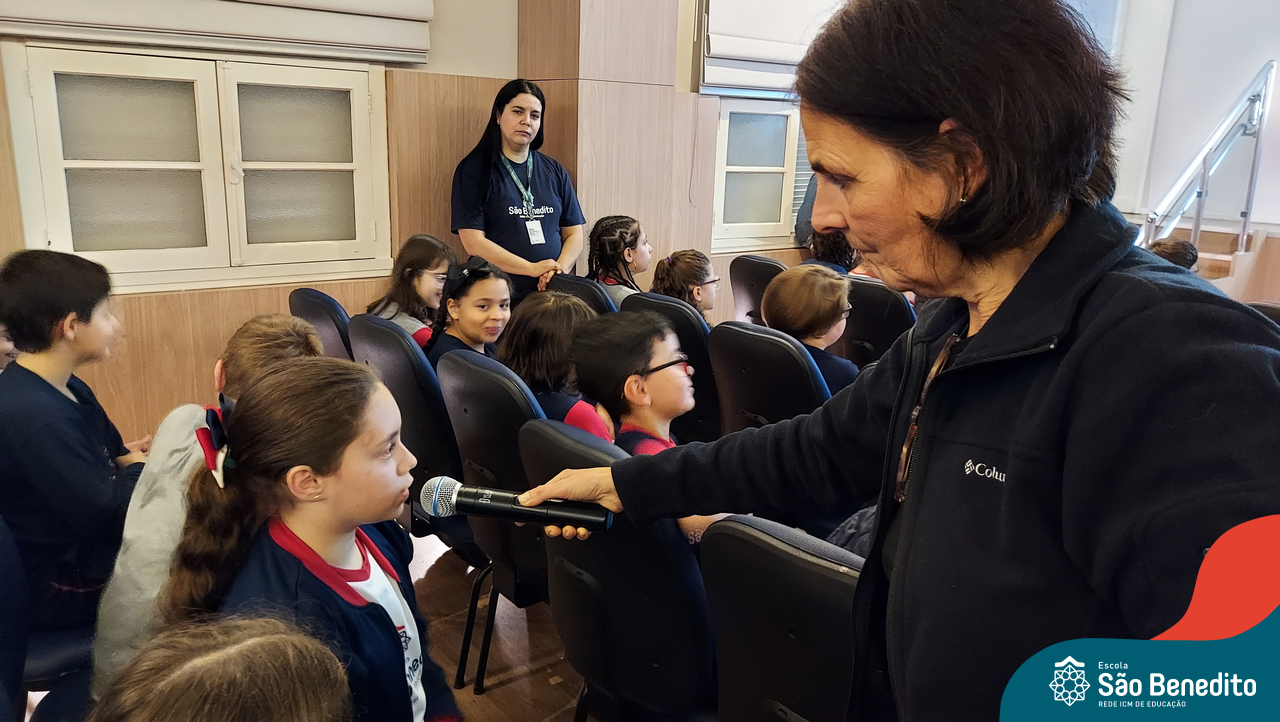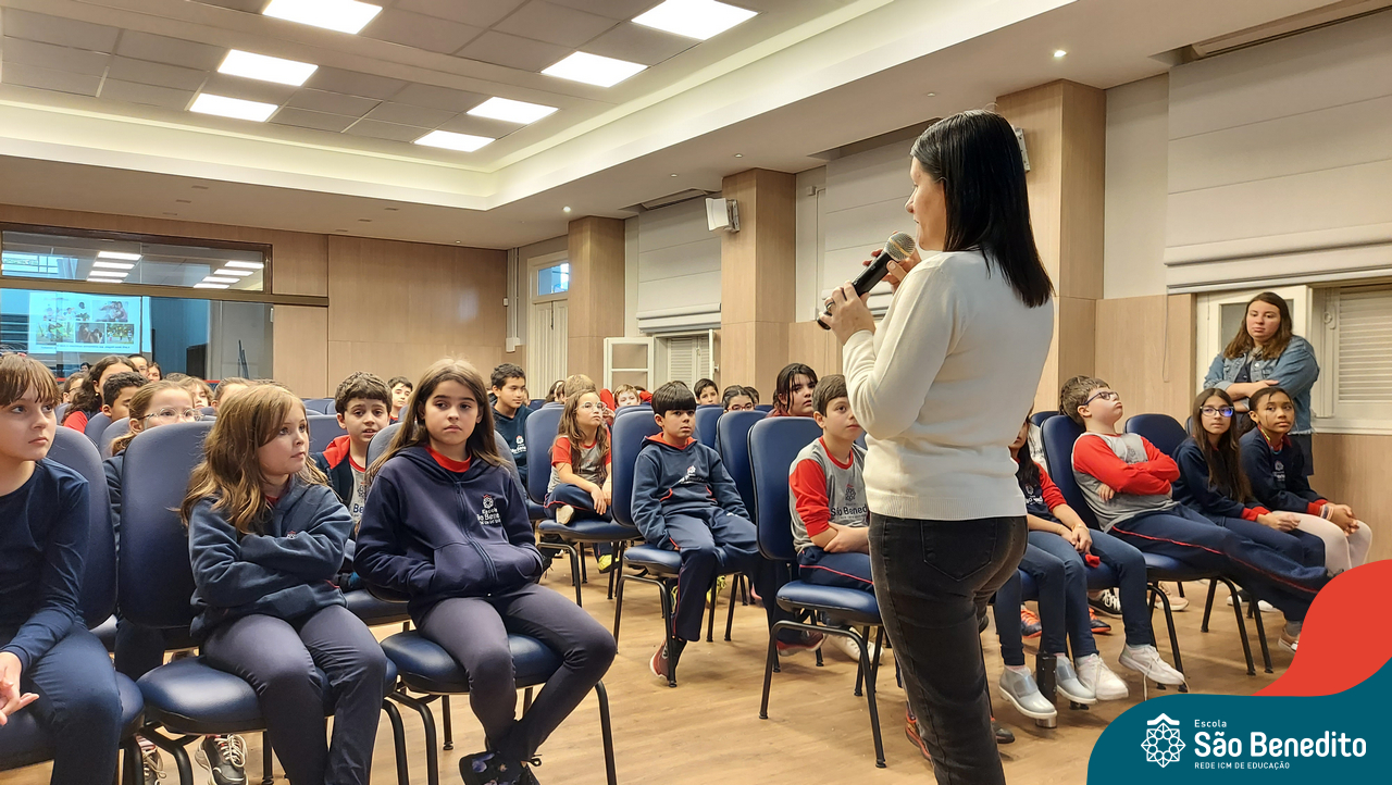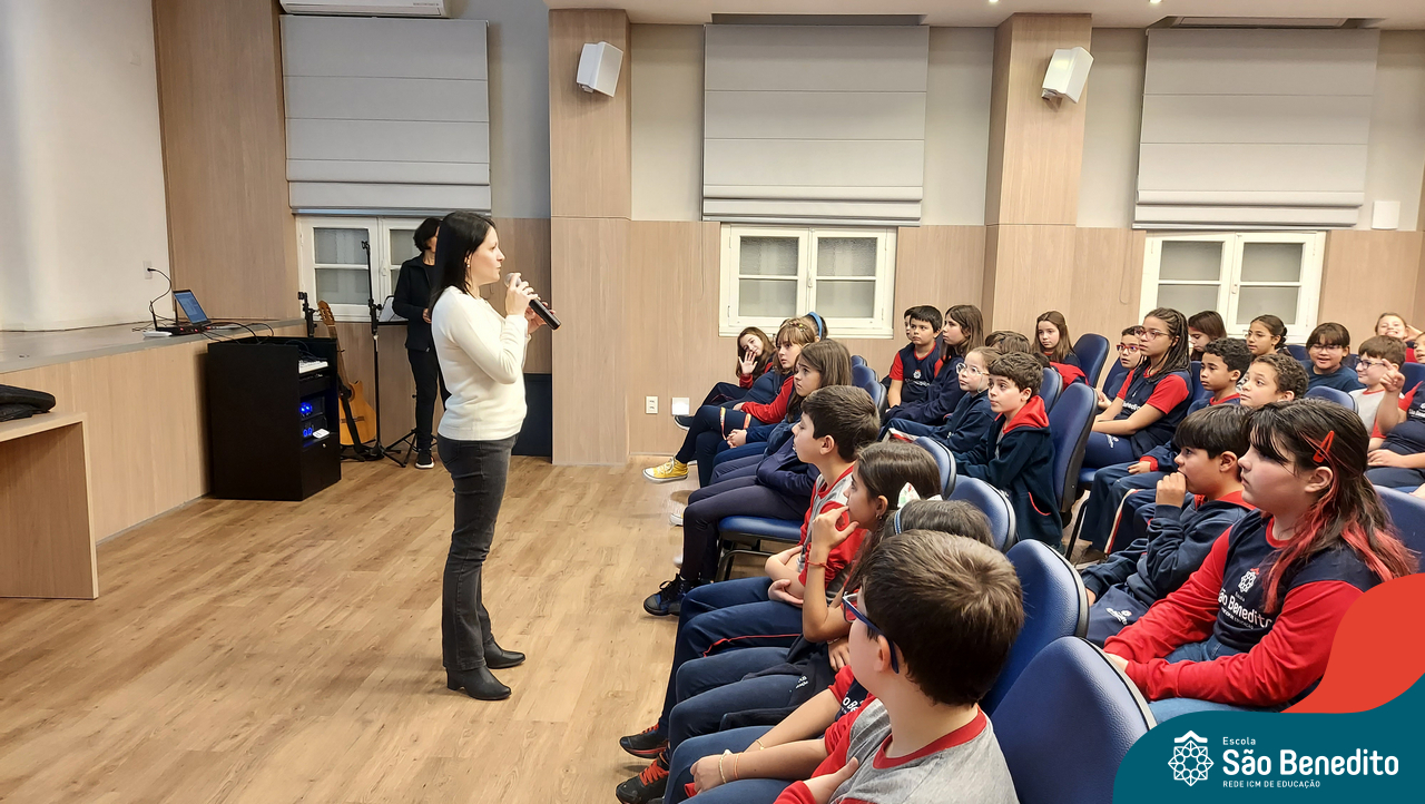 Nesta segunda-feira, os estudantes do Ensino Fundamental I e II participaram de um momento muito especial com a Irmã Meridiane Brum, Orientadora Educacional do Colégio Mãe de Deus de Porto Alegre (Unidade da Rede ICM). A proposta, que foi vinculada pela Pastoral Escolar, trabalhou o Projeto de Vida, partindo do chamado de Deus à vida e Seus propósitos para cada um de nós.