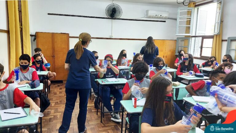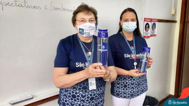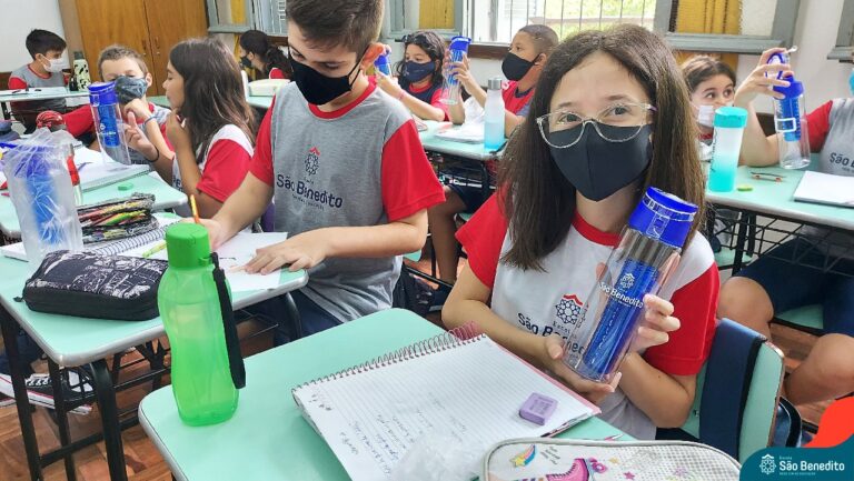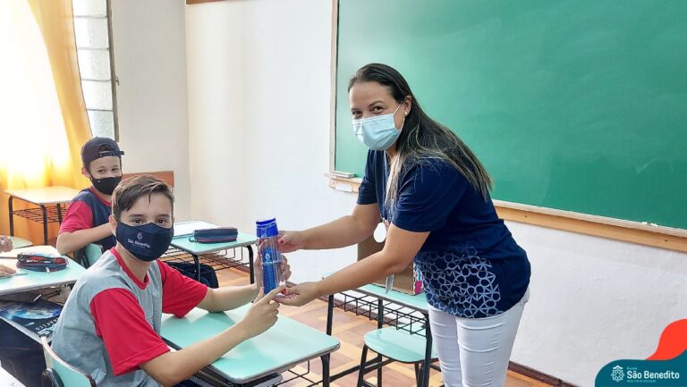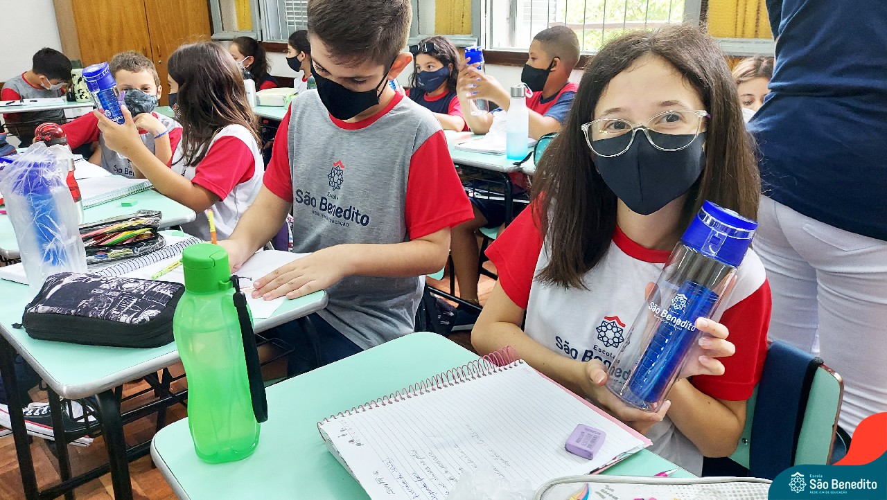 Os alunos comemoraram o primeiro dia com muito amor e direito a um presentinho, que vai ajudar muito nesse calor: uma linda squeeze personalizada.
